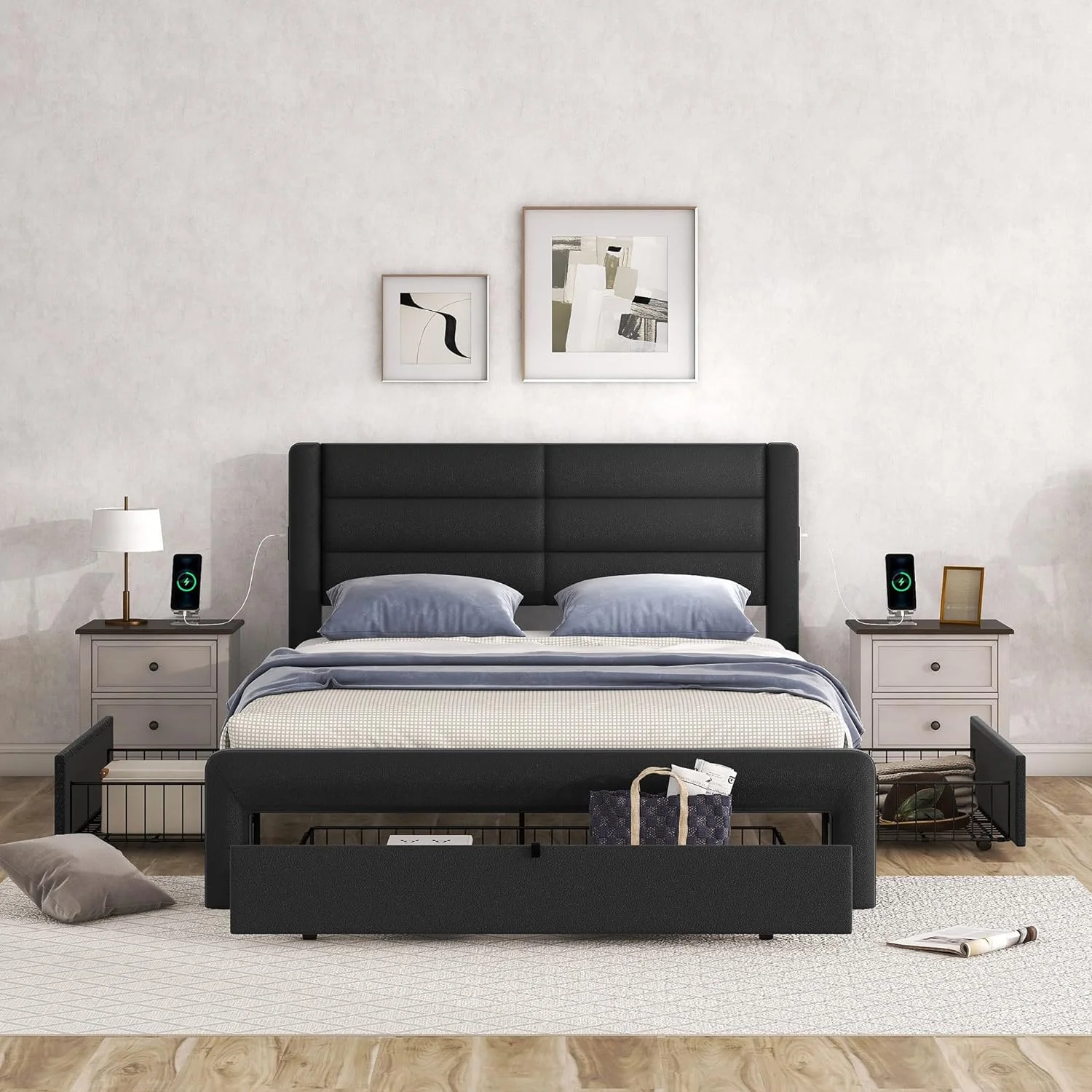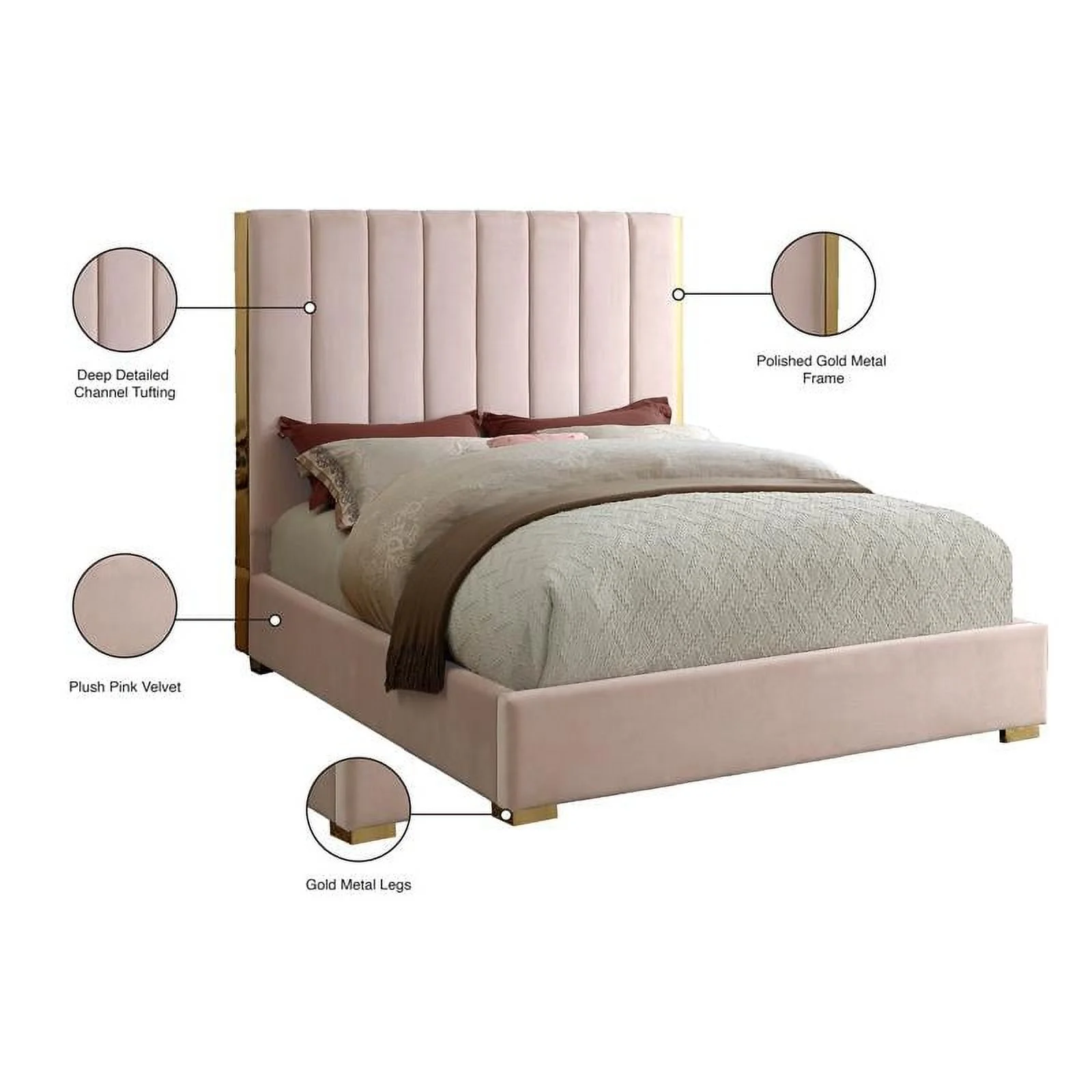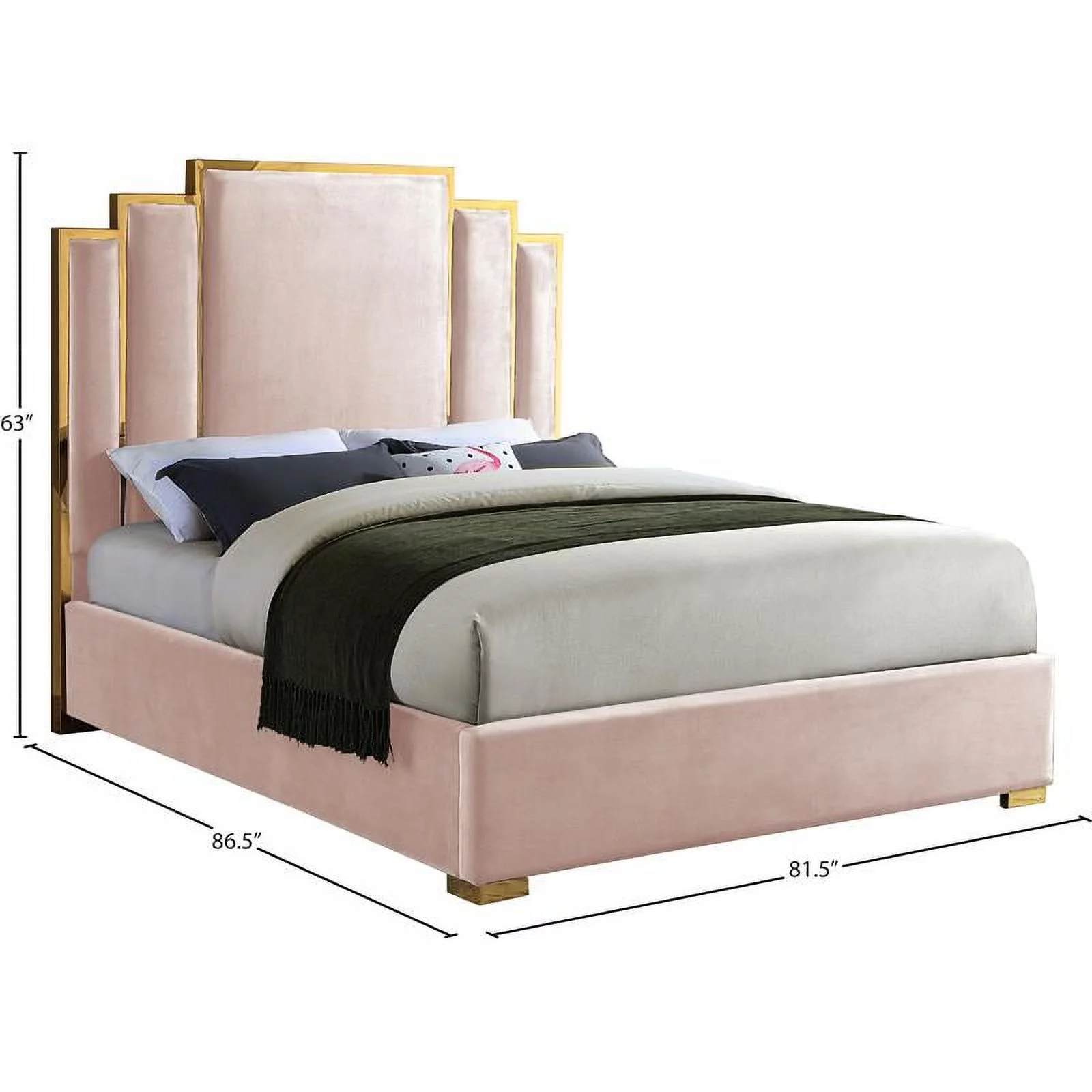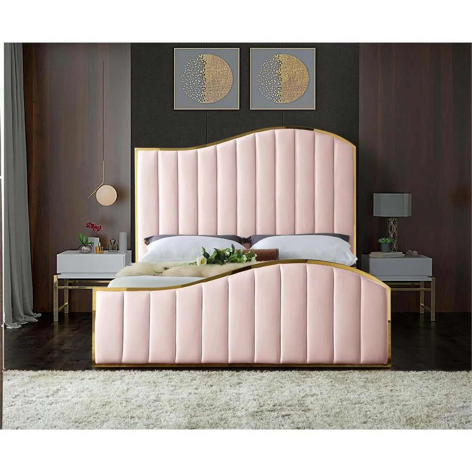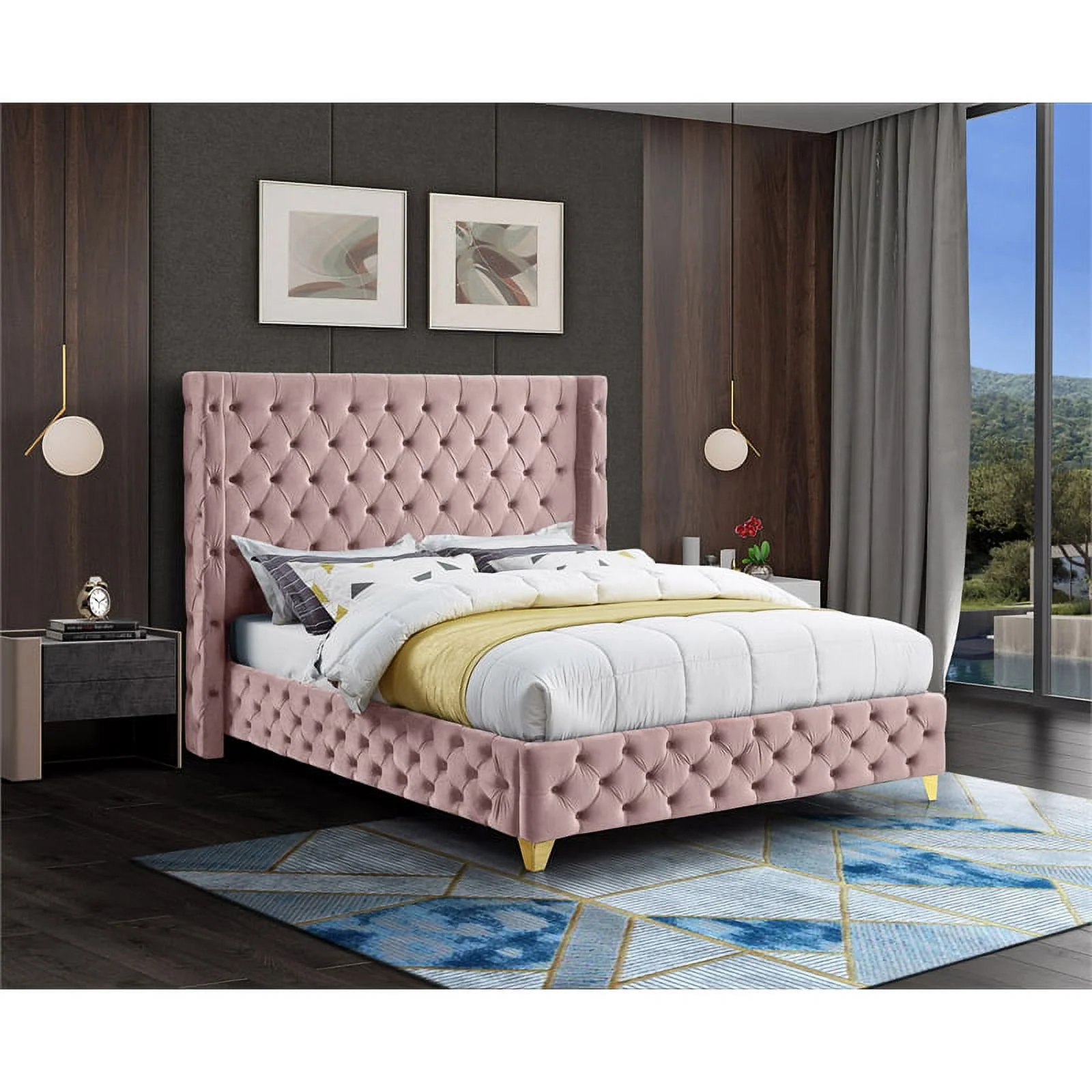 Adore Decor Adele Wingback Upholstered Platform Bed King Size Blush Pink