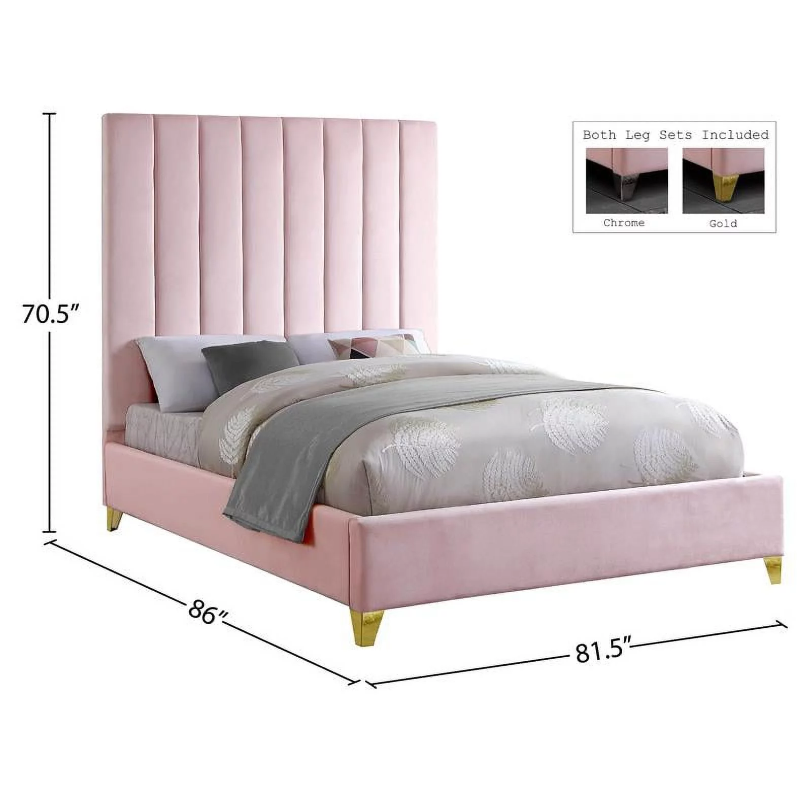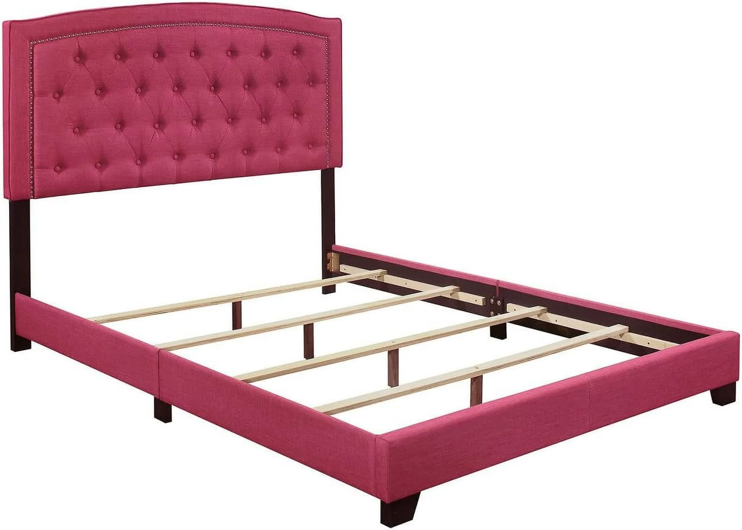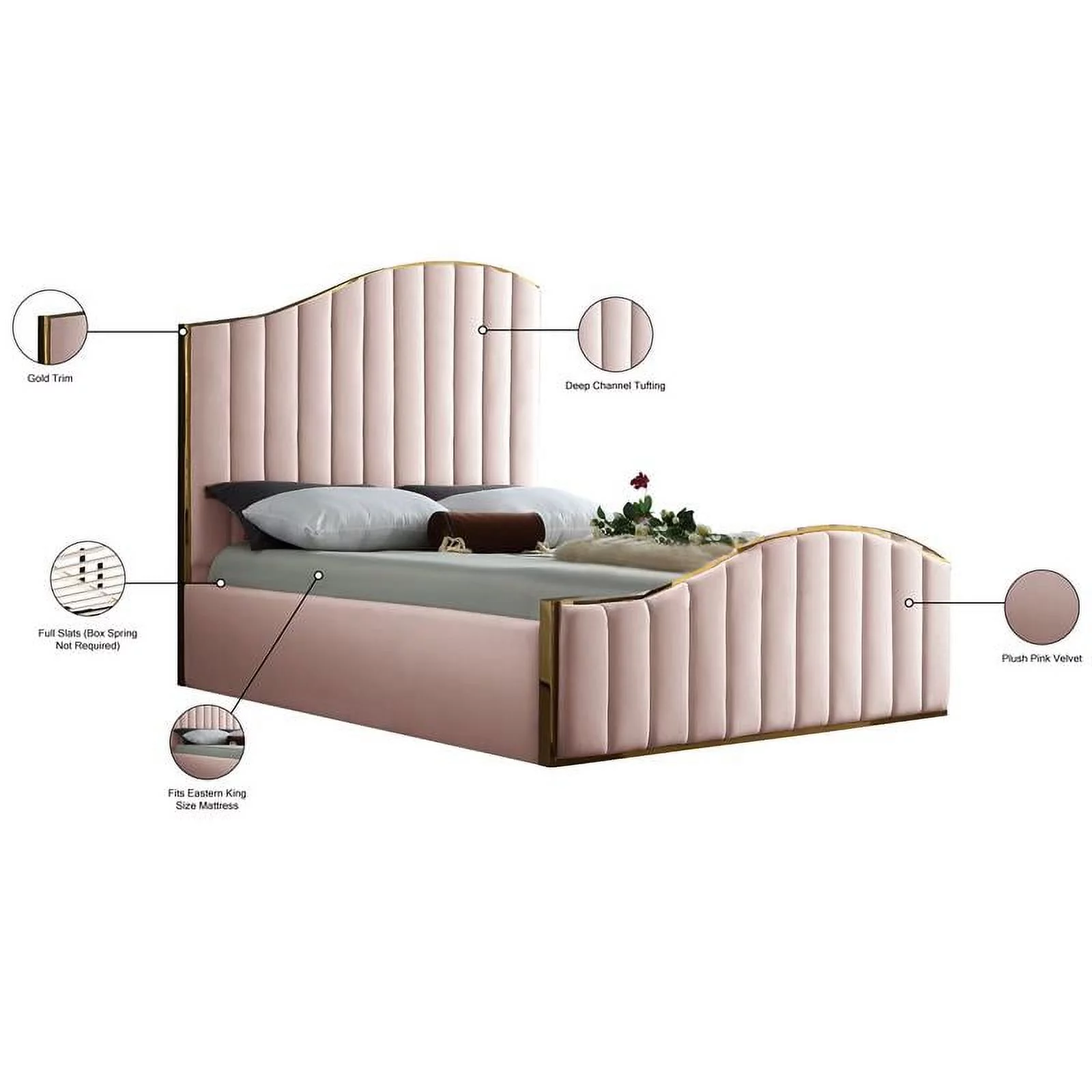 Tufted Platform Bed Frame, King Size, Velvet, Pink, Modern Contemporary Urban Design, Bedroom Master Guest Suite