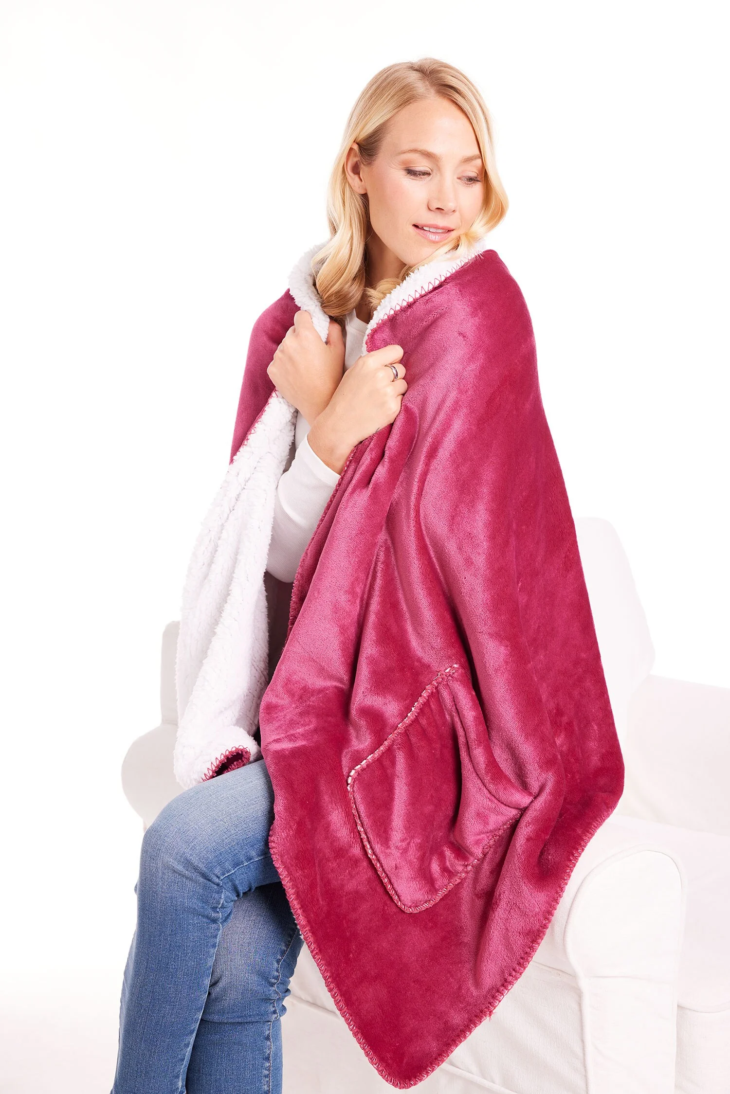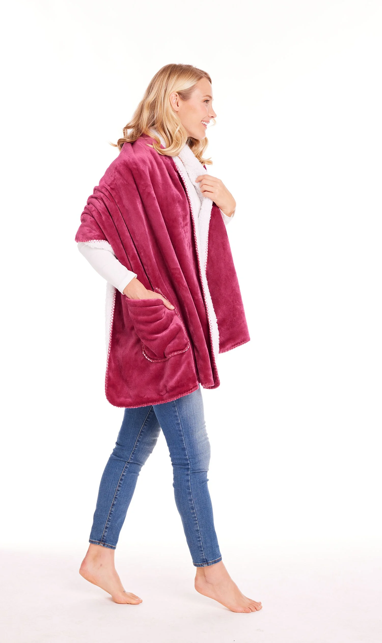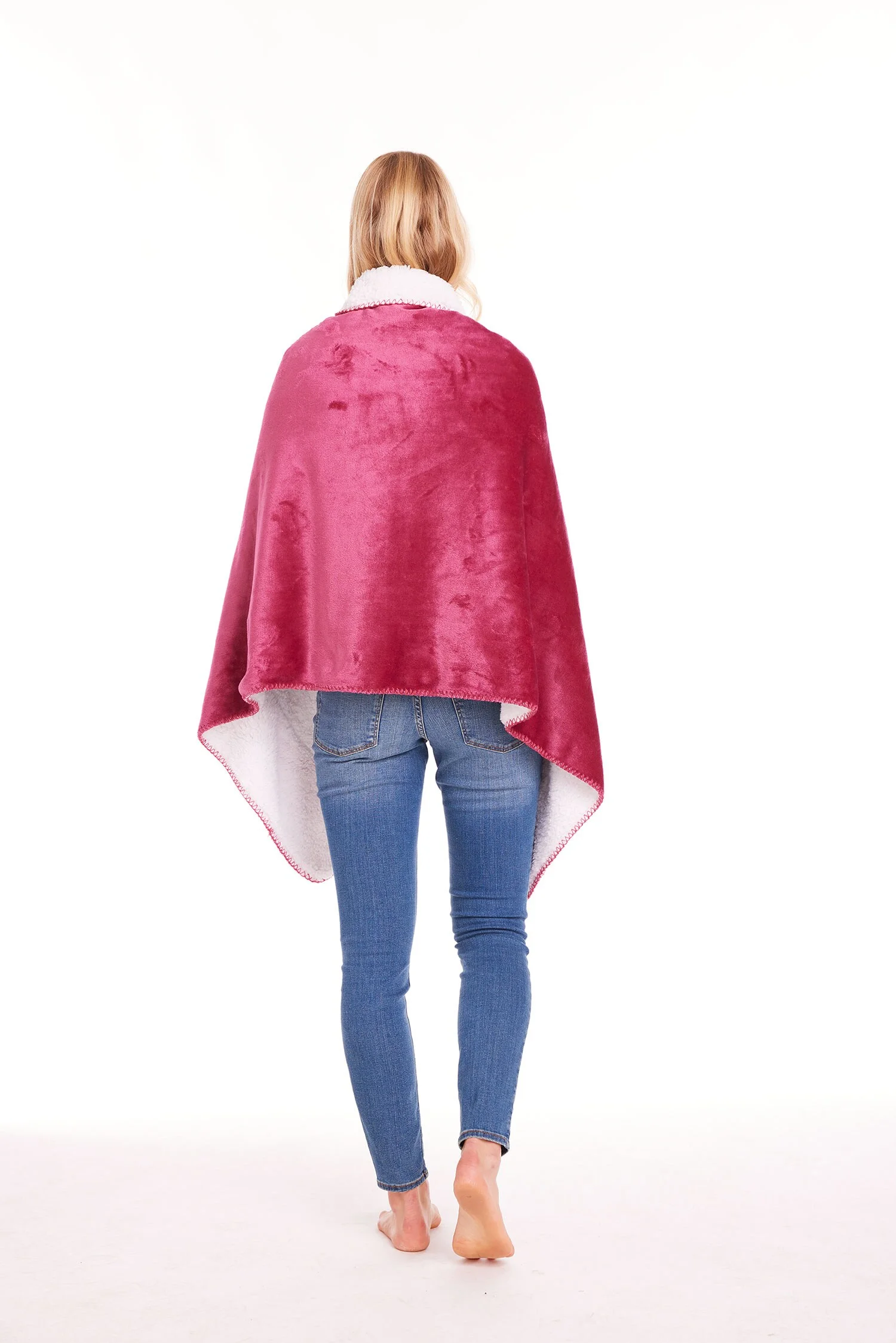 FLORIANA Womens Wearable Throw Blanket Poncho, Blanket Shawl With Pockets, Rose