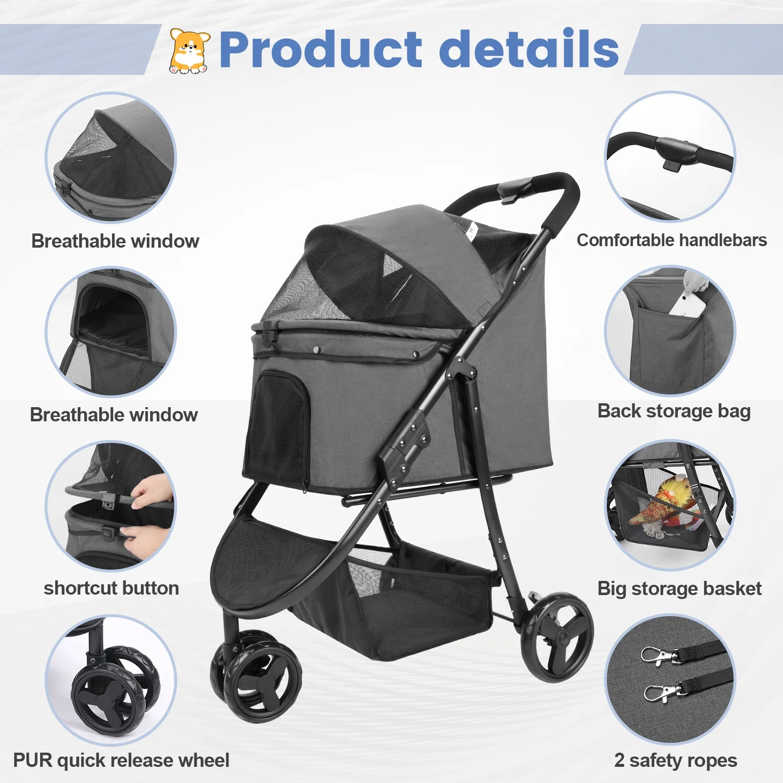 Dog Stroller - Wedyvko Multifunction Pet Stroller for Small Dogs-Foldable Travel Dog Stroller (Gray)