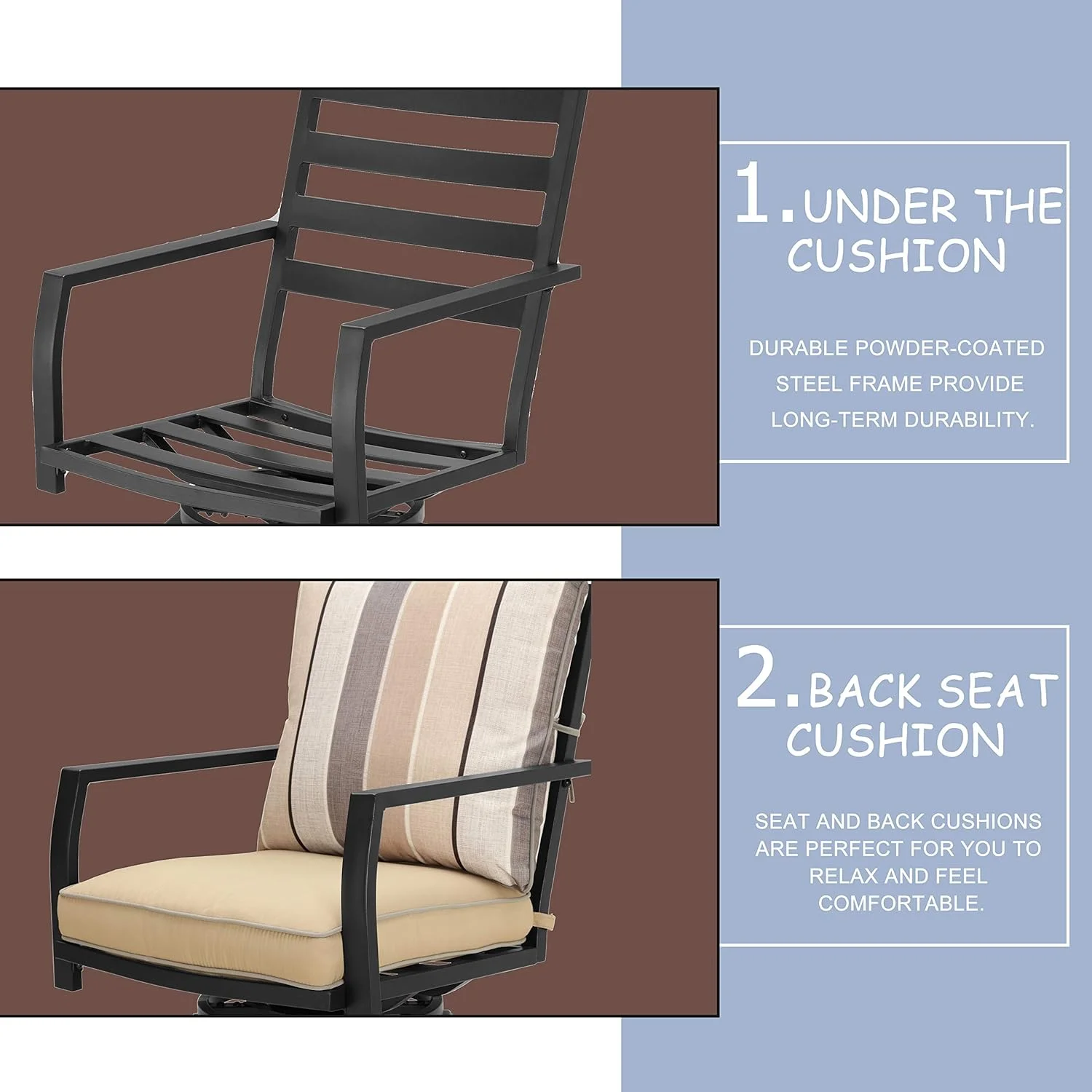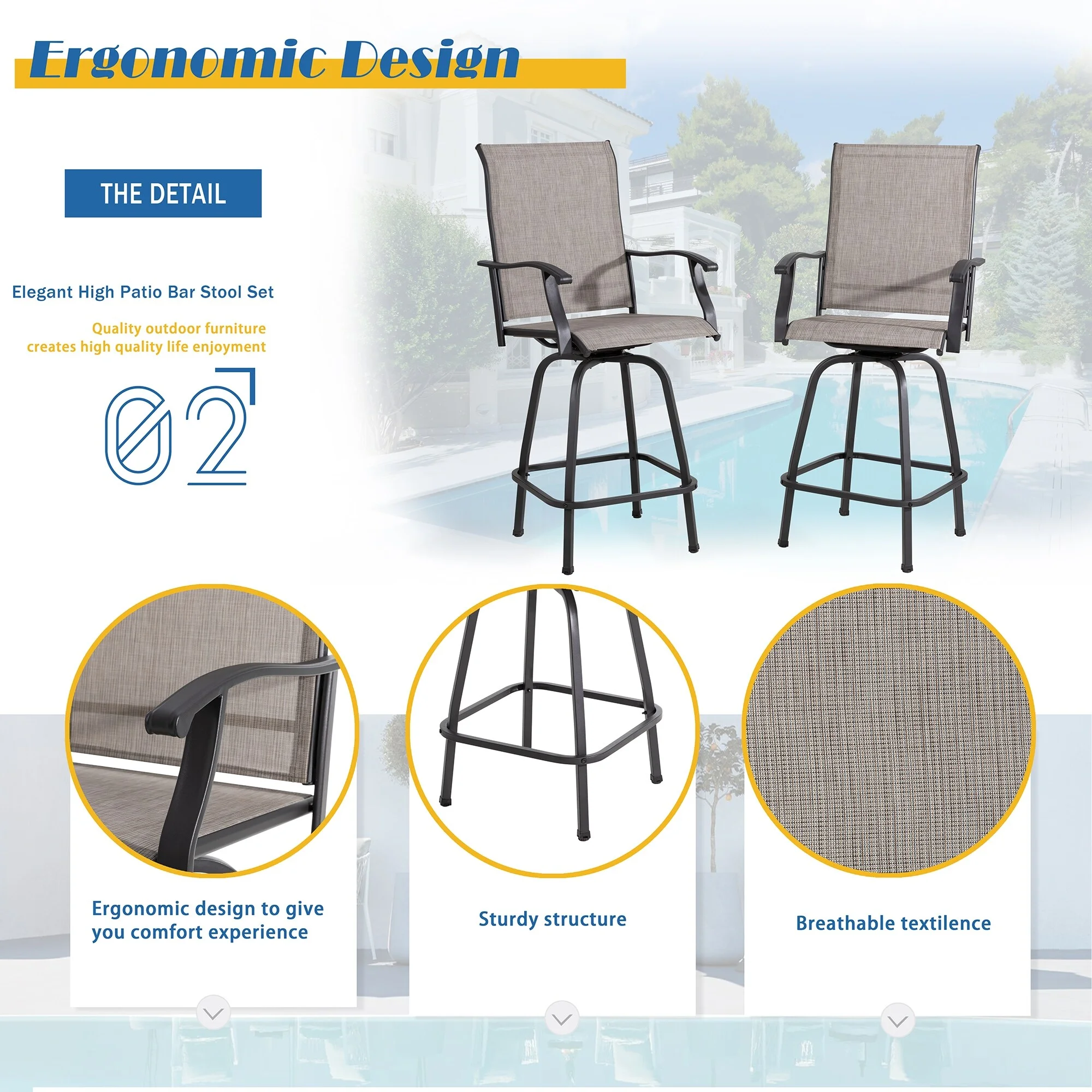 Swivel Patio Chairs Set of 2 Height Bar Stools Outdoor Bistro Armrest Chairs Set