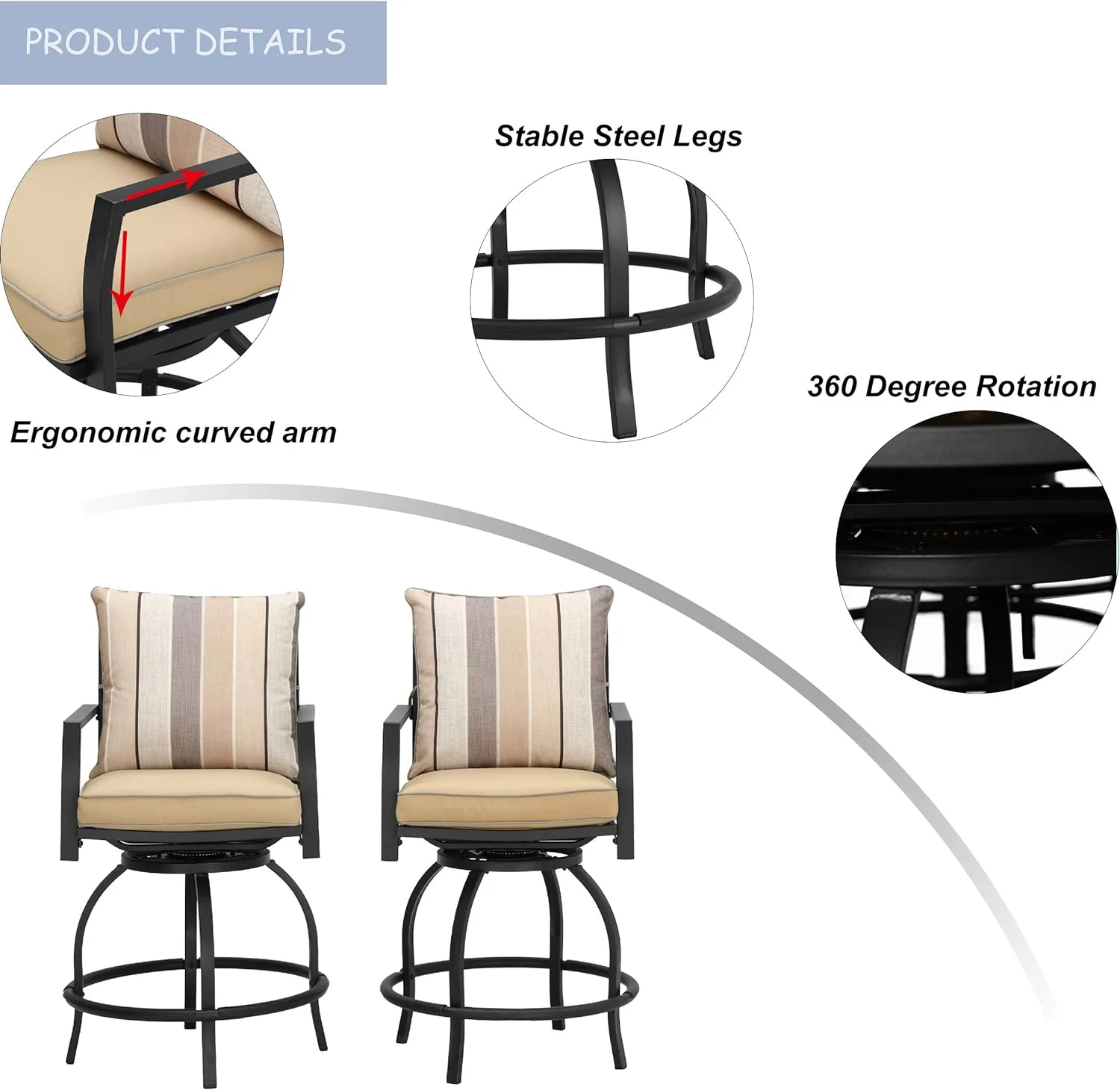 Patio Set Swivel Chairs Bistro Height With Arms Outdoor Dining All Weather Bar Stools With Cushion(Set Of 2), Beige