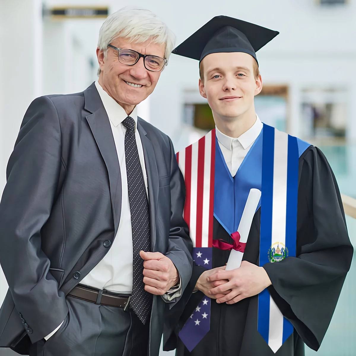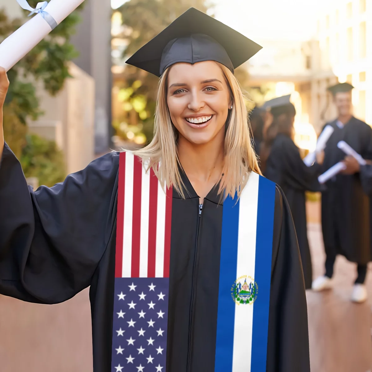El Salvador & USA United States Flag Shawl Sash Stole Graduation Shawls Wraps Scraf For International Study