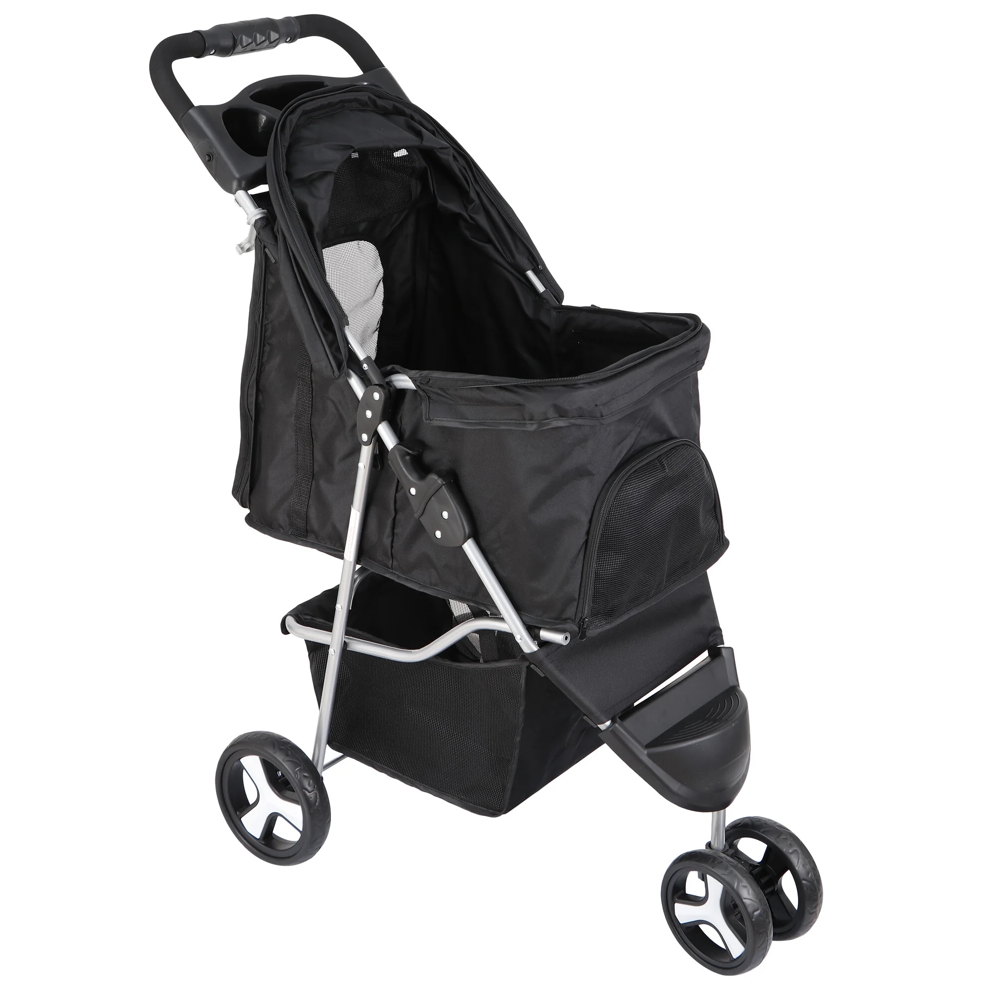 HomGarden 3 Wheel Foldable Pet Stroller for Small Medium Dog W/Storage Basket,