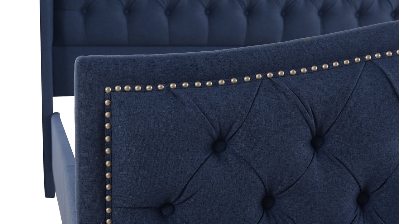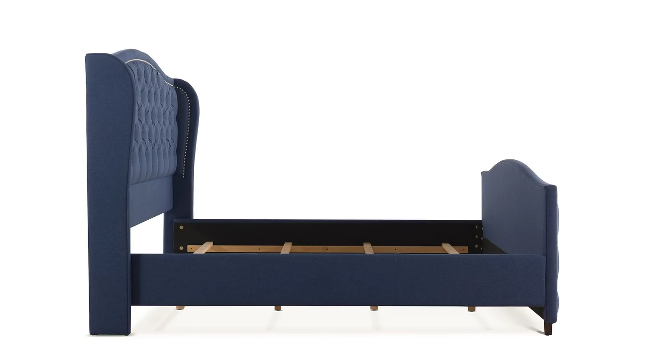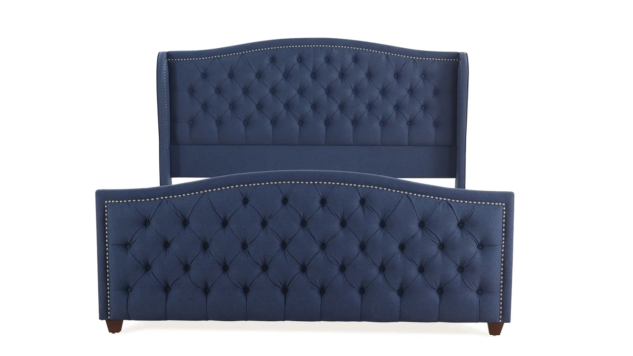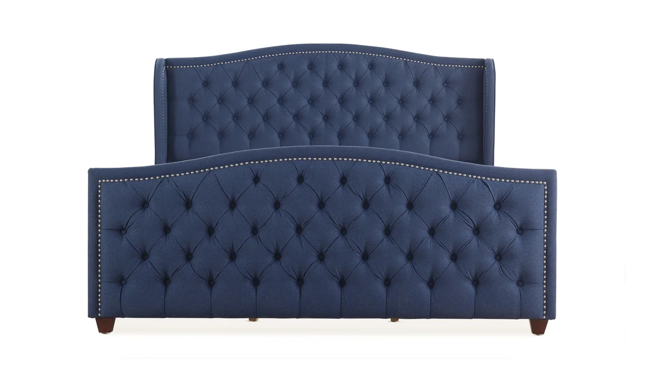 Passion Furniture Alba Upholstered Panel Bed, Navy Blue - King Size
