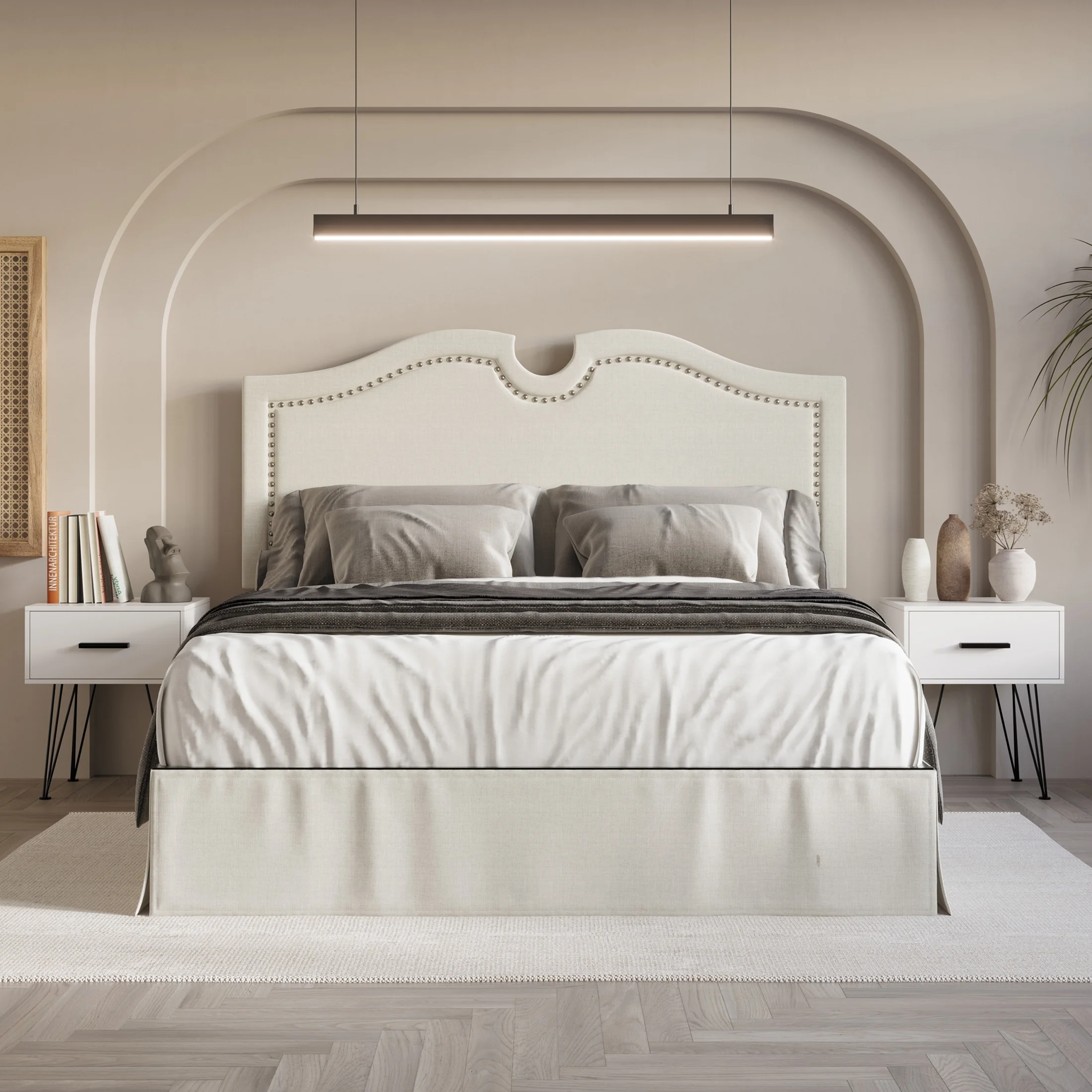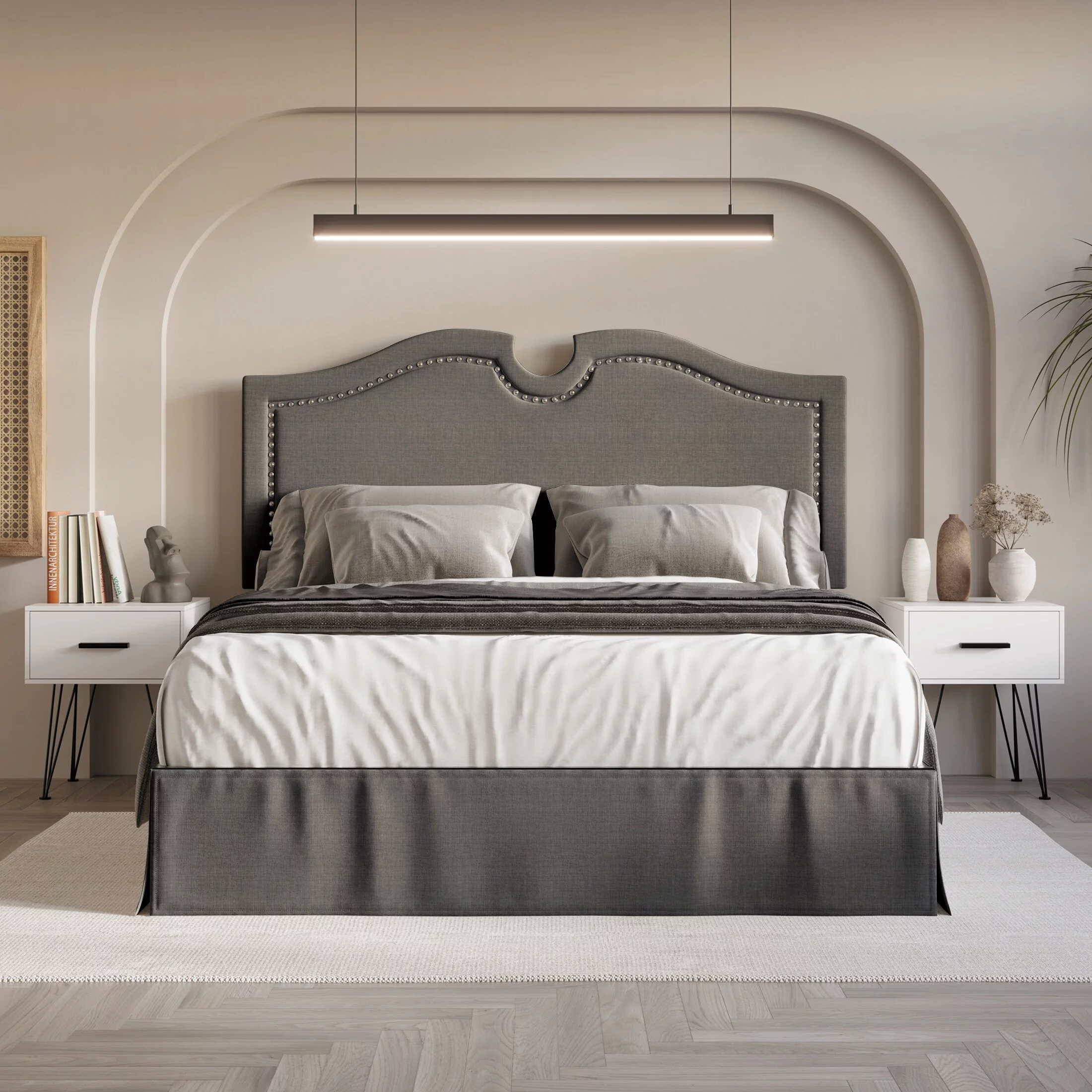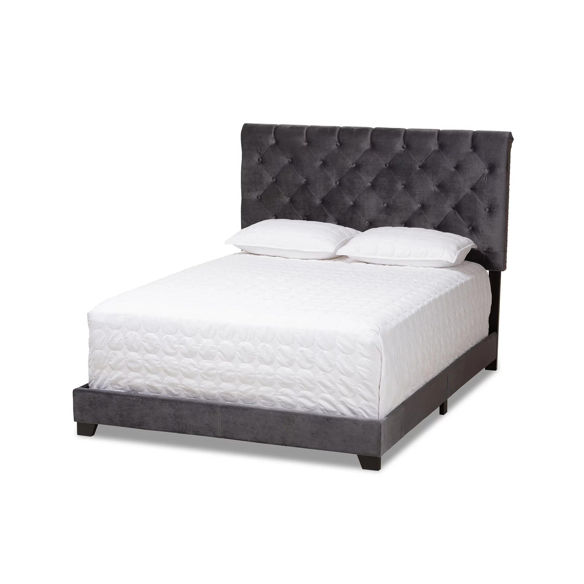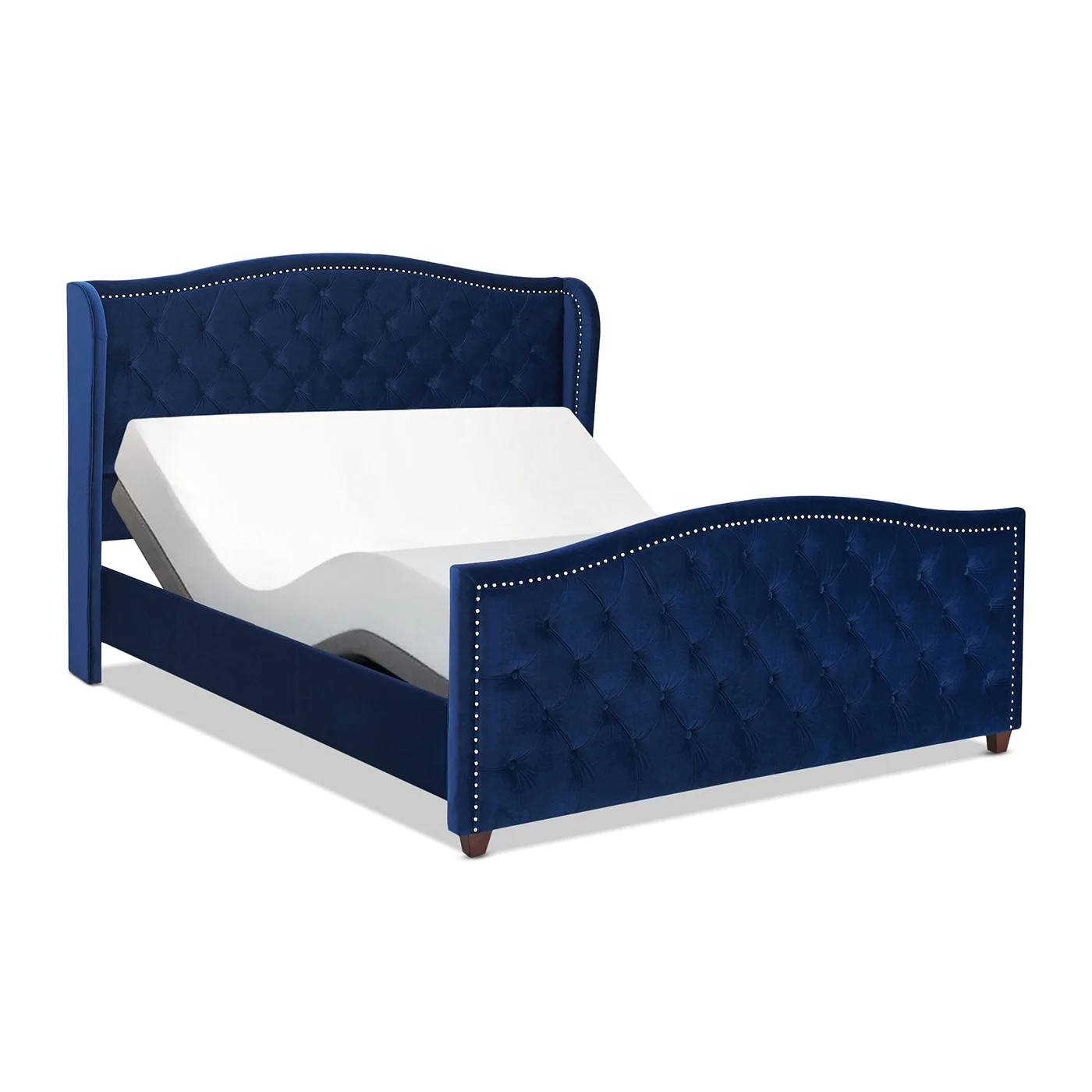 Passion Furniture Alba Upholstered Panel Bed, Navy Blue - King Size