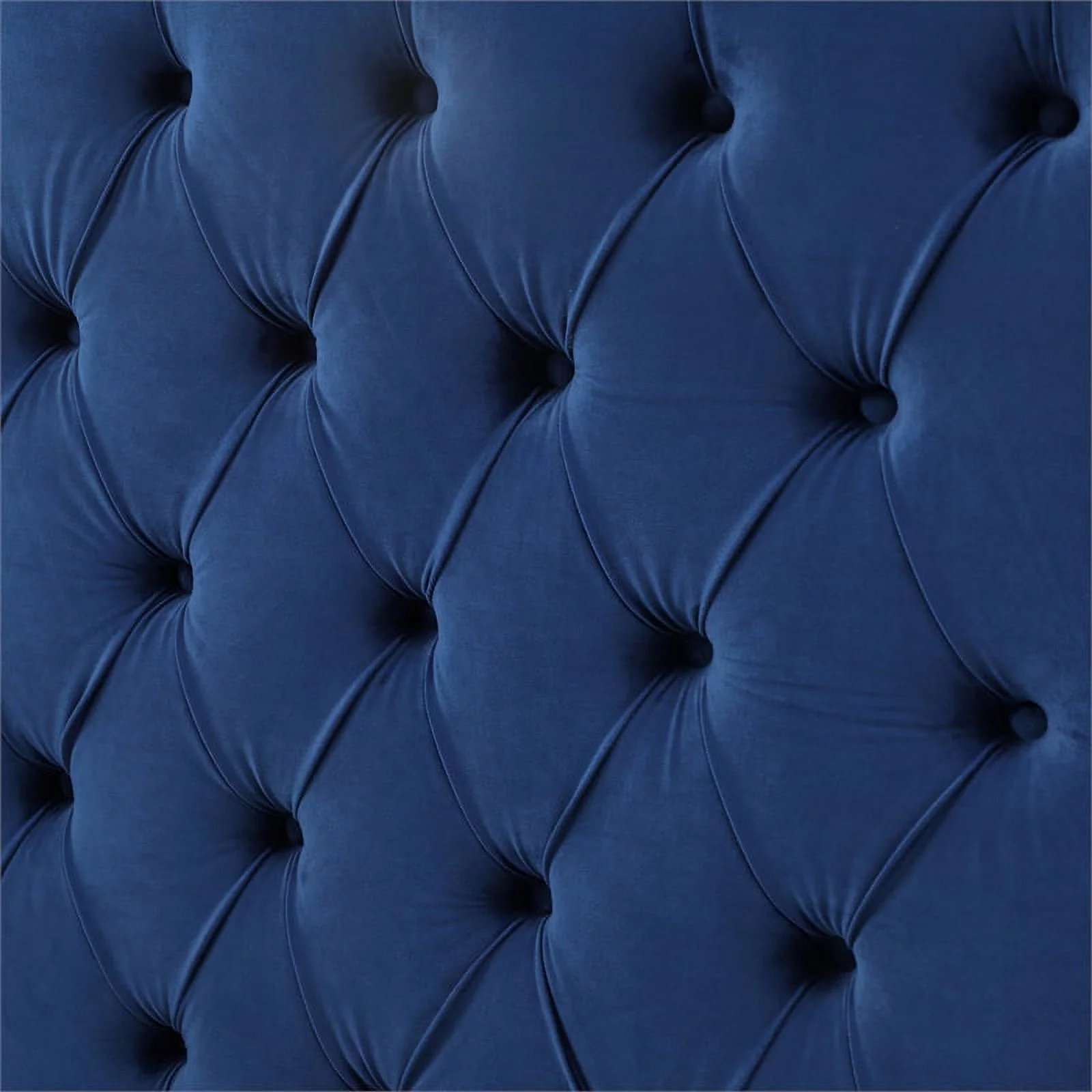 Hawthorne Collections Modern Padded Tufted Velvet King Platform Bed in Blue