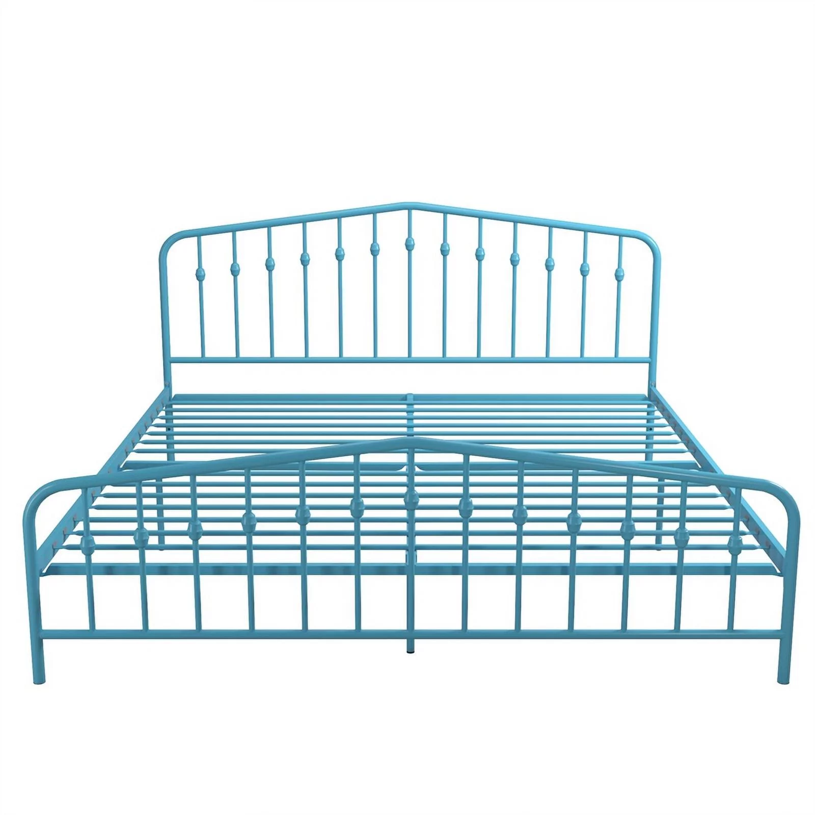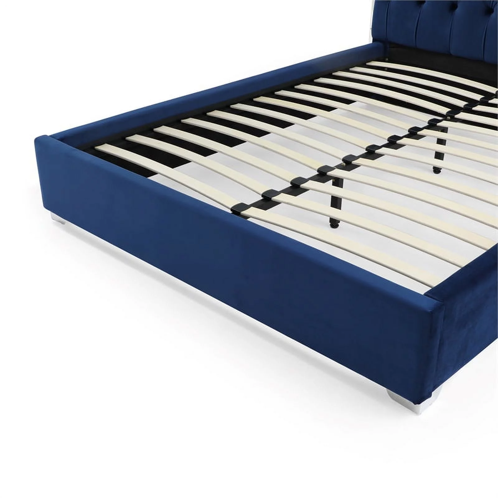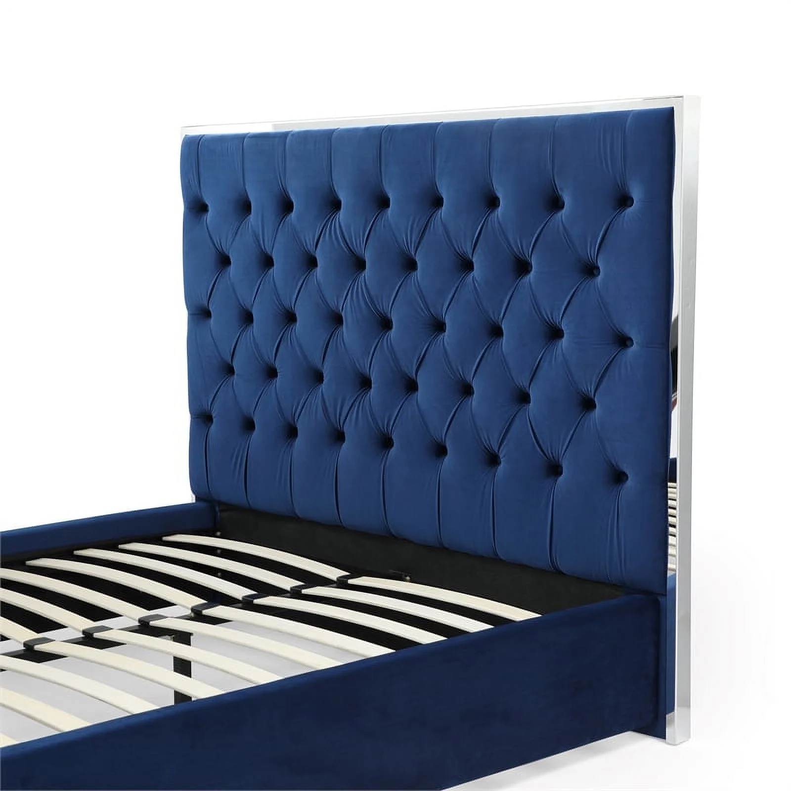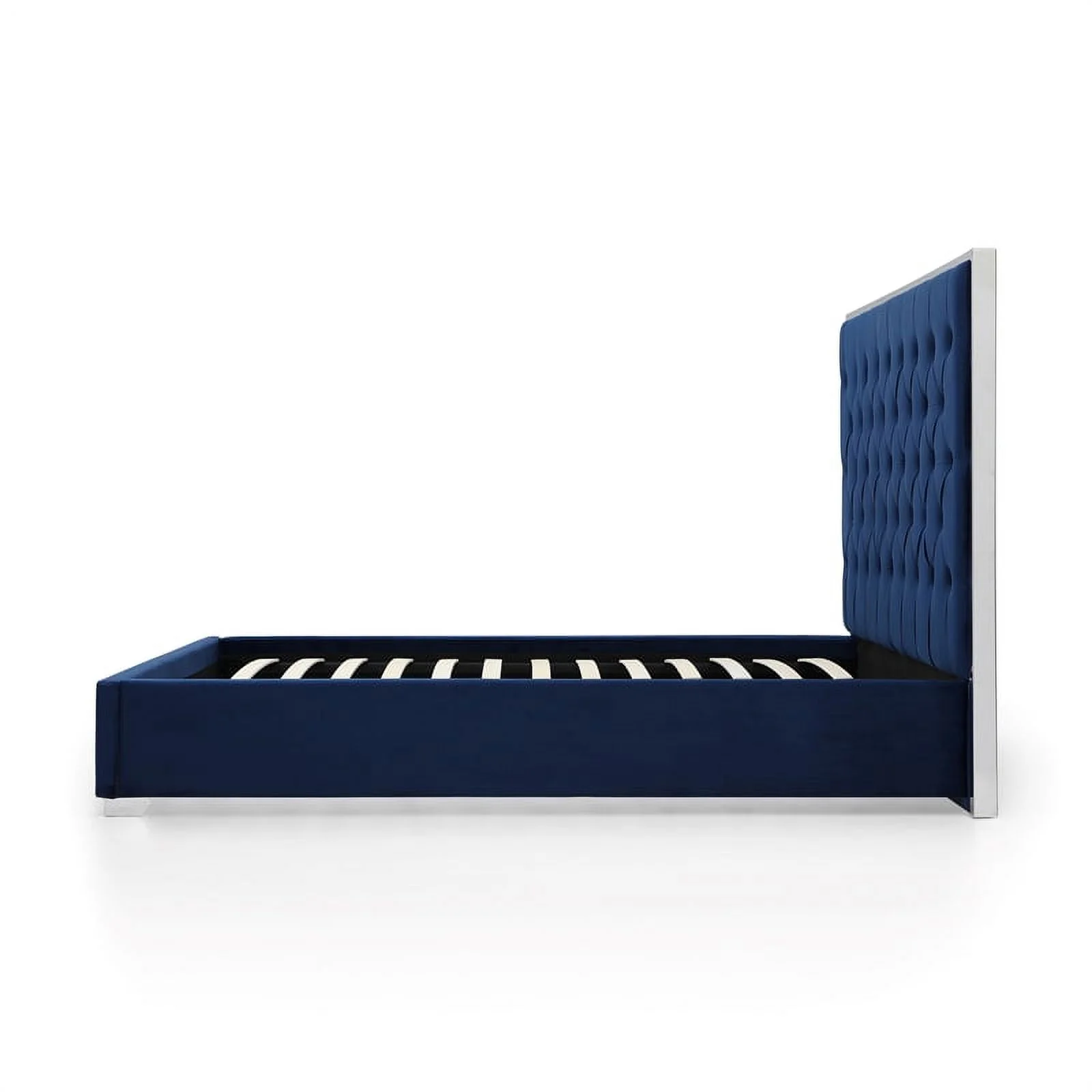 Better Home Products Sophia Velvet King Bed with Silver Metal Frame in Blue