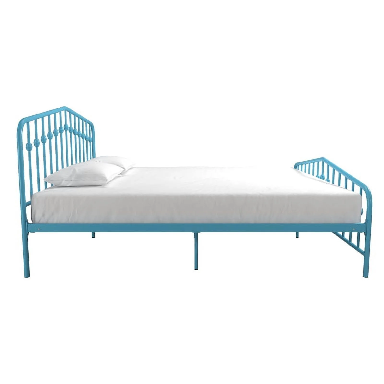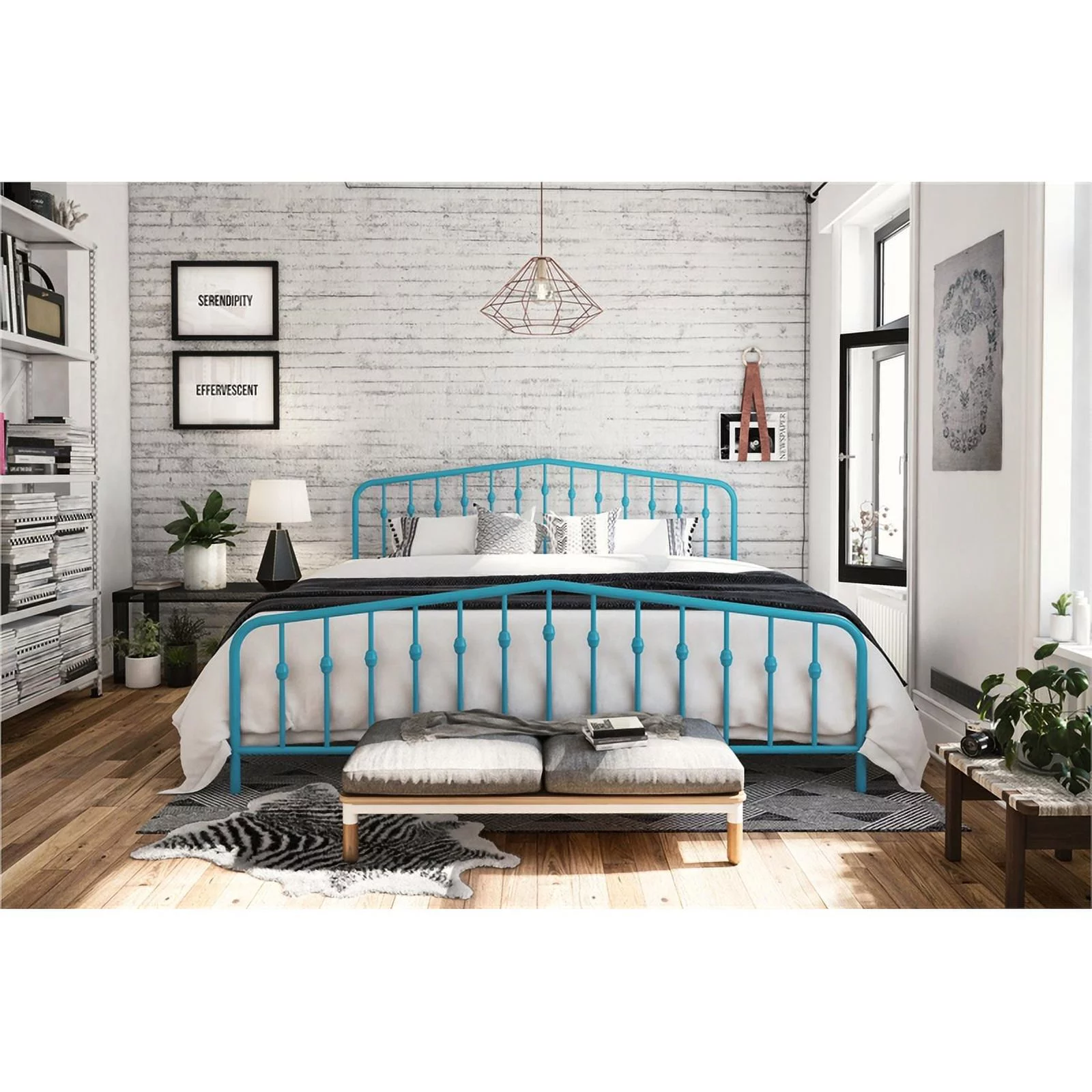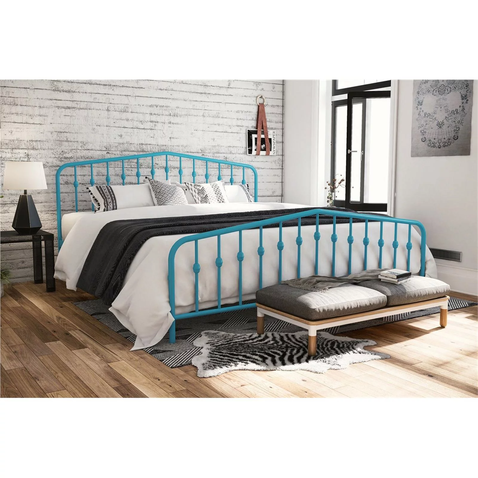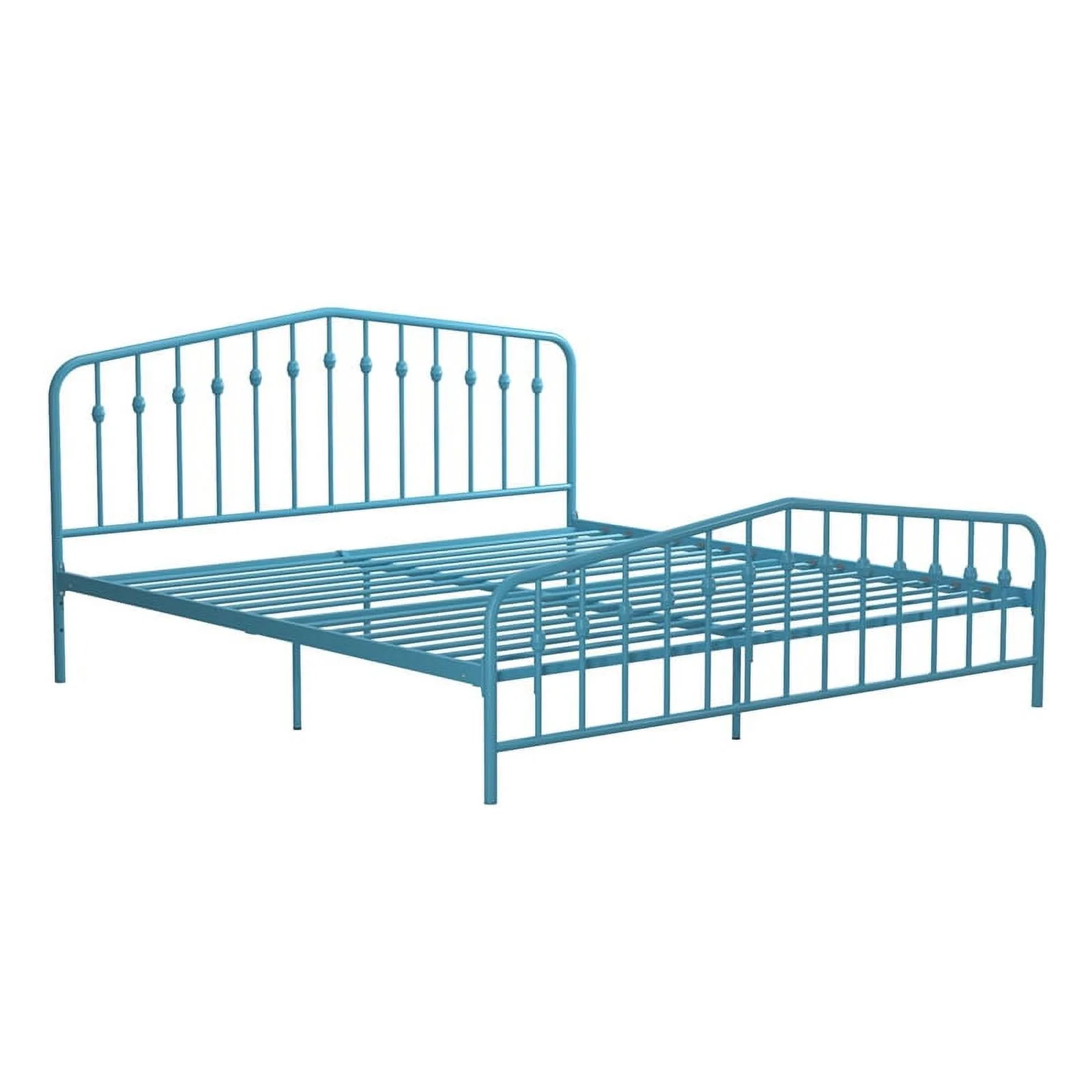 Better Home Products Sophia Velvet King Bed with Silver Metal Frame in Blue