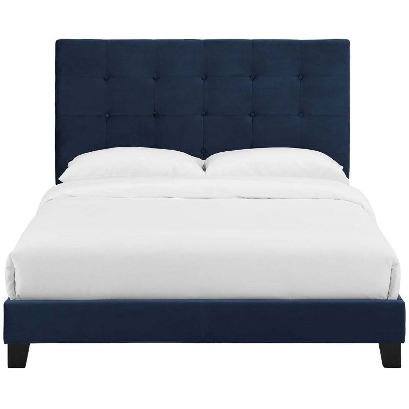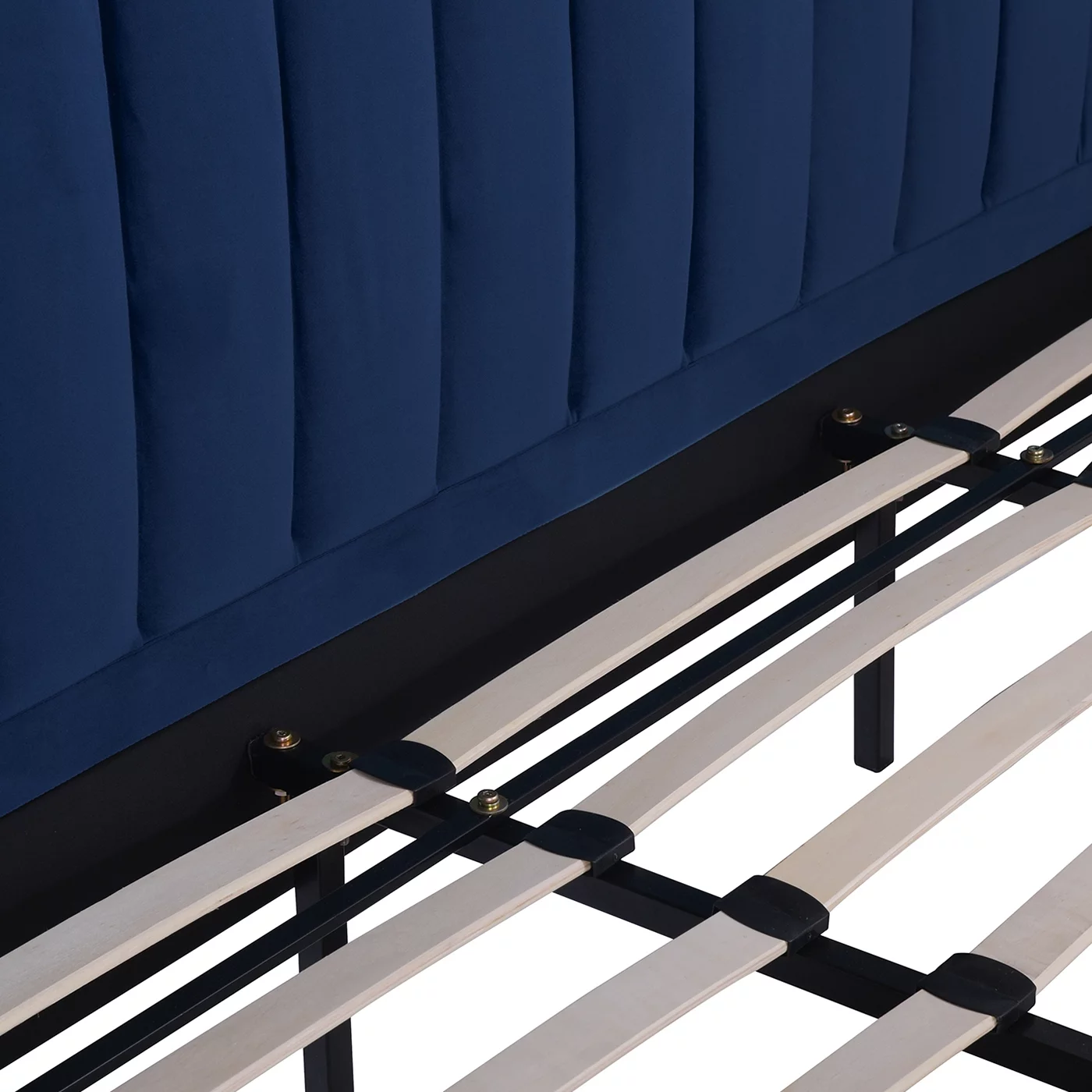 Aspen Vertical Tufted Headboard Platform Bed Set King Navy Blue Velvet