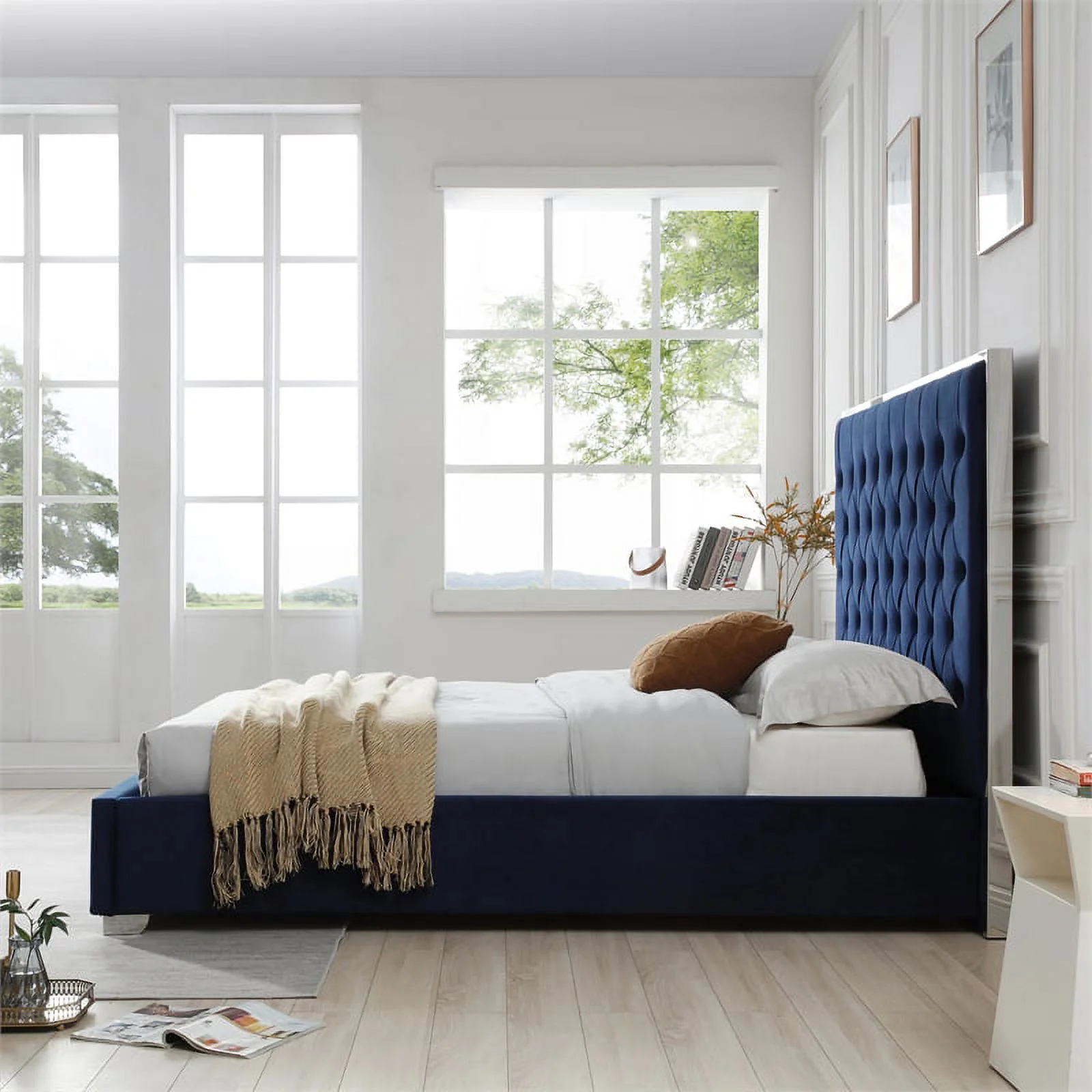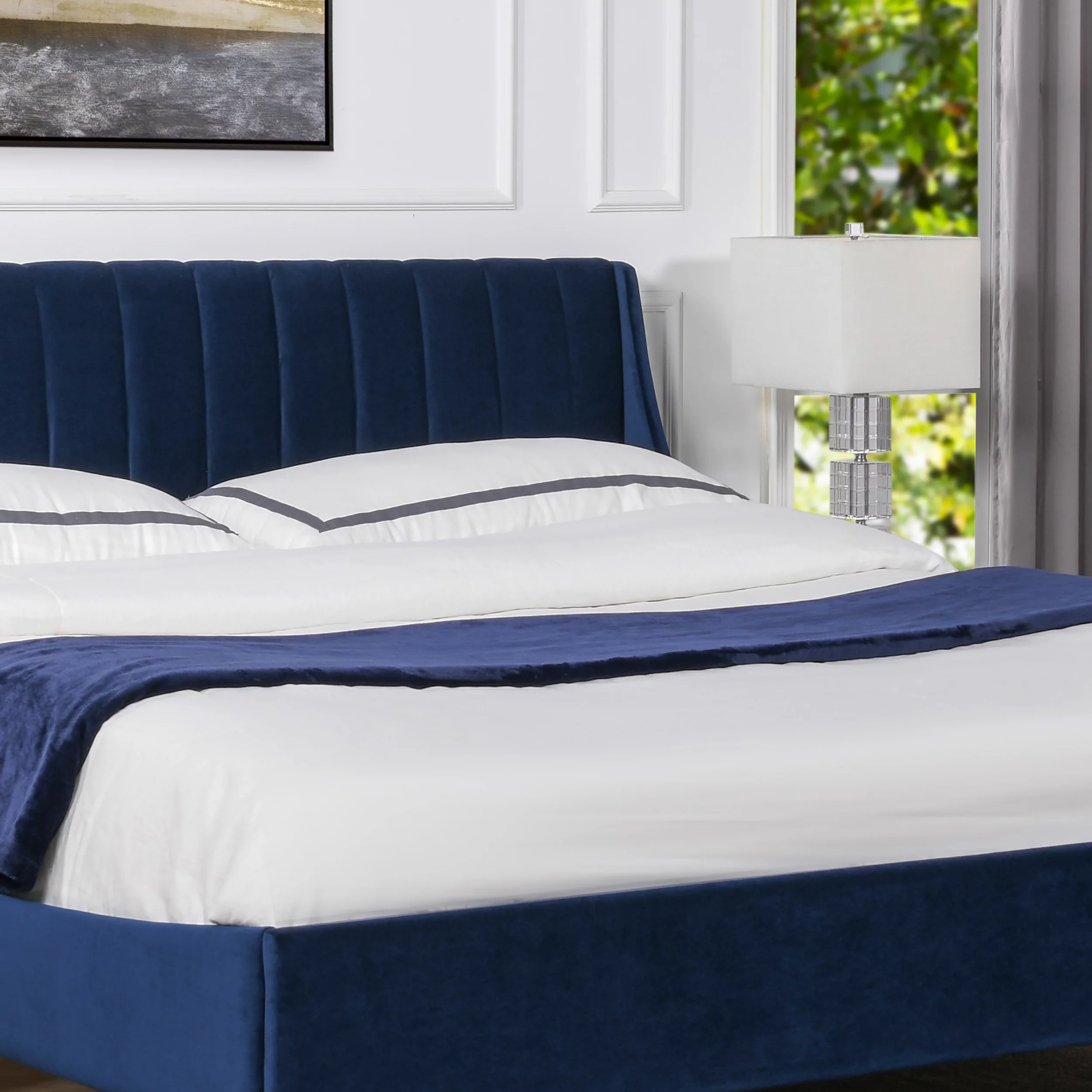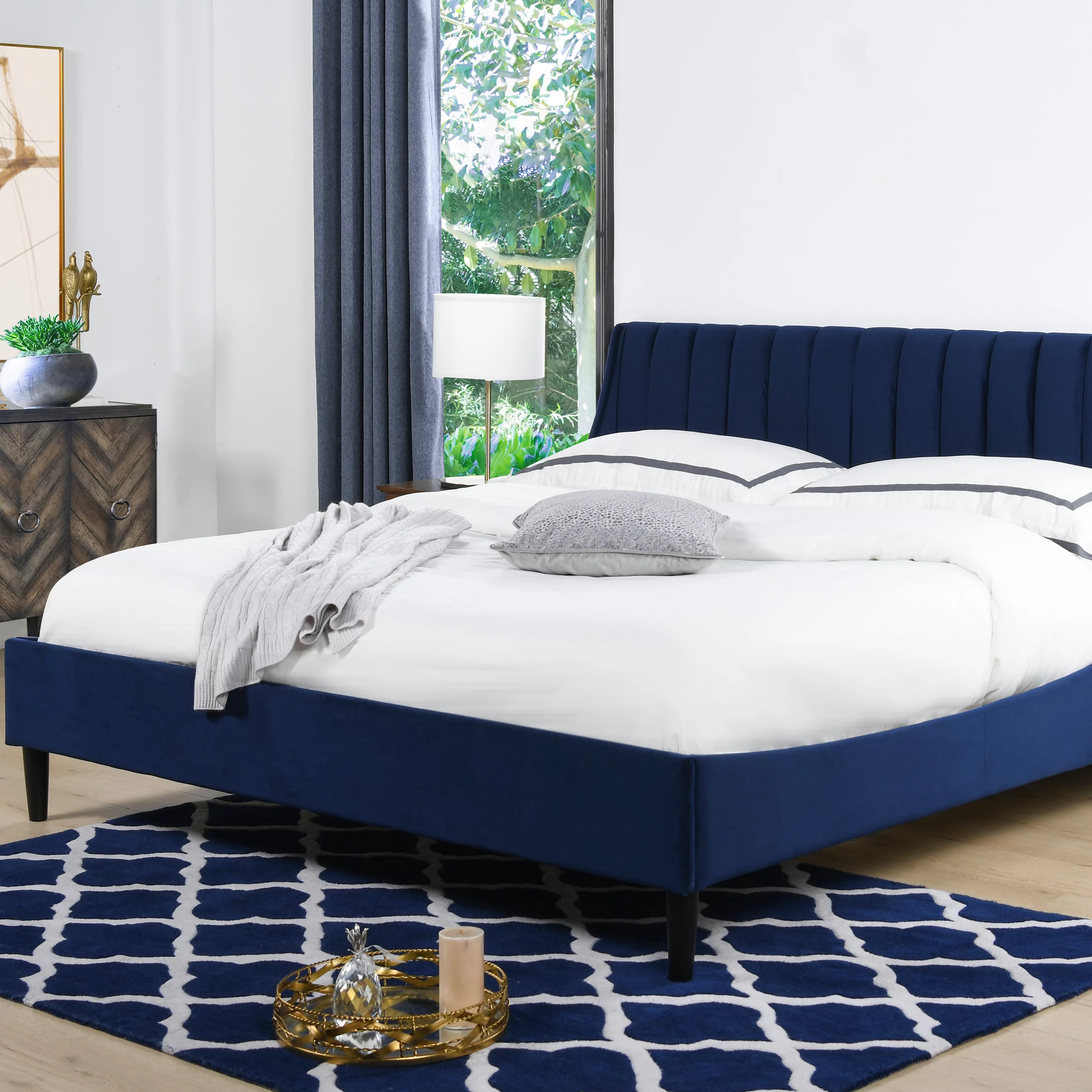 Better Home Products Cosmopolitan Velvet Upholstered Platform King Bed in Blue