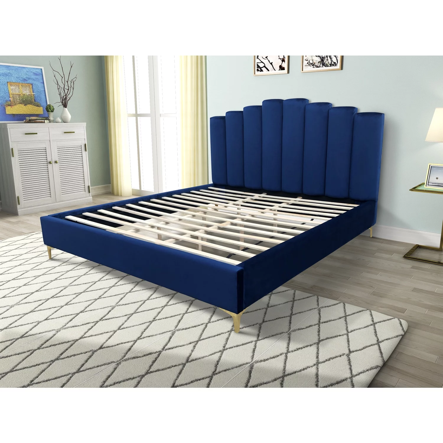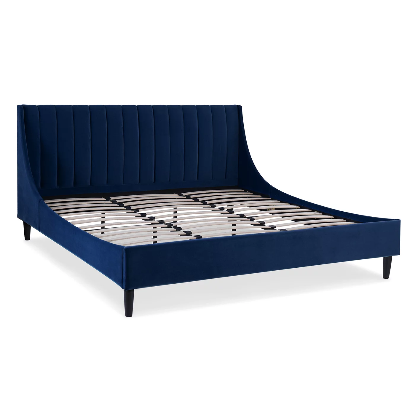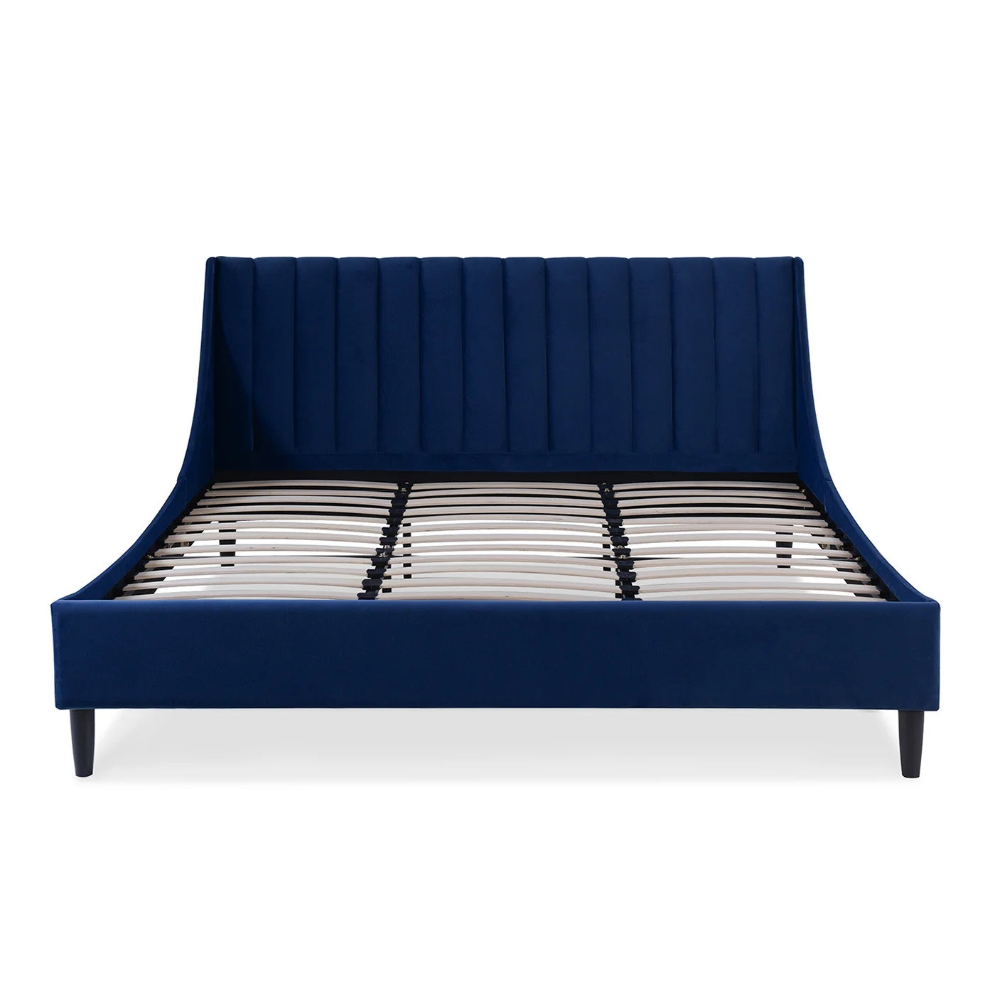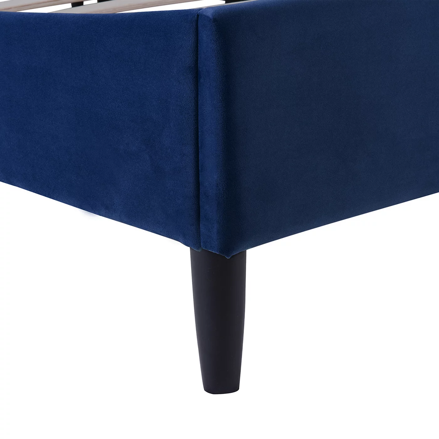 Better Home Products Cosmopolitan Velvet Upholstered Platform King Bed in Blue