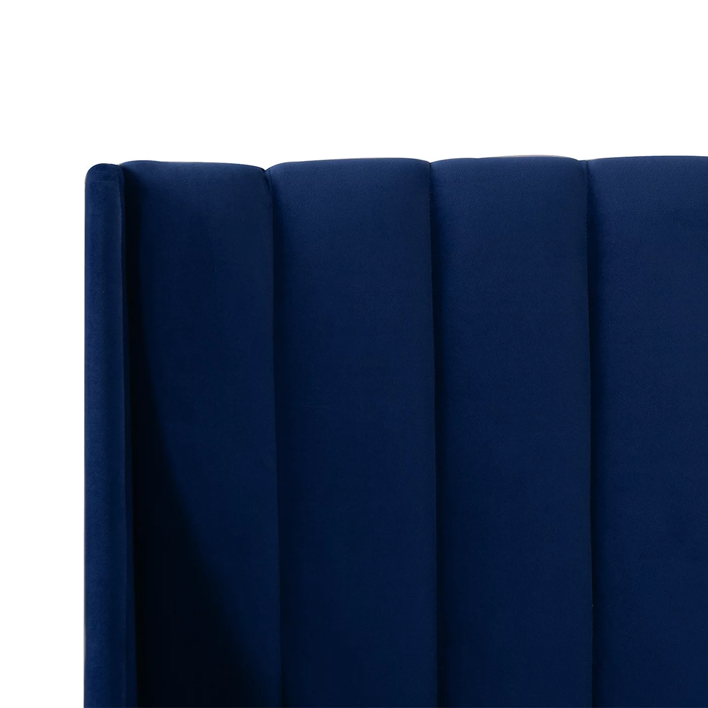 Maklaine Transitional Upholstered Velvet Wingback Platform King Bed in Blue