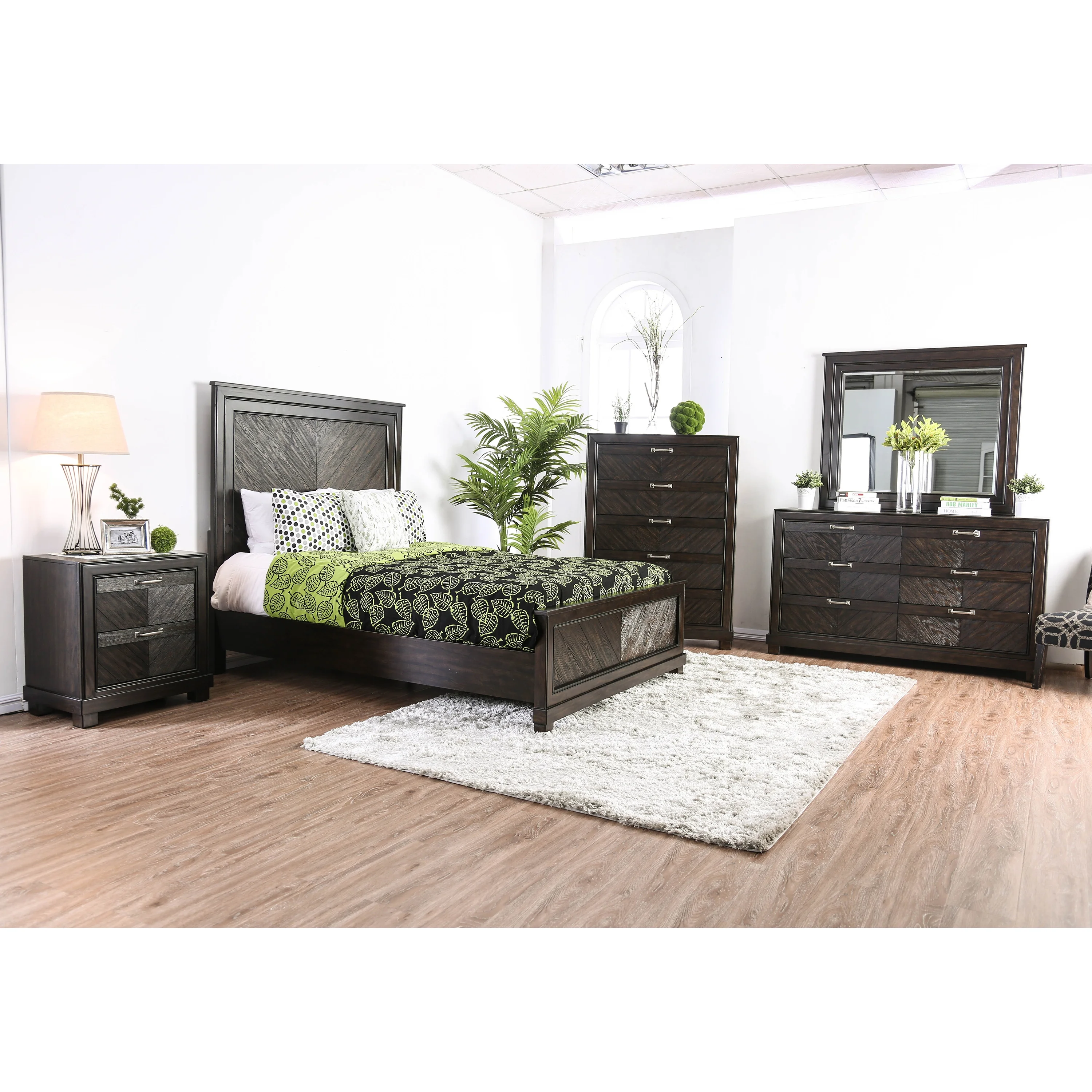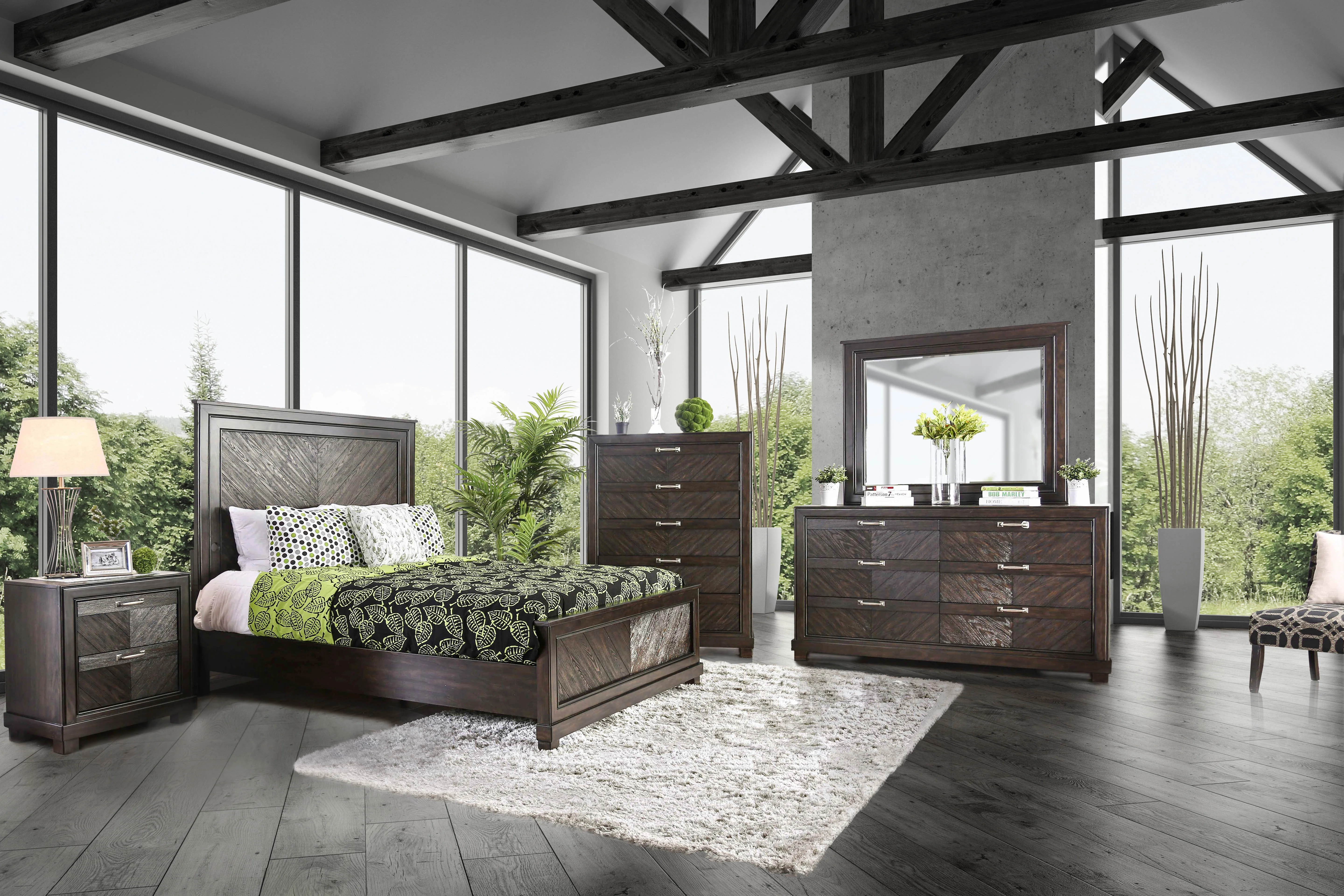 Modus Herringbone 5 PC Full Storage Bedroom Set w Chest in Rustic Latte