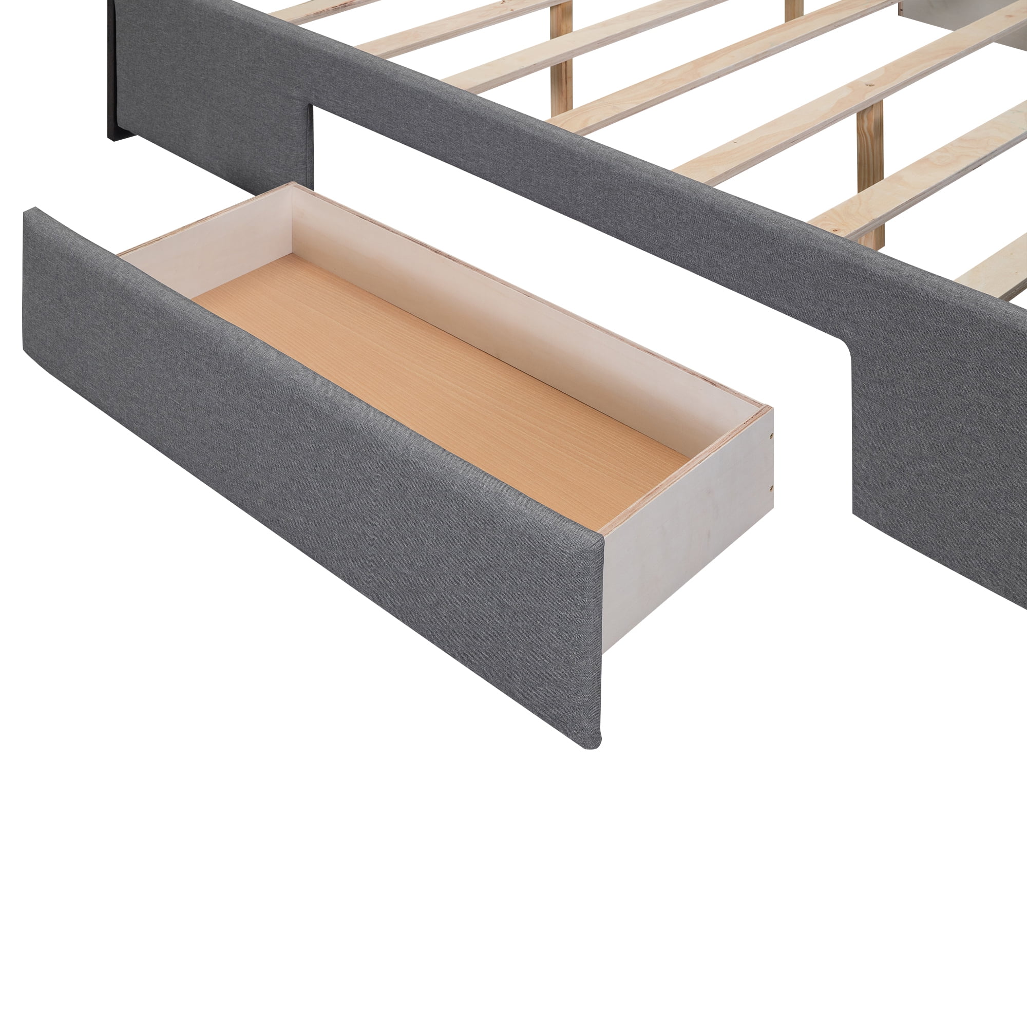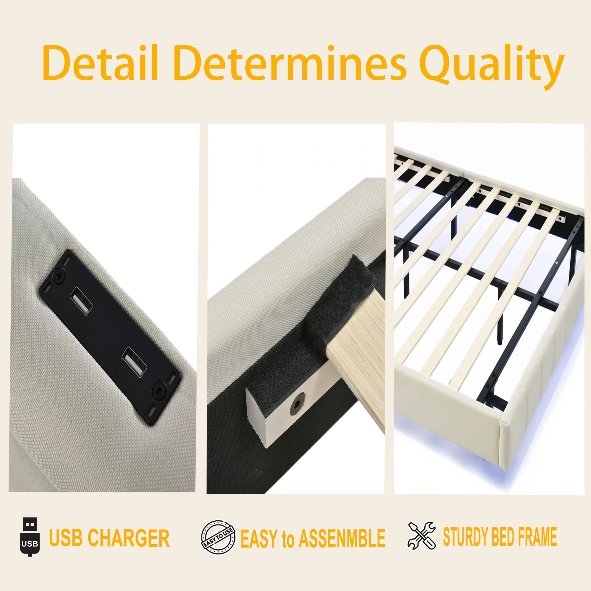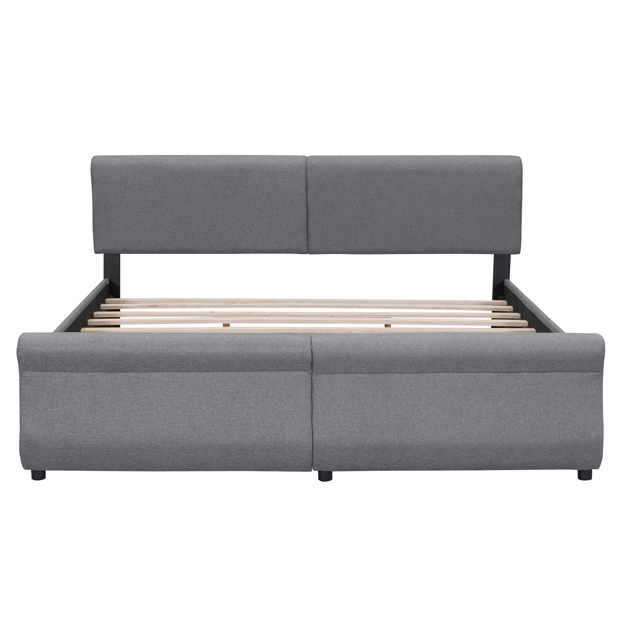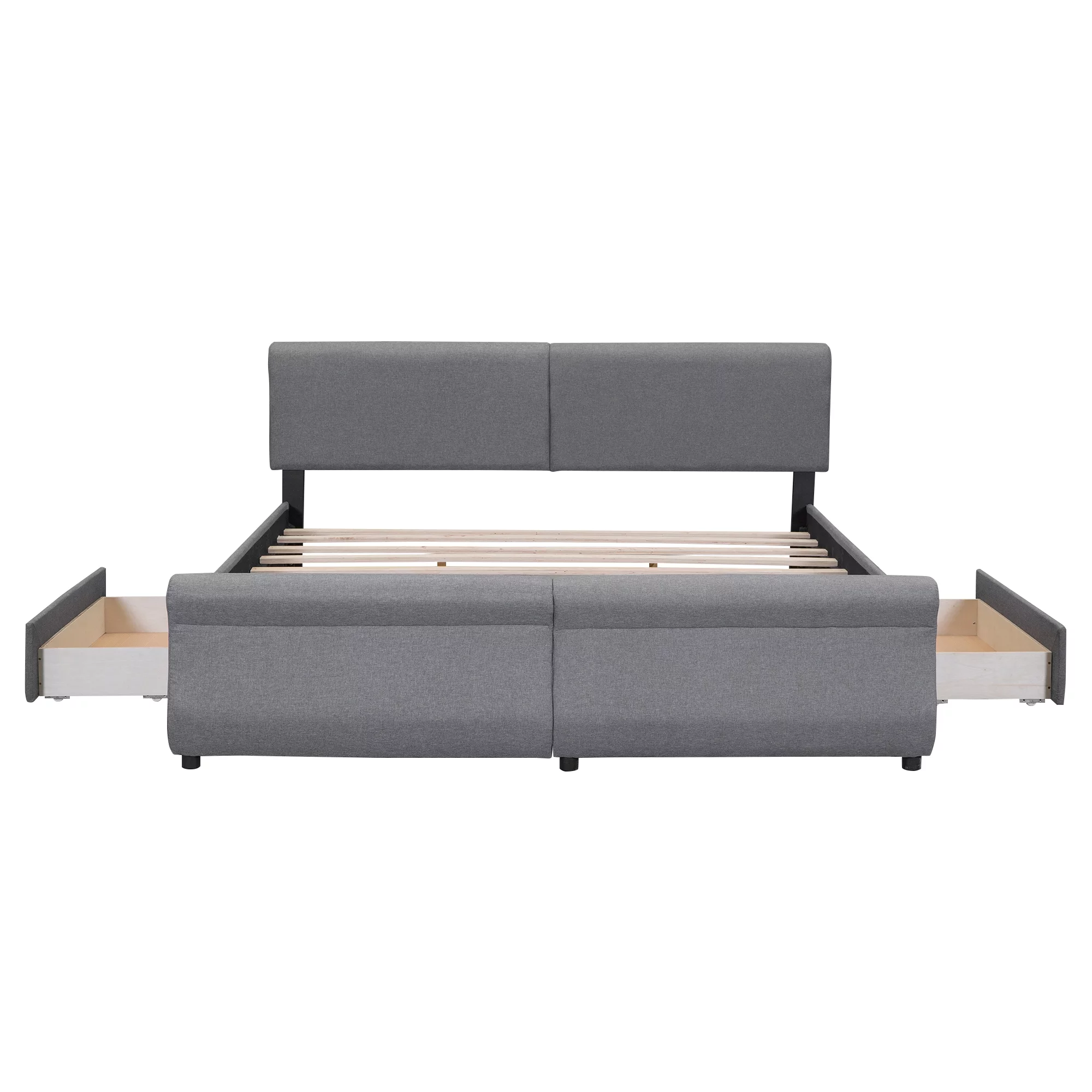 Modern Rustic Style Metal Platform Bed Frame with Four Drawers and Wooden Headboard, Sockets, and USB Ports