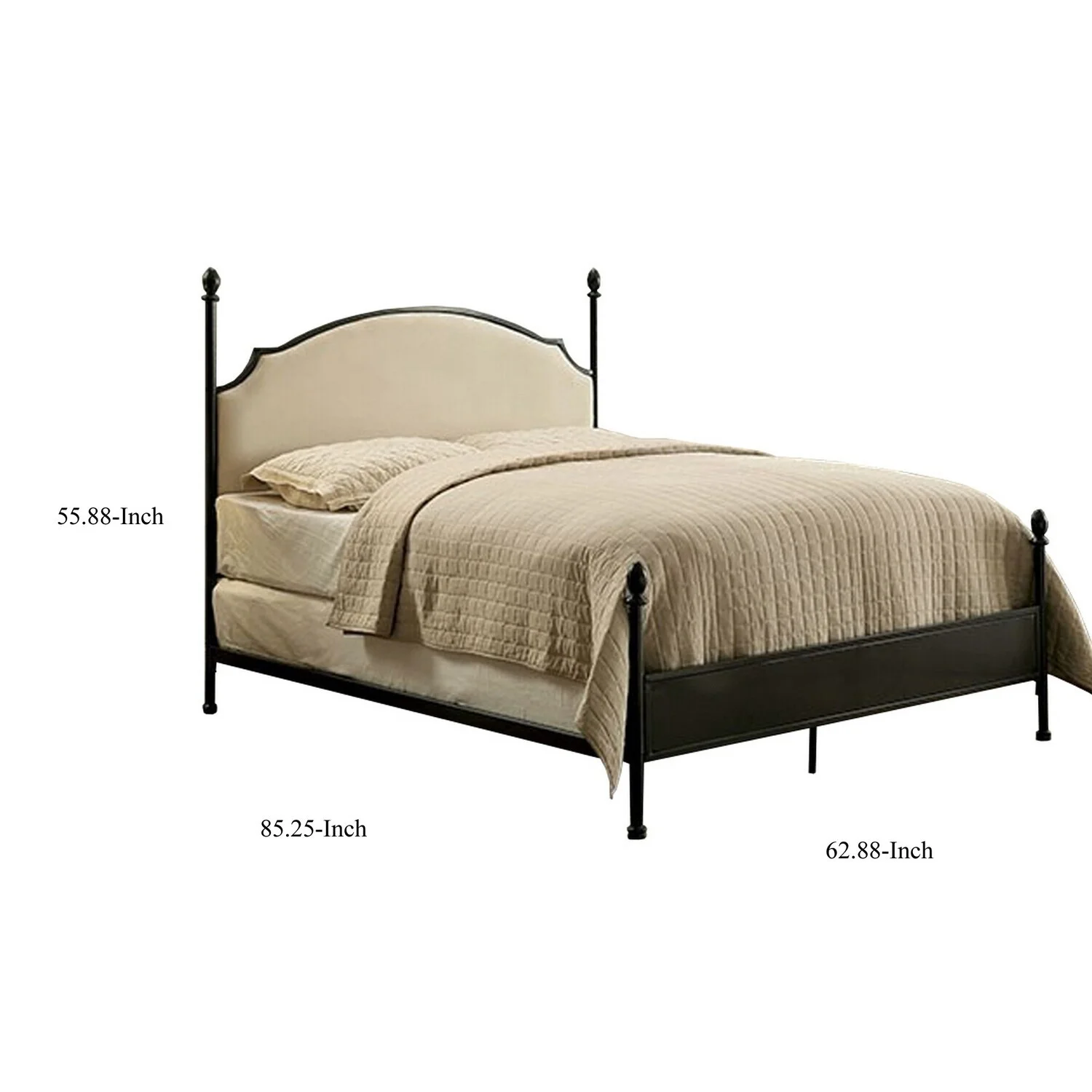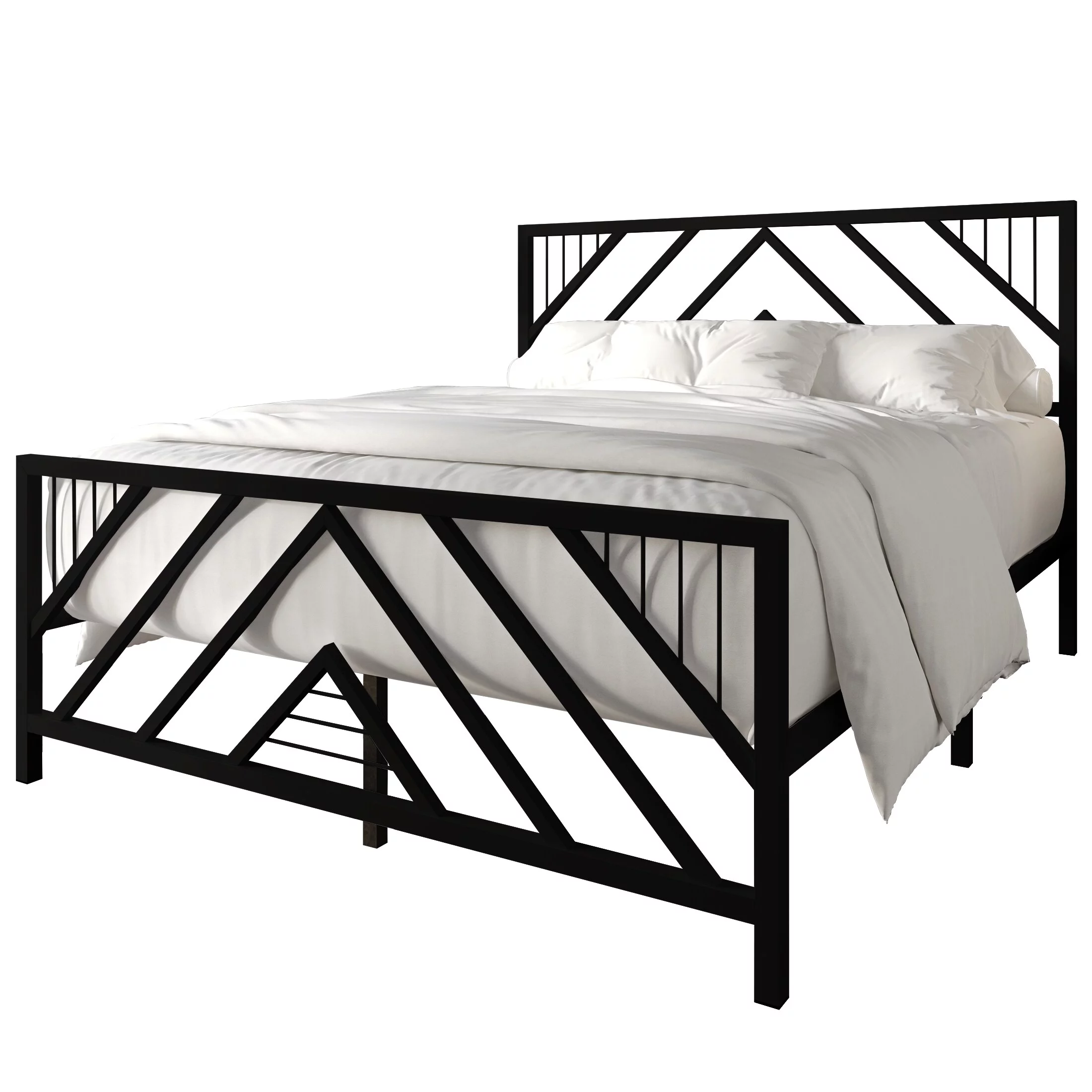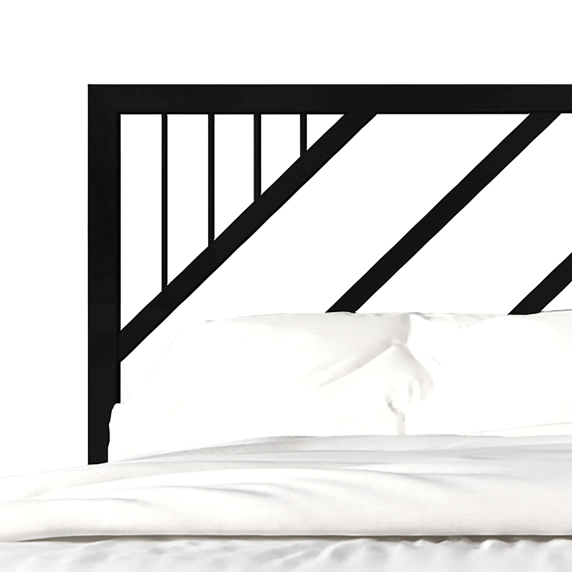Bree Modern Rustic Queen Size Platform Bed with Brown Acacia Wood Frame & Black Metal Angled Legs