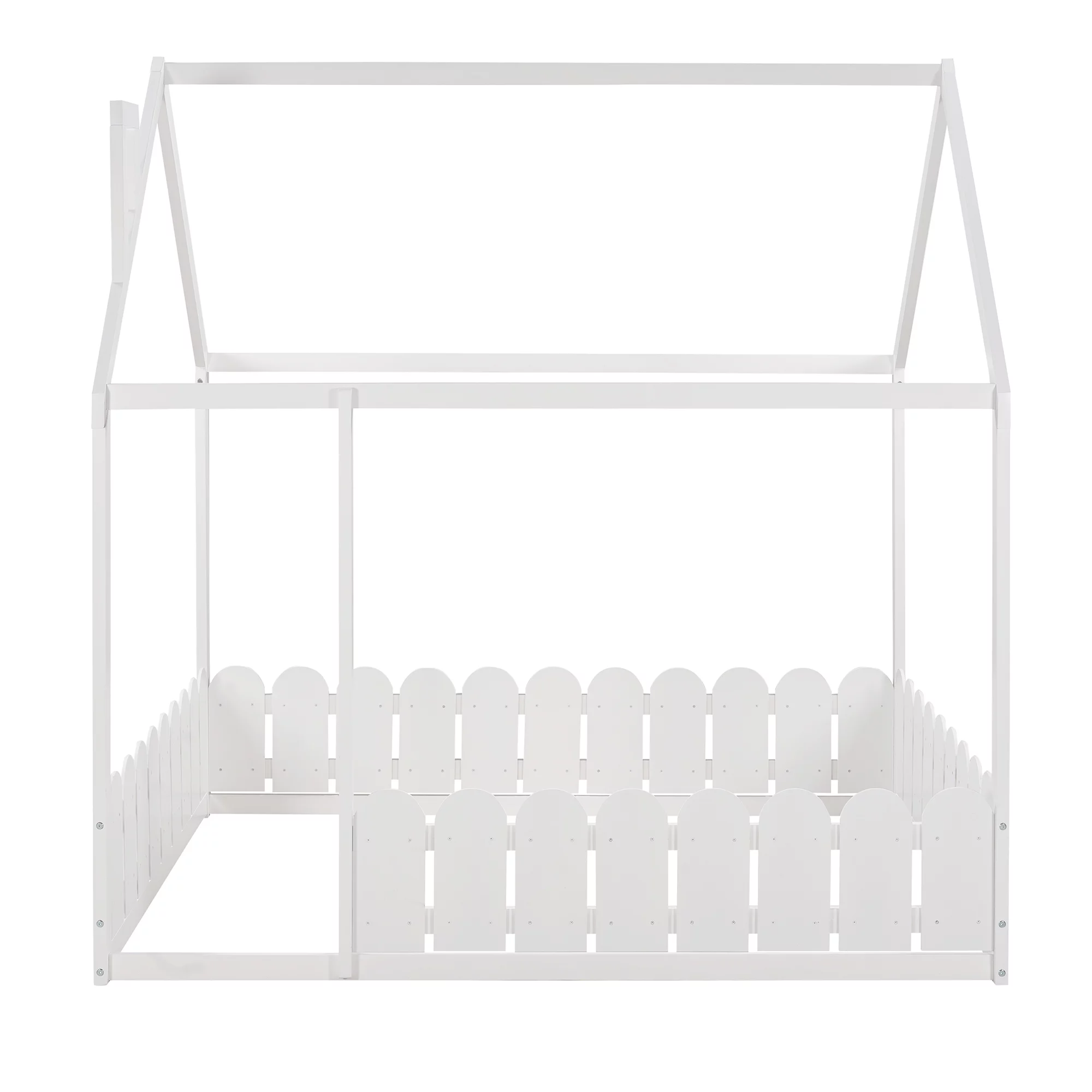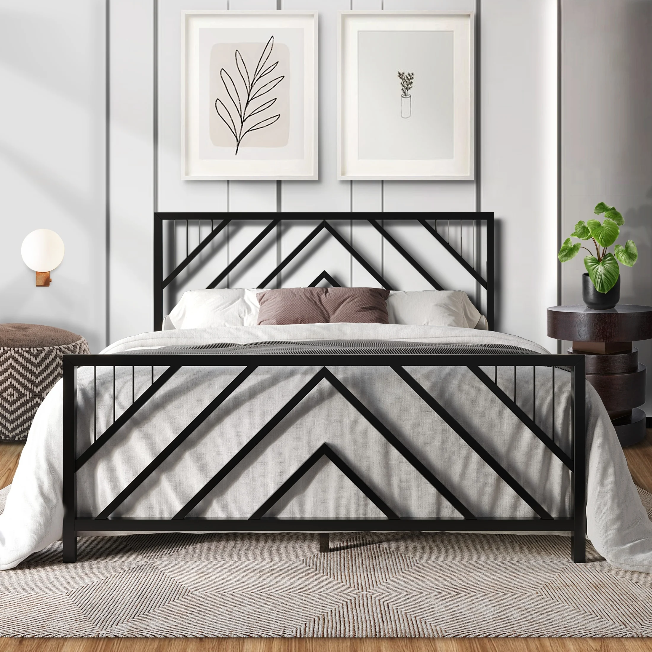 AGARTT Metal Platform Bed With Headboard And Footboard No Box Spring,Queen Size,White