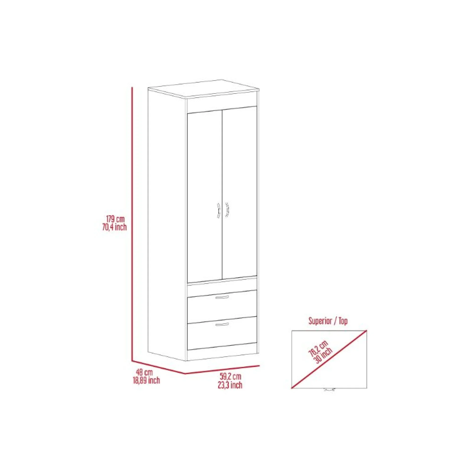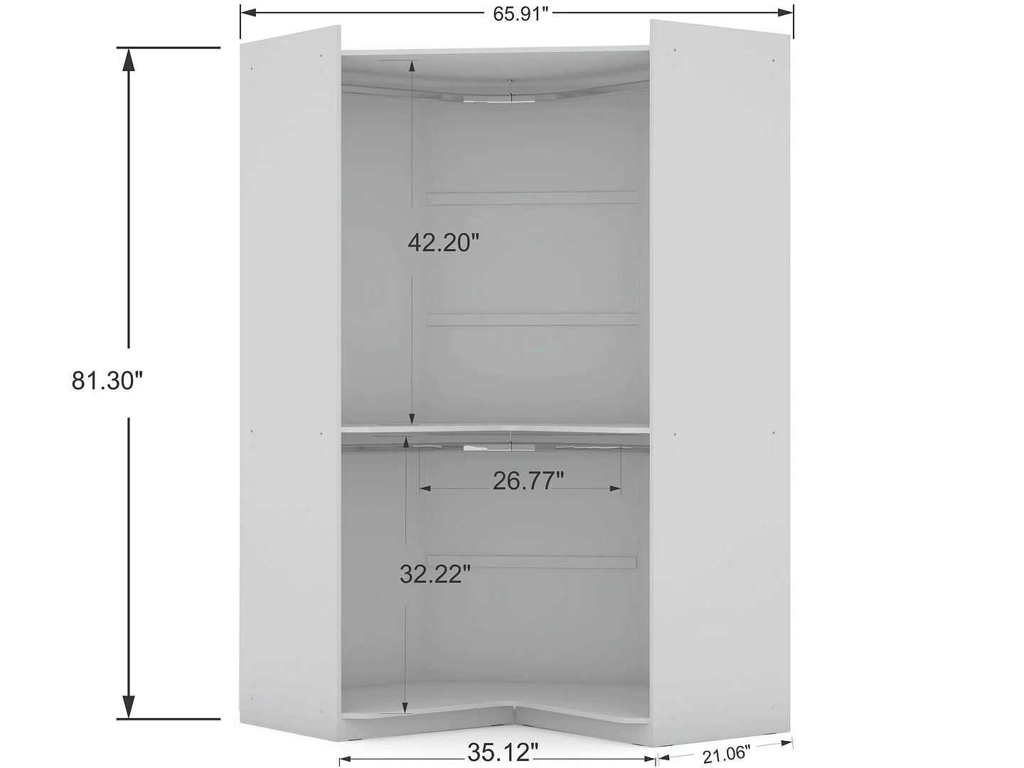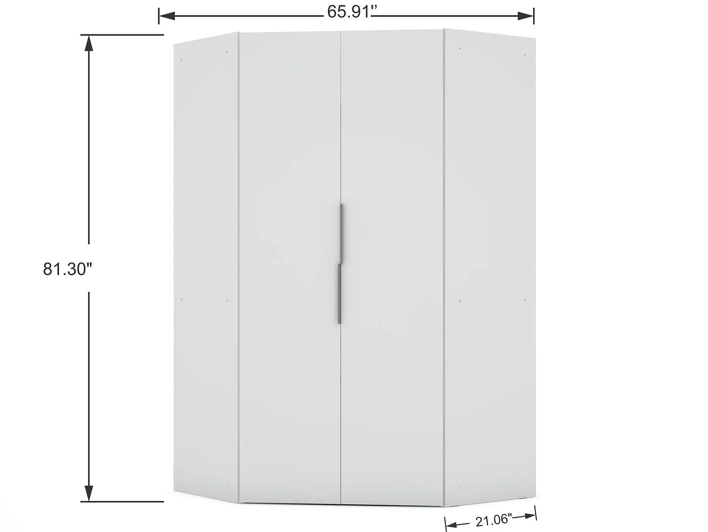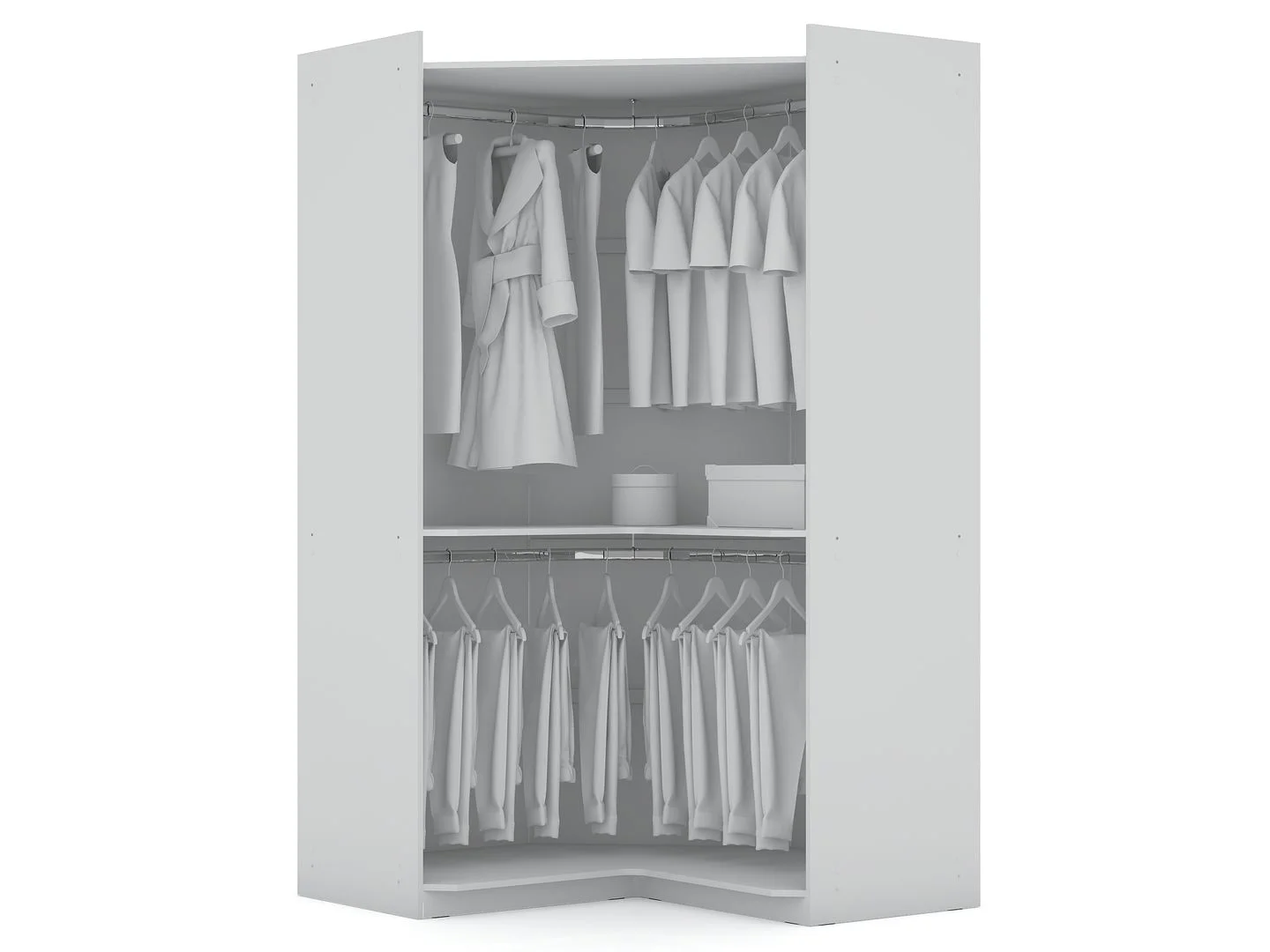 Mulberry 2.0 Modern Corner Wardrobe Closet with 2 Hanging Rods in White