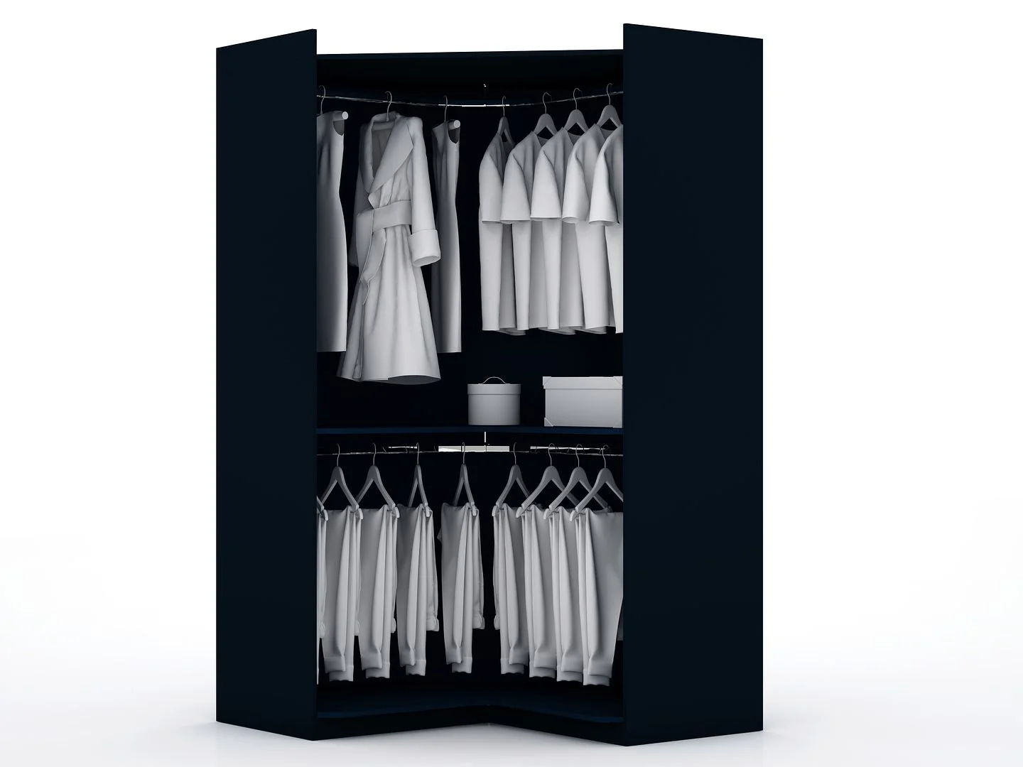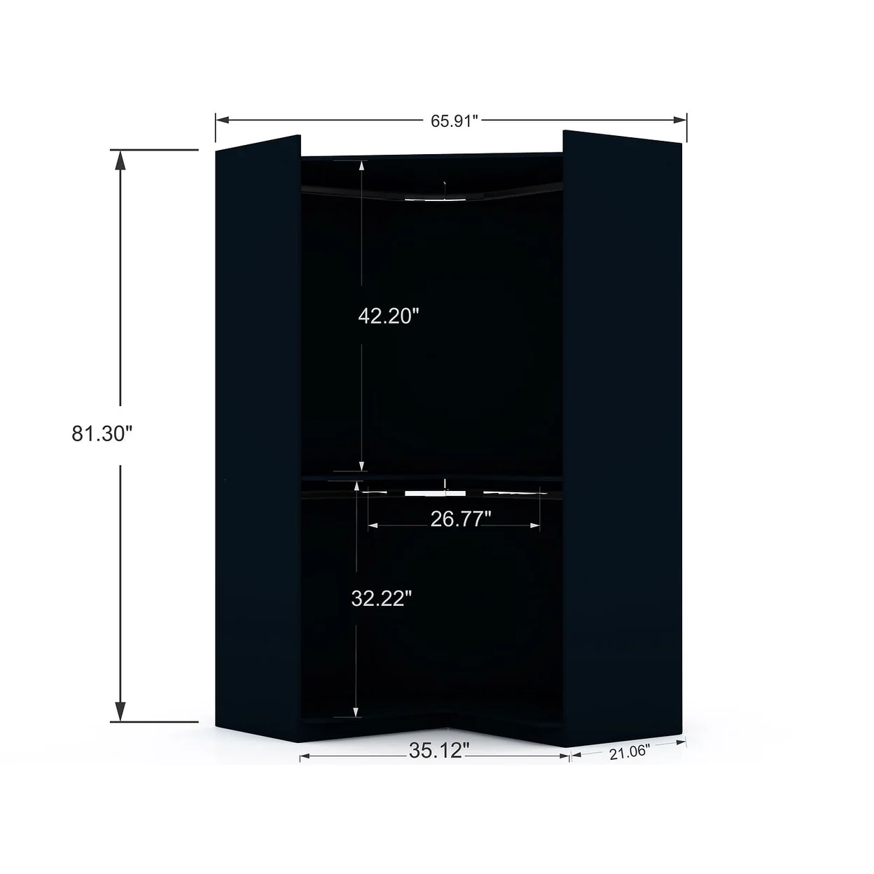 Mulberry Modern Open Corner Closet with 2 Hanging Rods in Tatiana Midnight Blue
