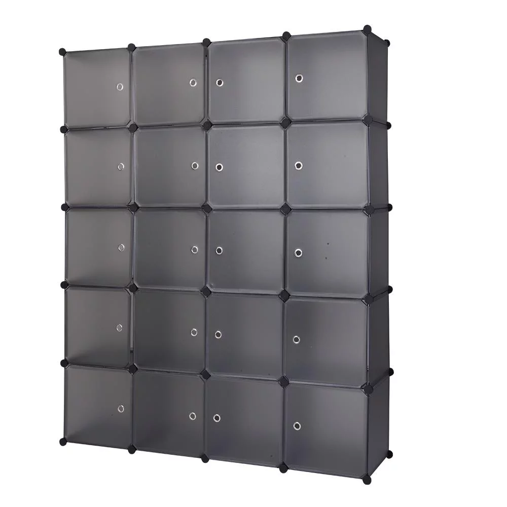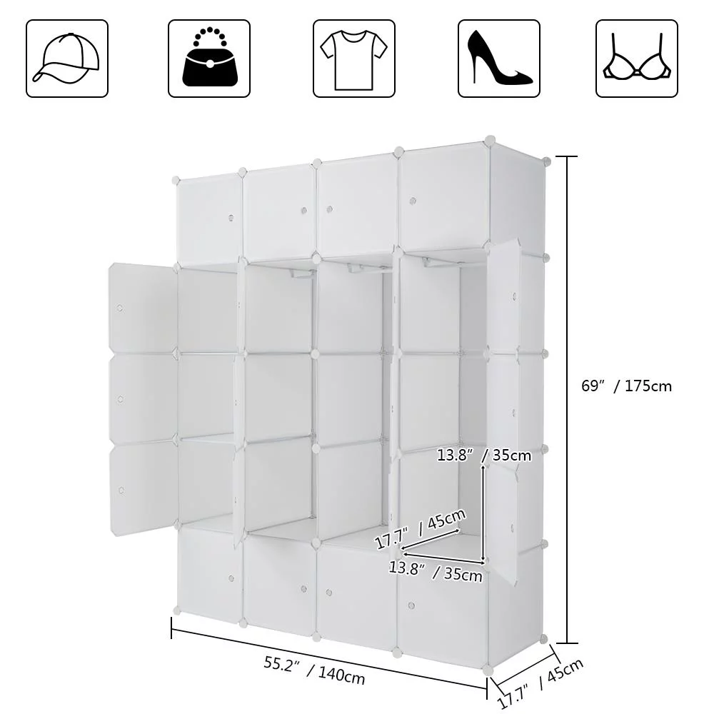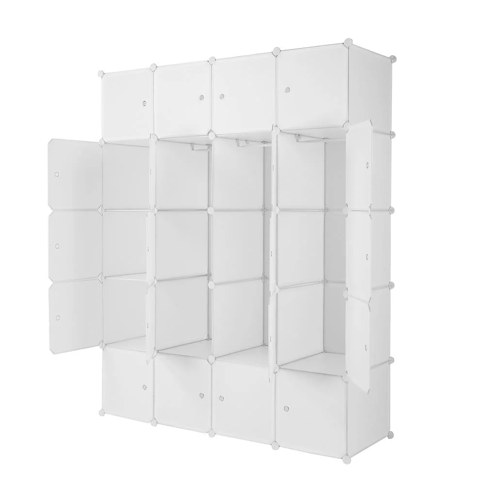 SamyoHome Portable Wardrobe W/Doors 20-Cube DIY Closet Bookcase with Hanging Rod