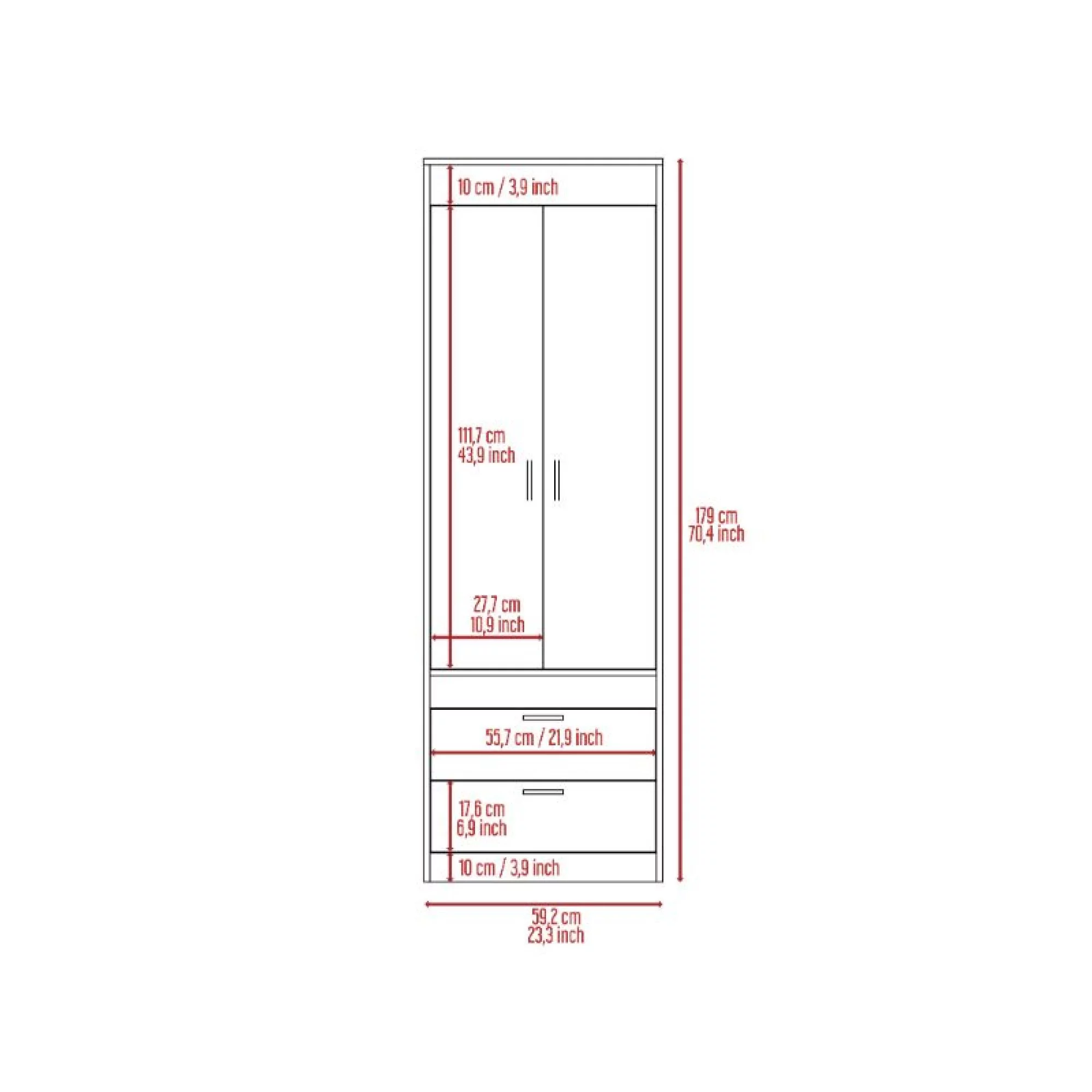 Rioja Dresser With 4 Drawers, Cabinet, Hanging Rod, And Open Shelf, Light Oak/White