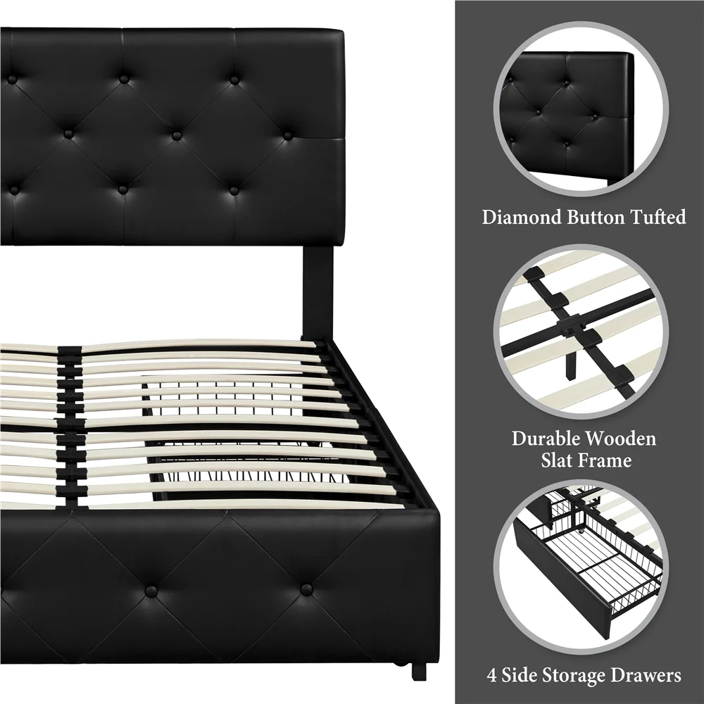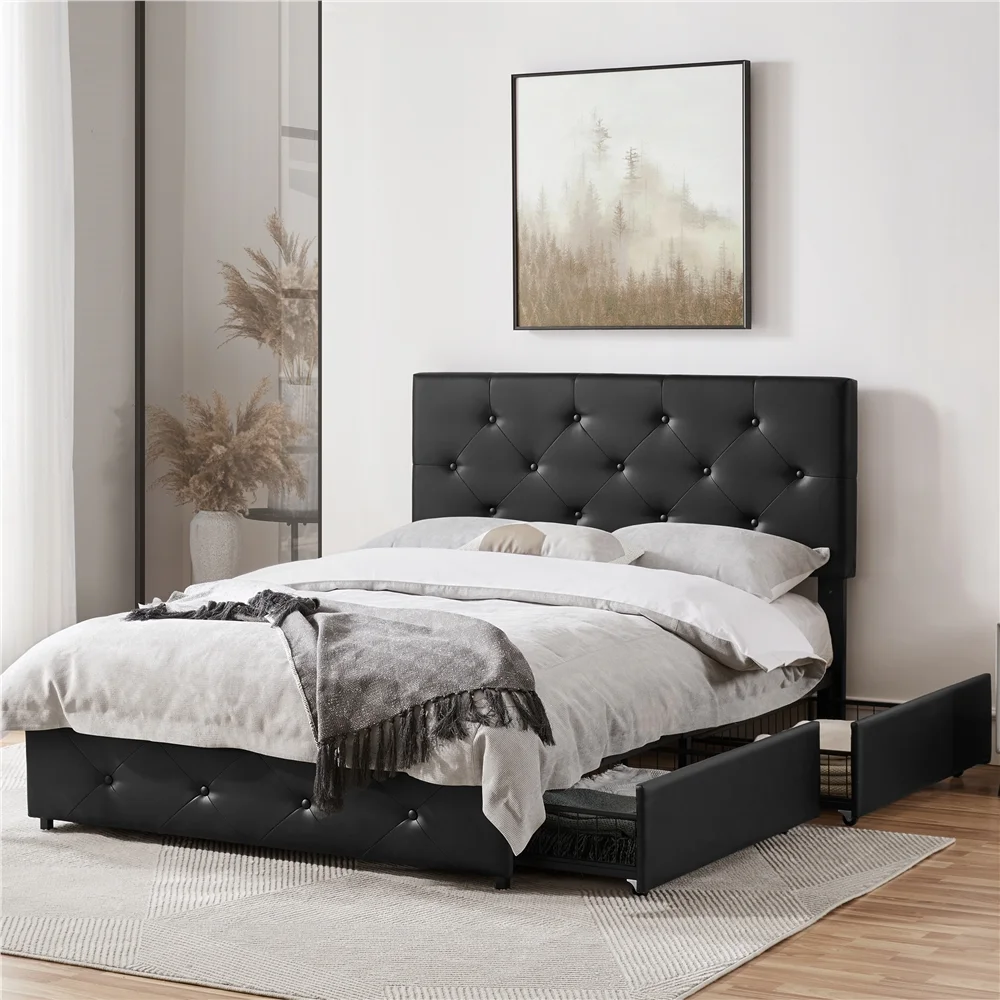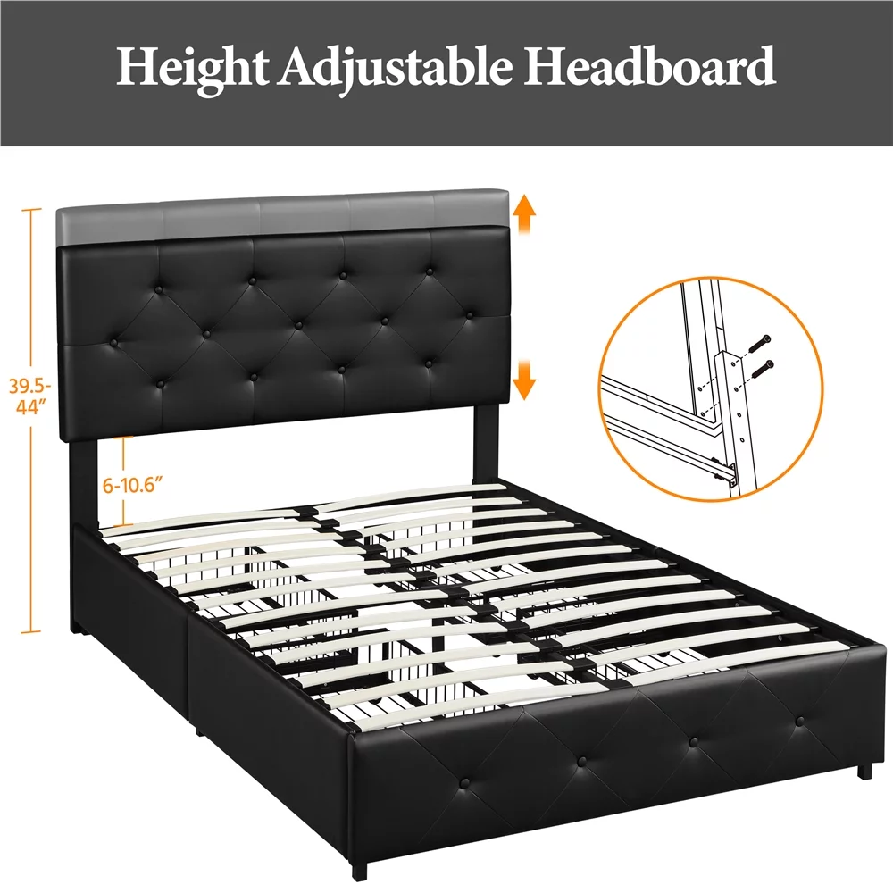 Yaheetech Upholstered Platform Bed Frame with Storage, Full Size, Black