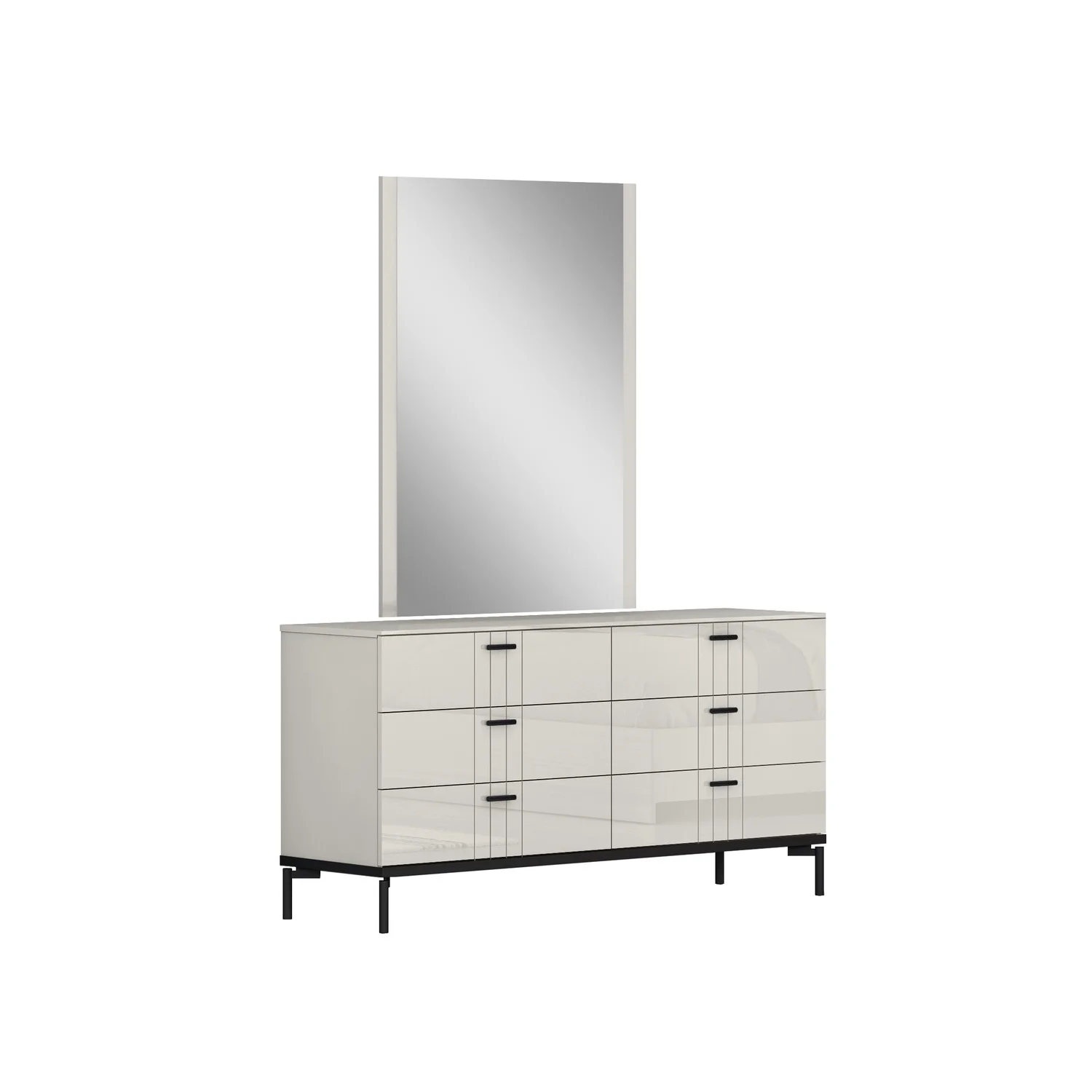Bella Esprit 52633-DR 64 in. Mirrored Trim 8 Drawers Dresser, Silver