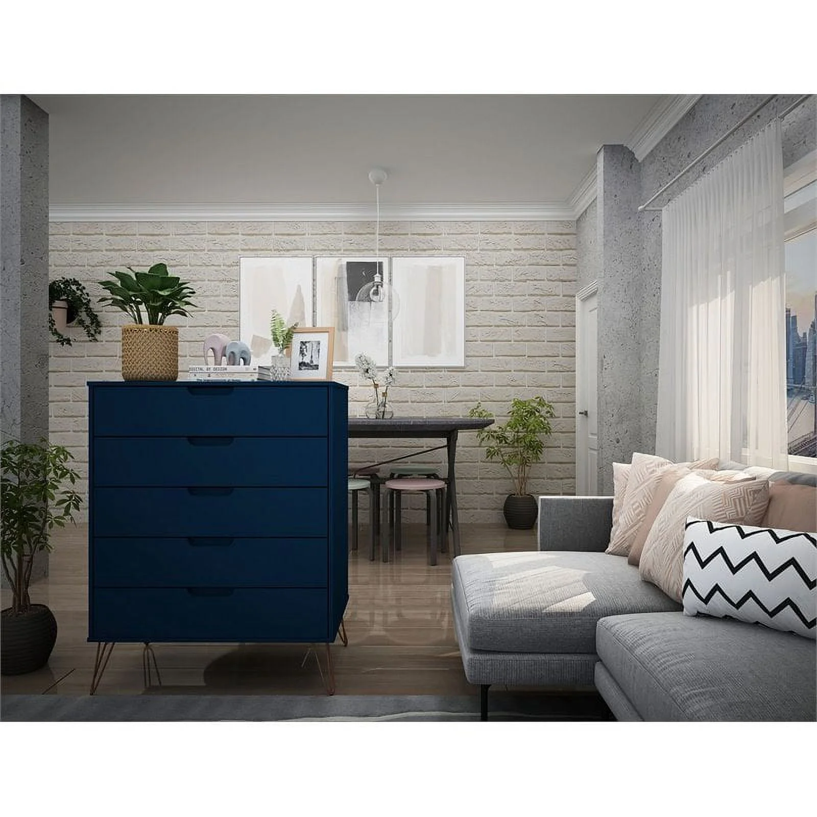 Pemberly Row 5-Drawer Contemporary Wood Dresser in Tatiana Midnight Blue