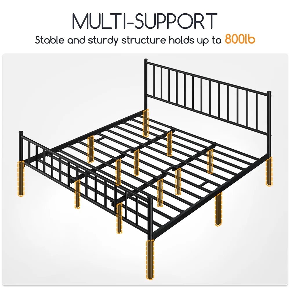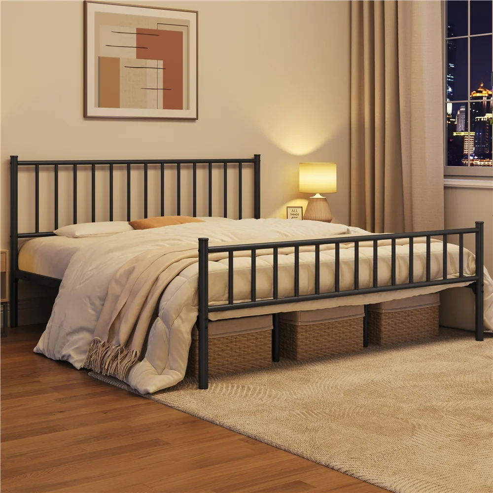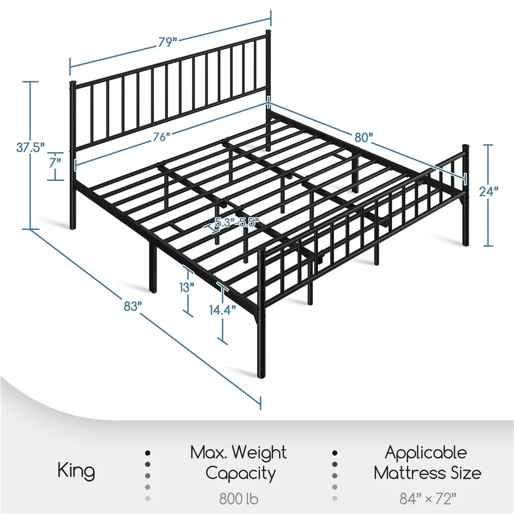 Easyfashion Justin Metal Platform Bed with Spindle Headboard and Footboard,King,Black