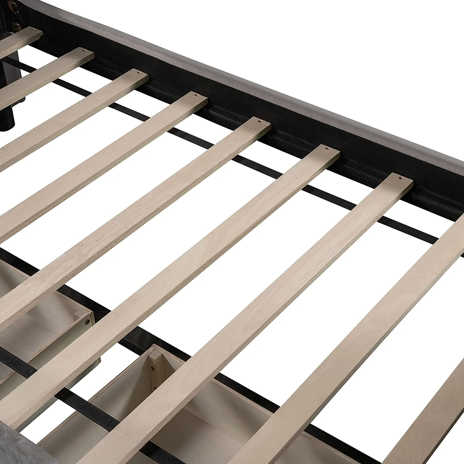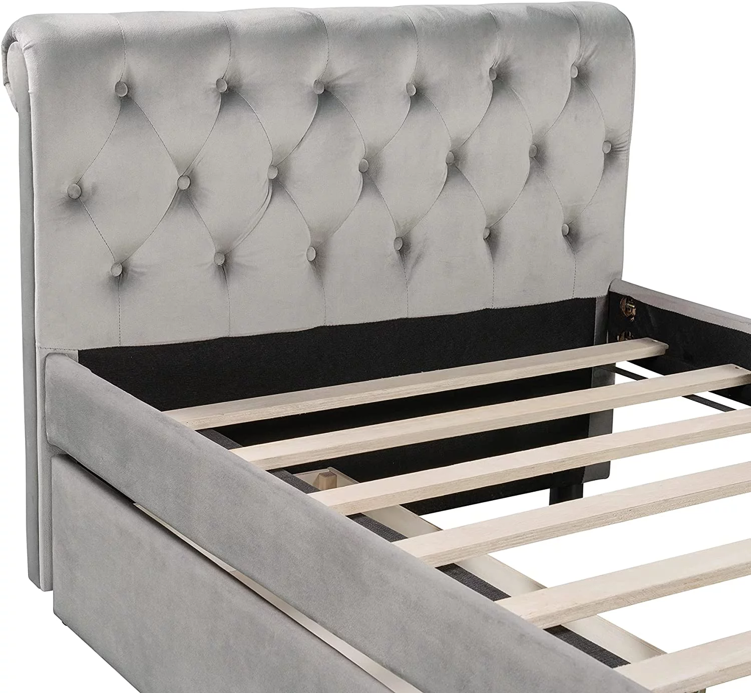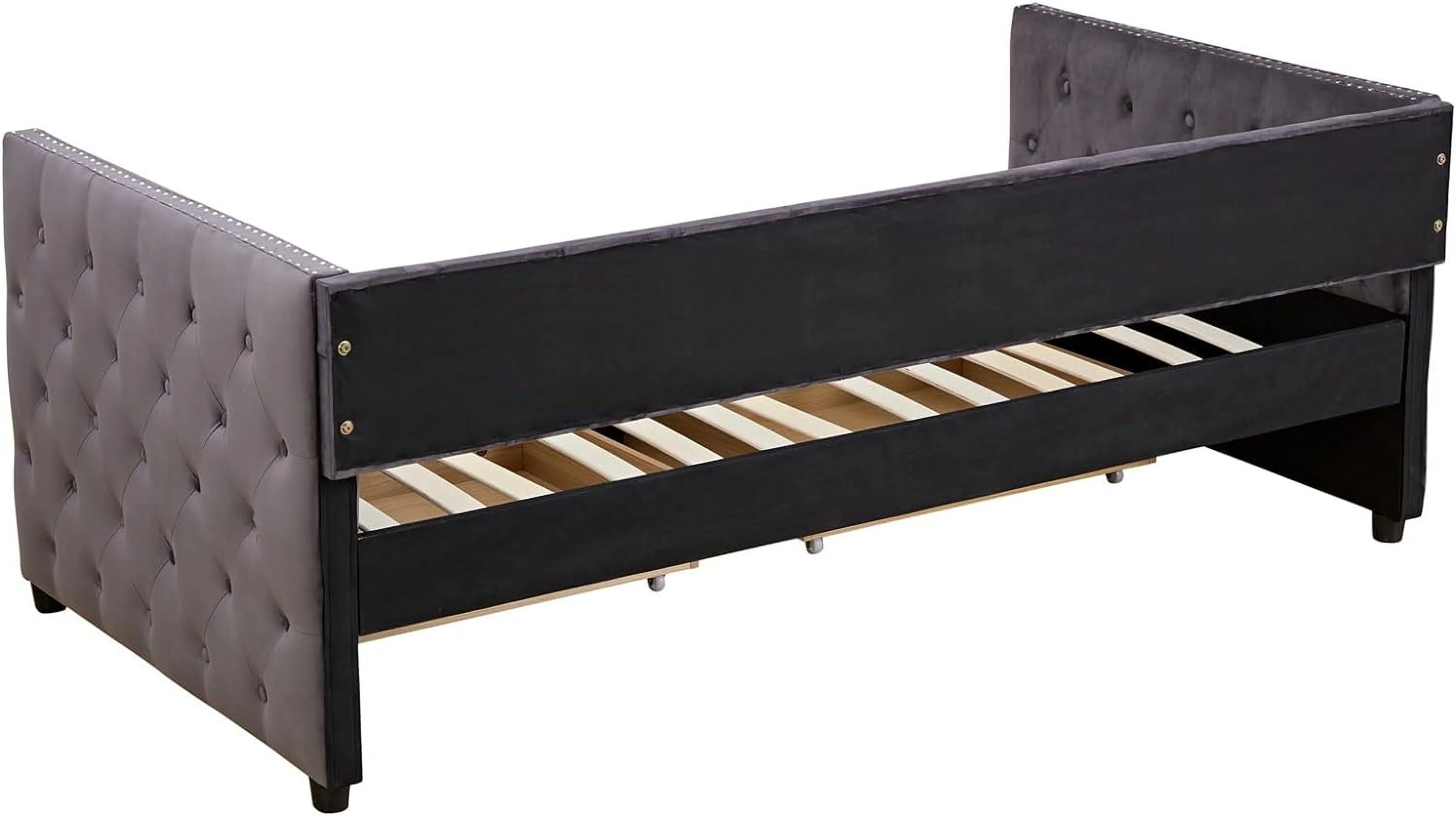 Upholstered Daybed With Two Storage Drawers, Tufted Sofa Bed Daybed With Nailhead Trim And Support (Grey) Wood Slat