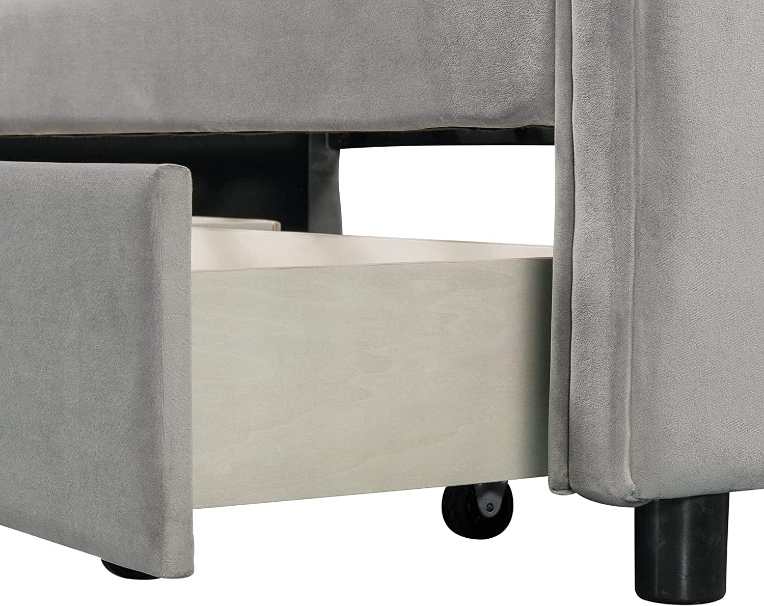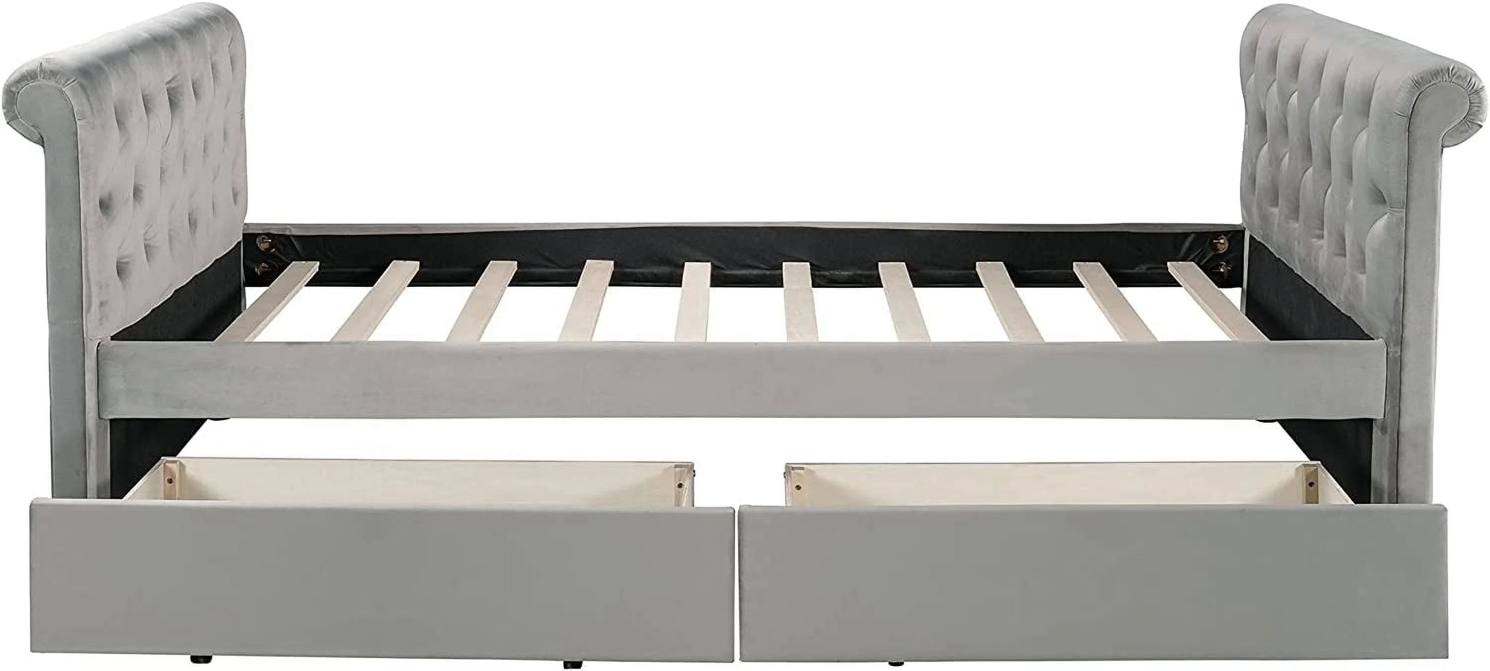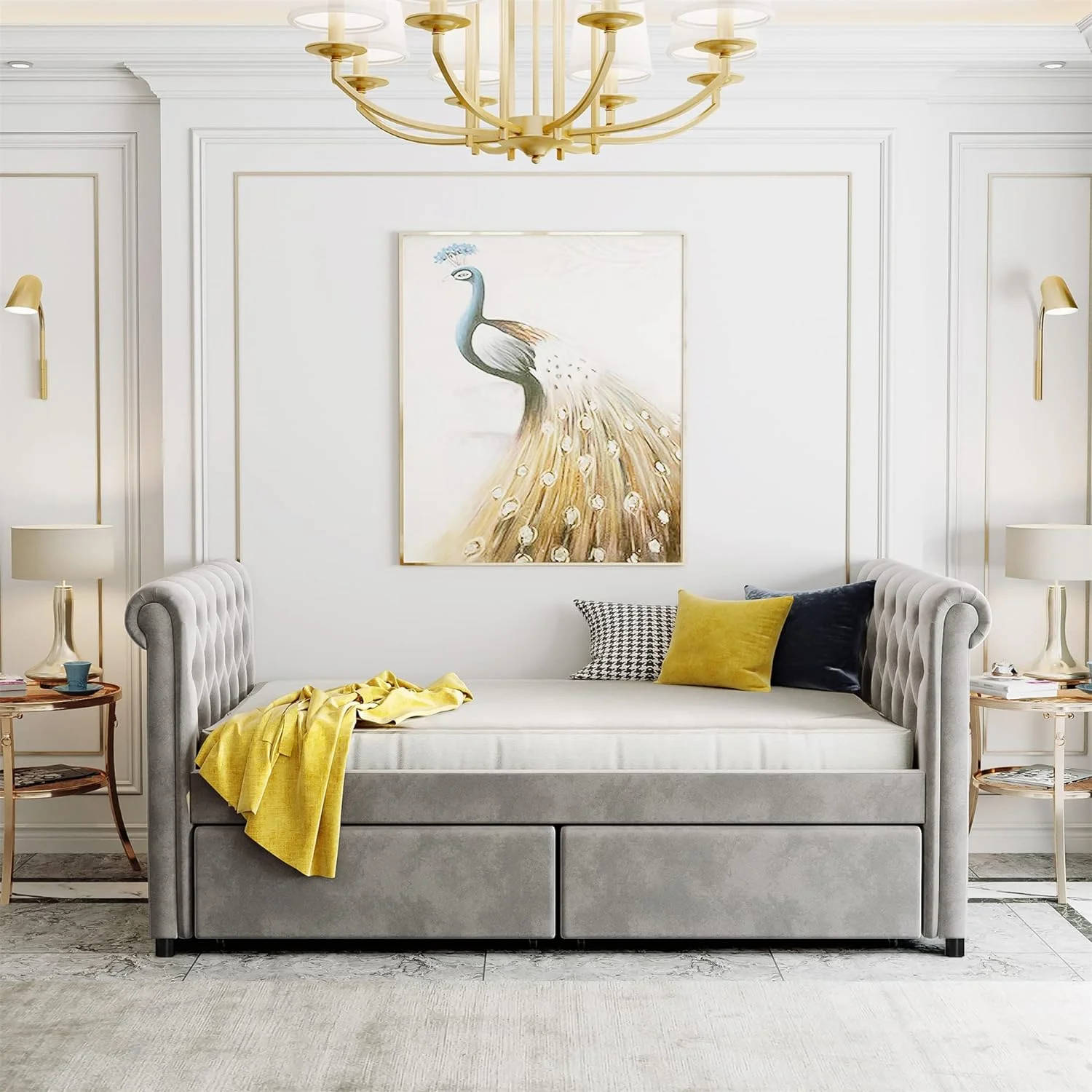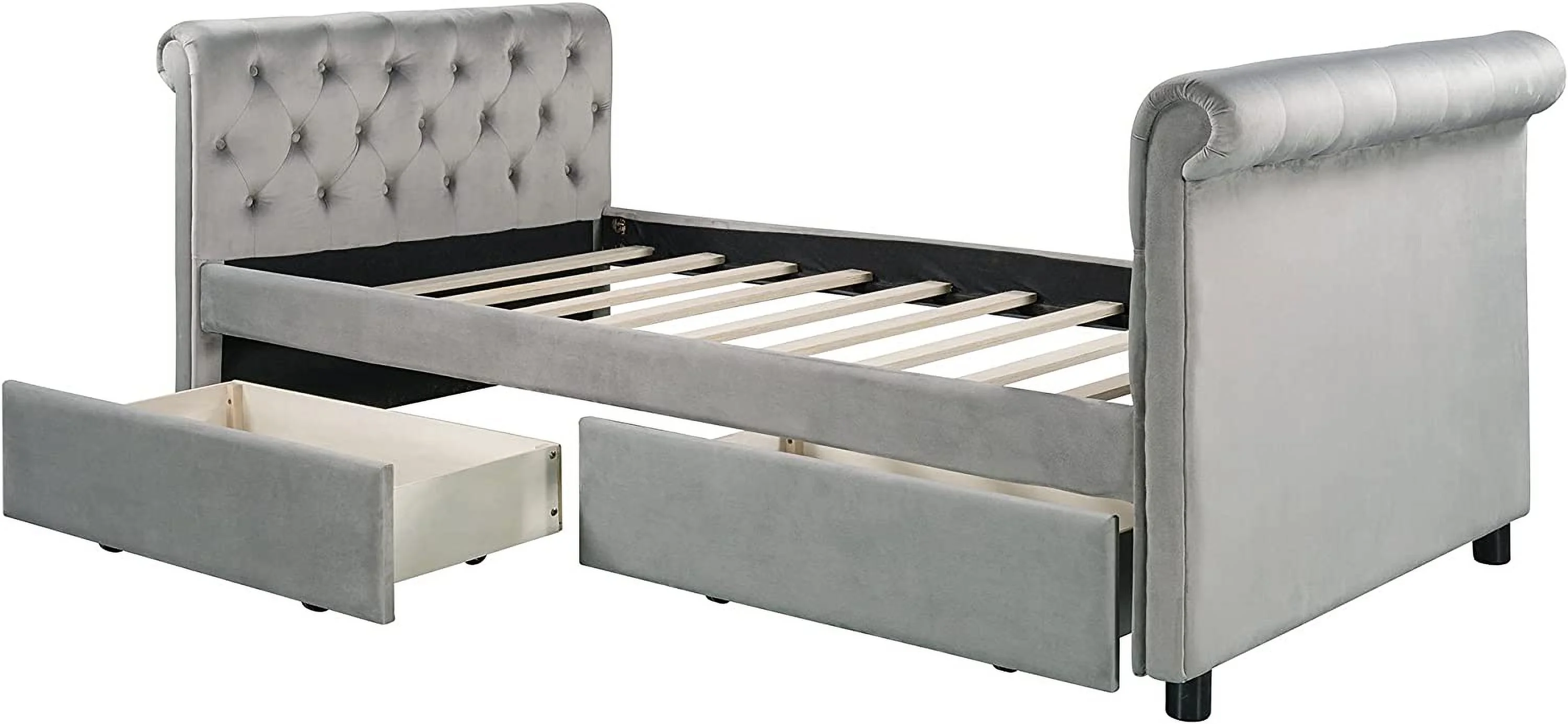 Daybed With Storage Drawers Upholstered Sofa Bed Frame Velvet Gray Day Beds For Bedroom Living Room Guest Room