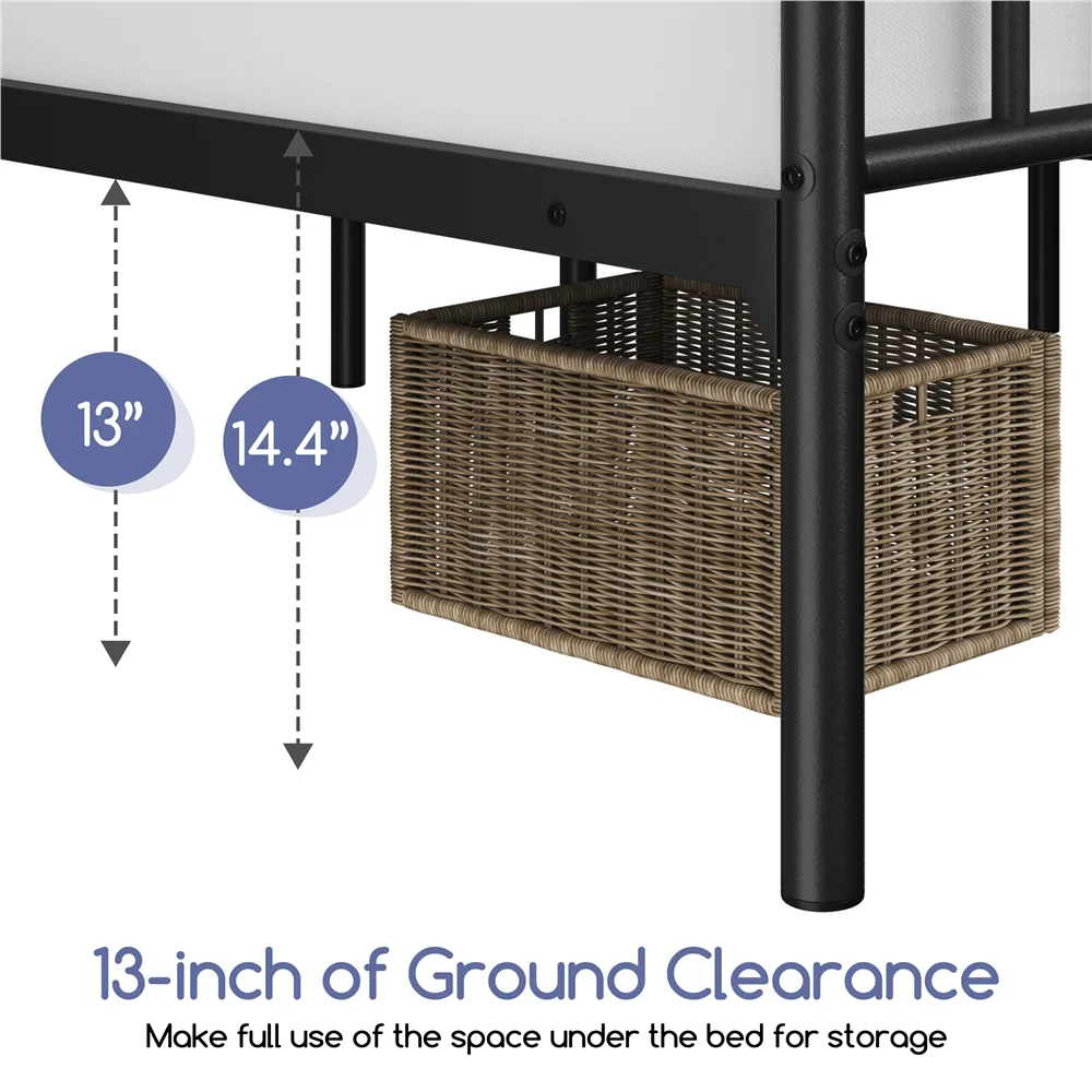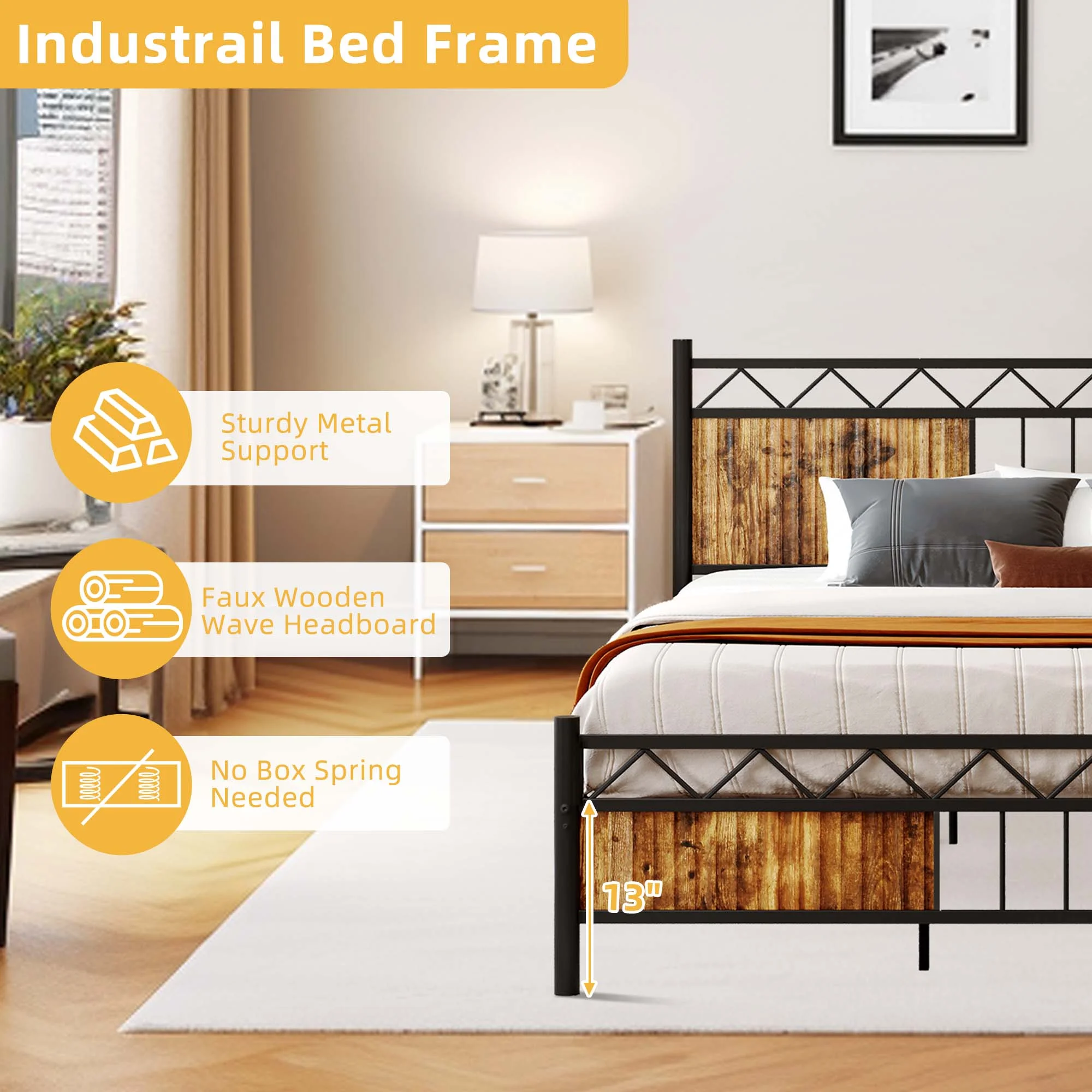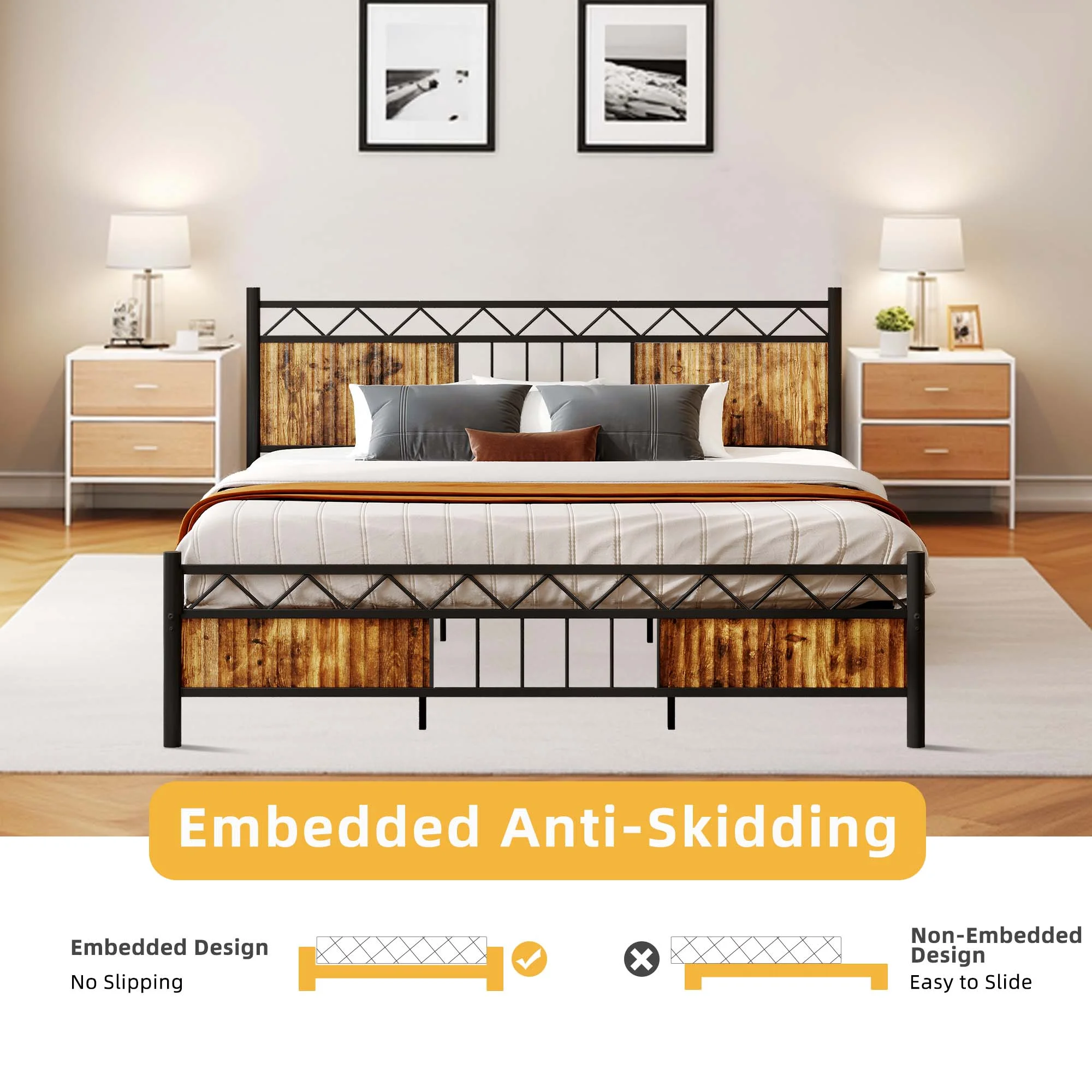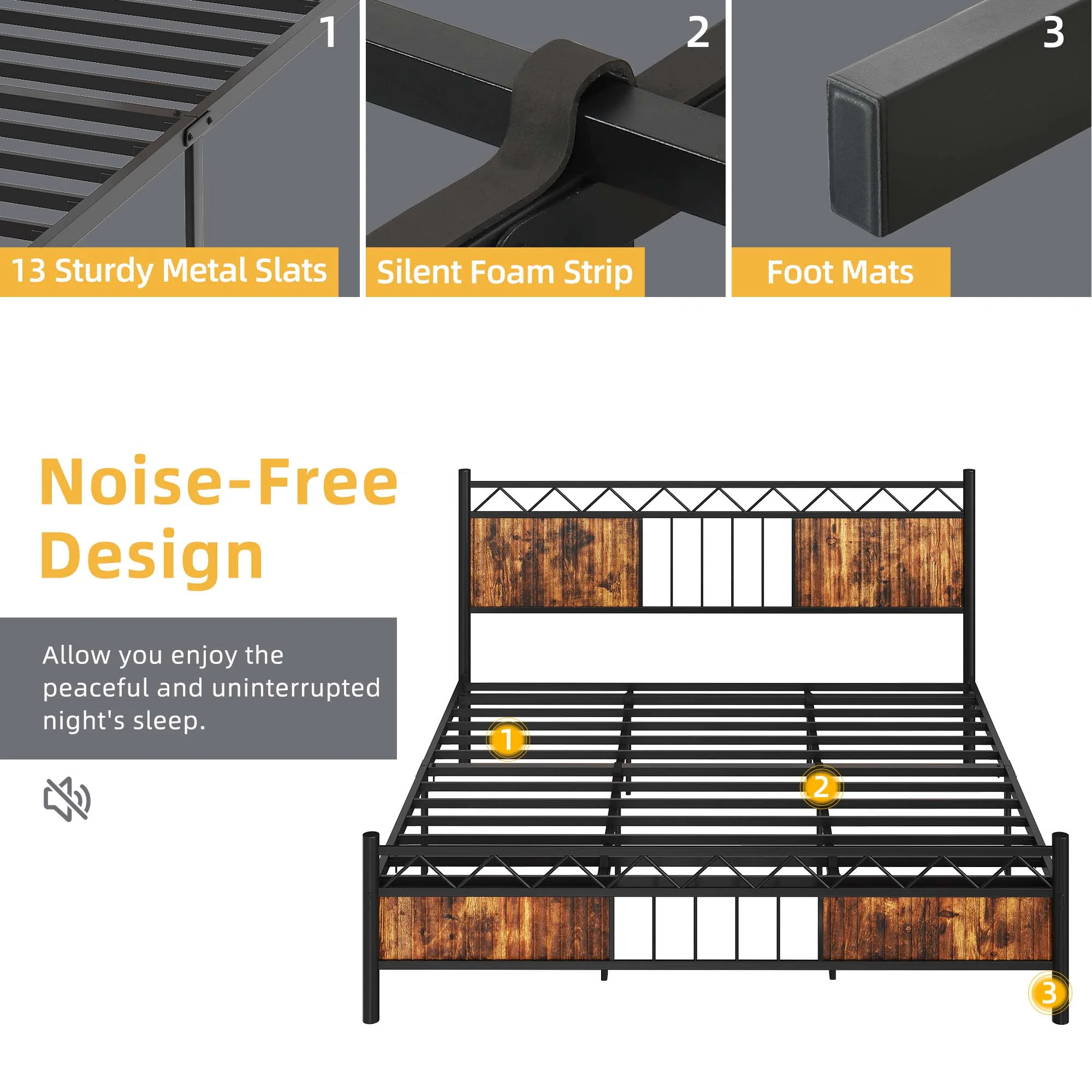 DWVO King Size Platform Metal Bed Frame with Headboard & Soundproof Cotton, Black and Brown
