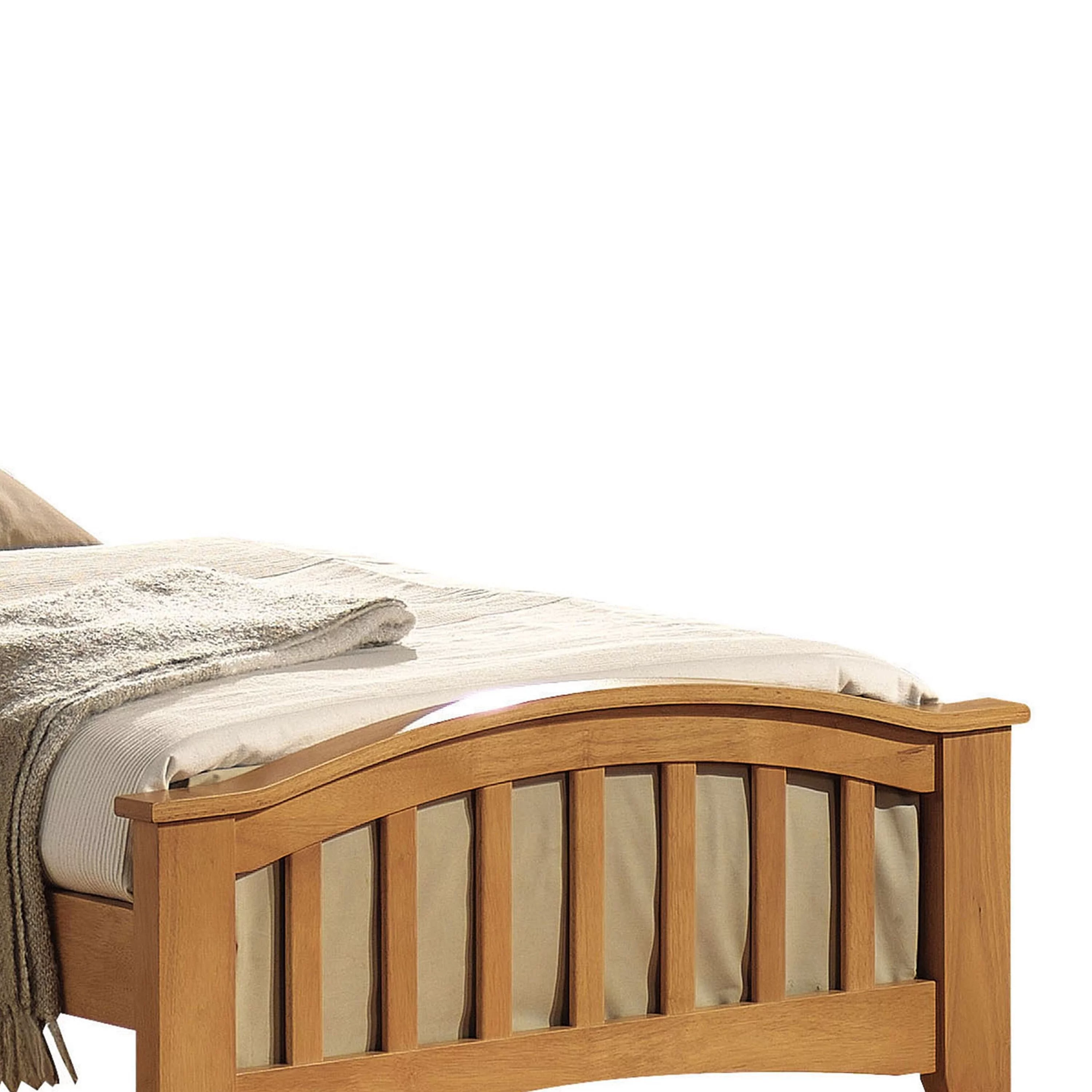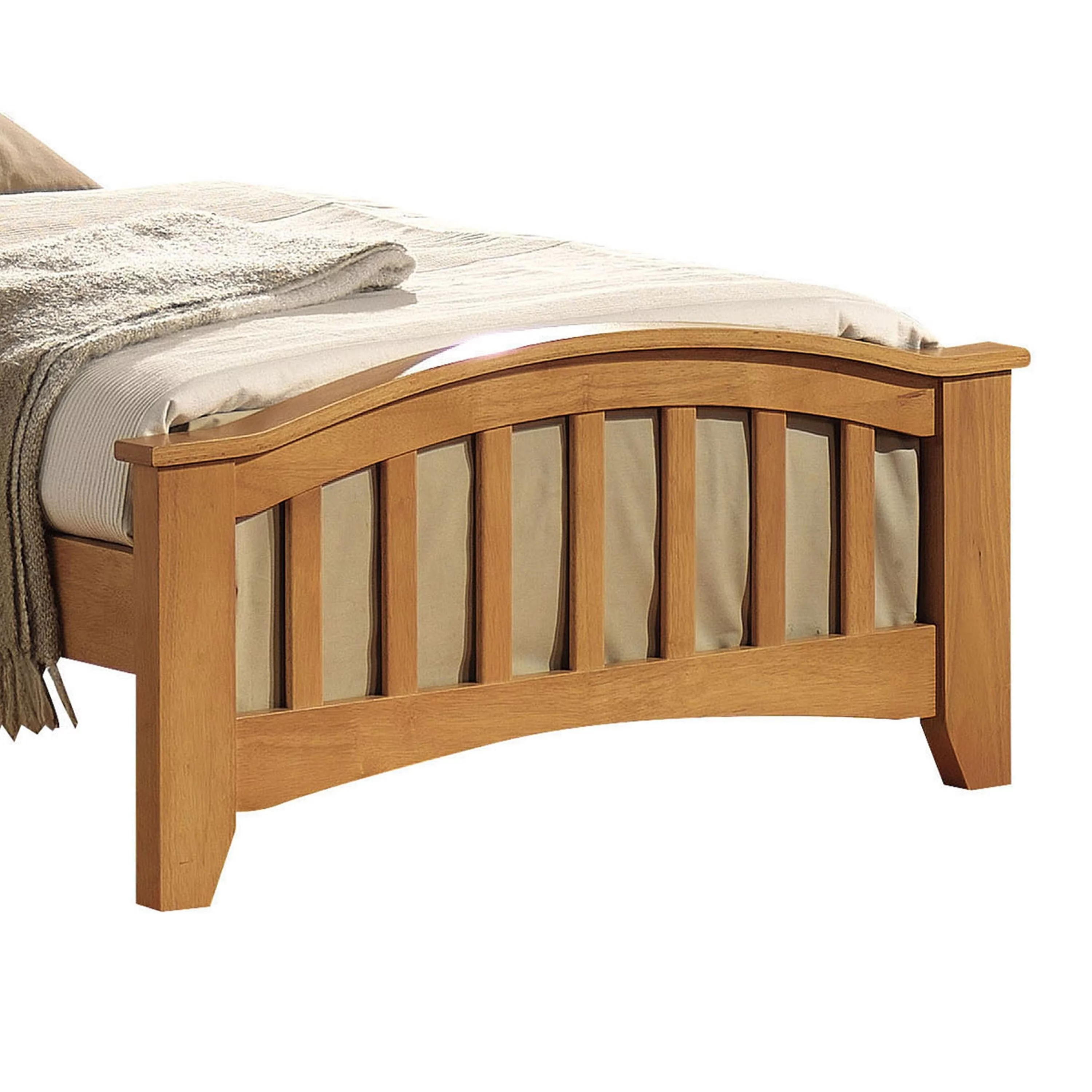 Mission Style Wooden Twin Bed with Arched Slatted Headboard and Footboard, Maple Brown