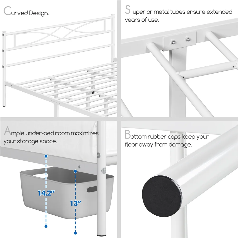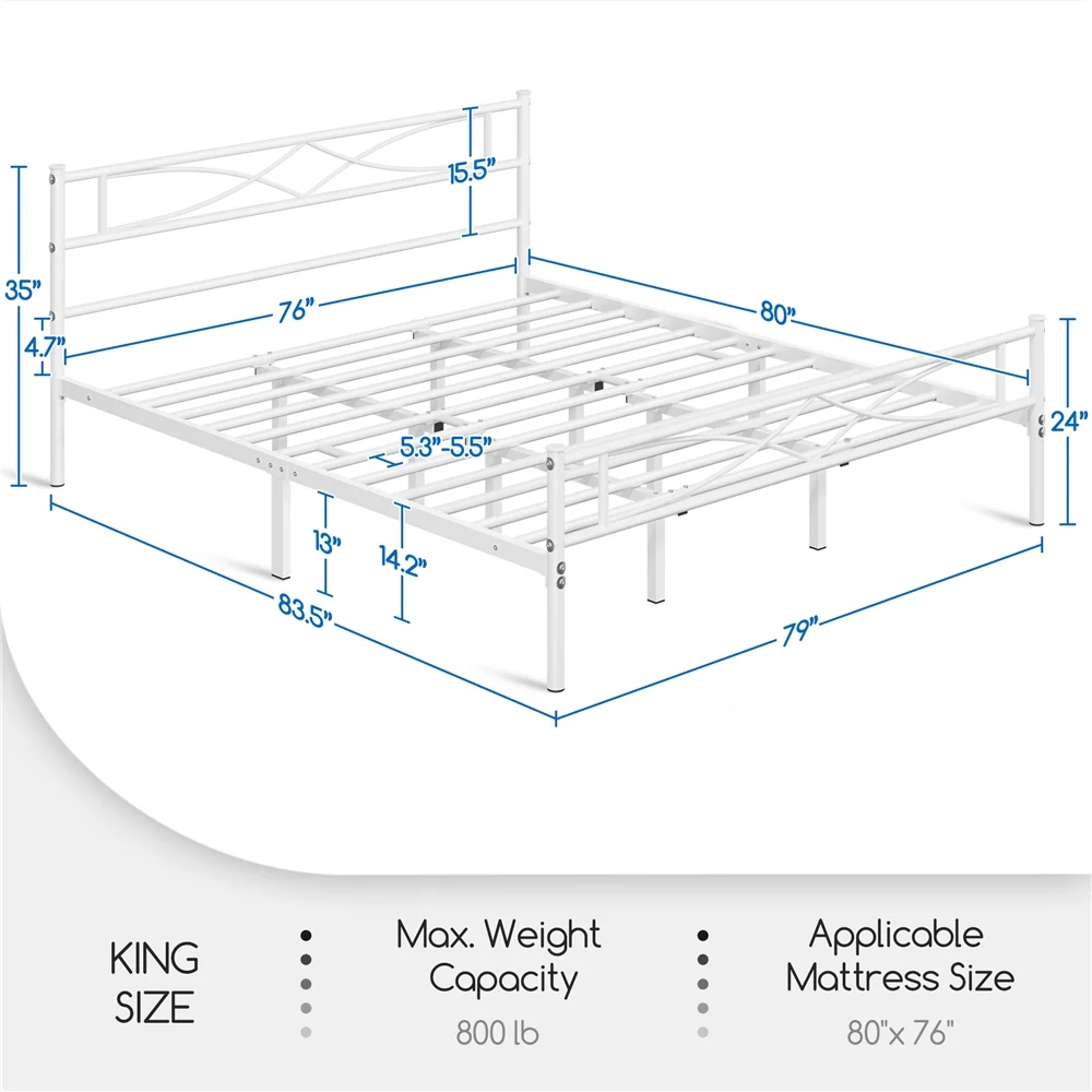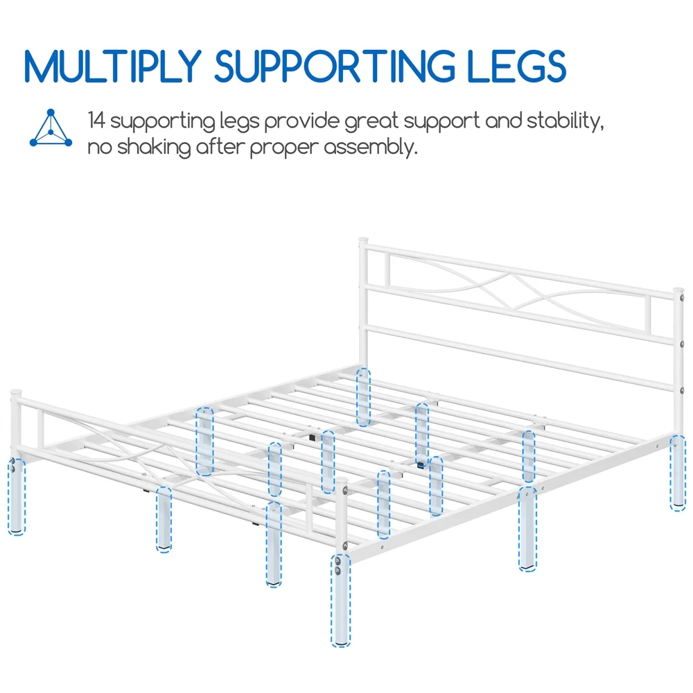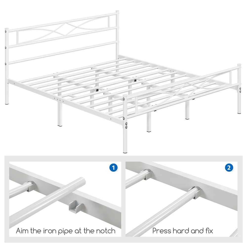 Topeakmart Metal King Bed Frame with Curved Design Headboard and Footboard, White