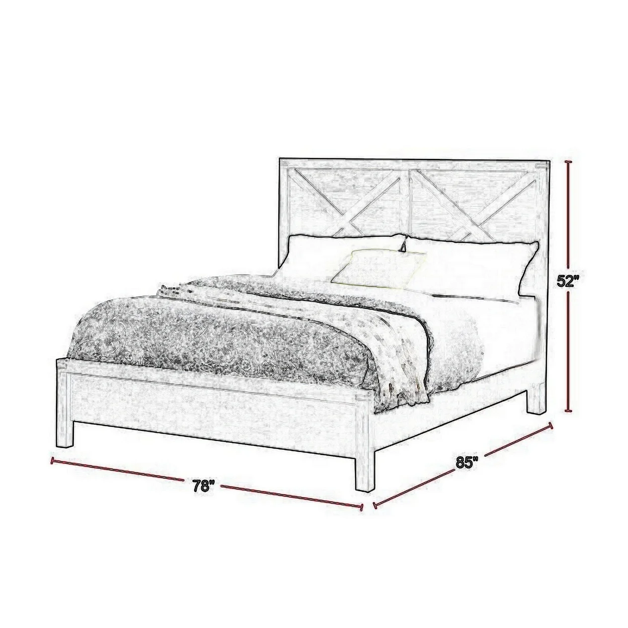 Yale Platform Queen Size Bed, Crossed Accent Panel, Dark Walnut Brown- Saltoro Sherpi