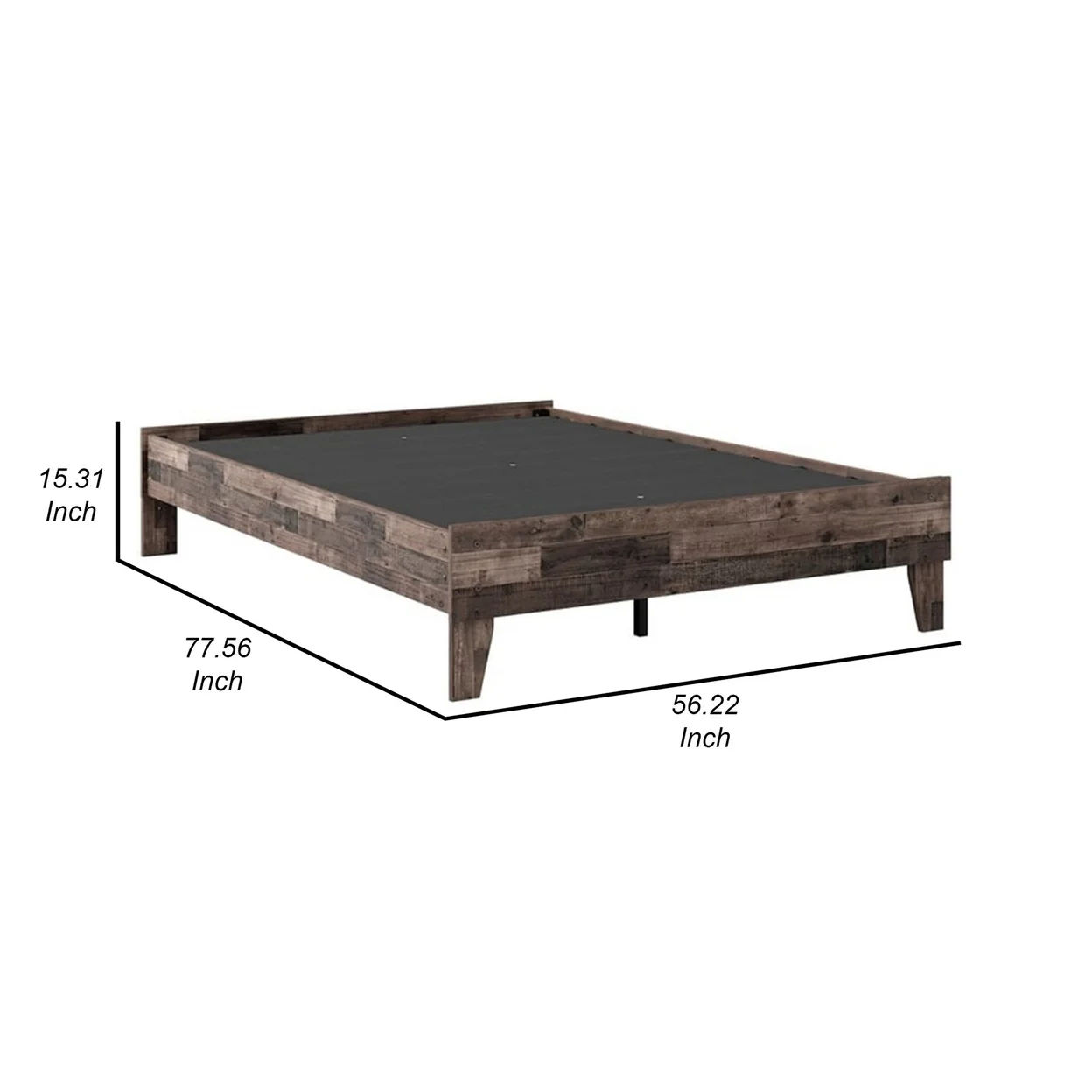 Full Platform Bed Low Profile Footboard Farmhouse Butcher Block Brown- Saltoro Sherpi
