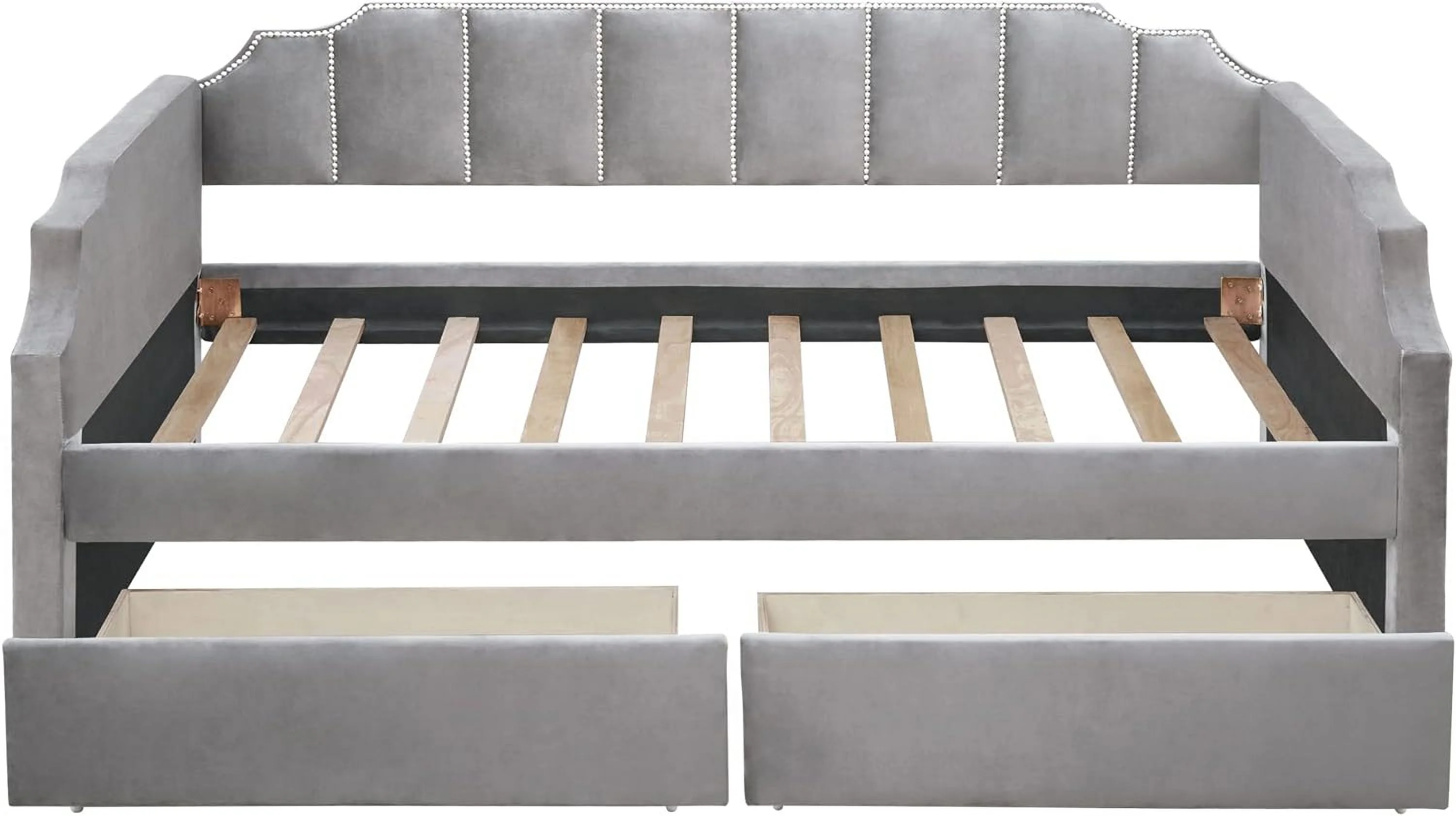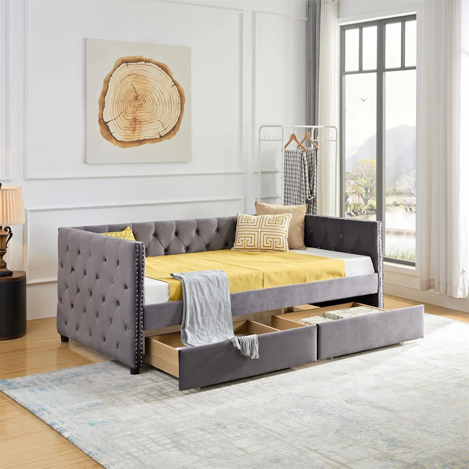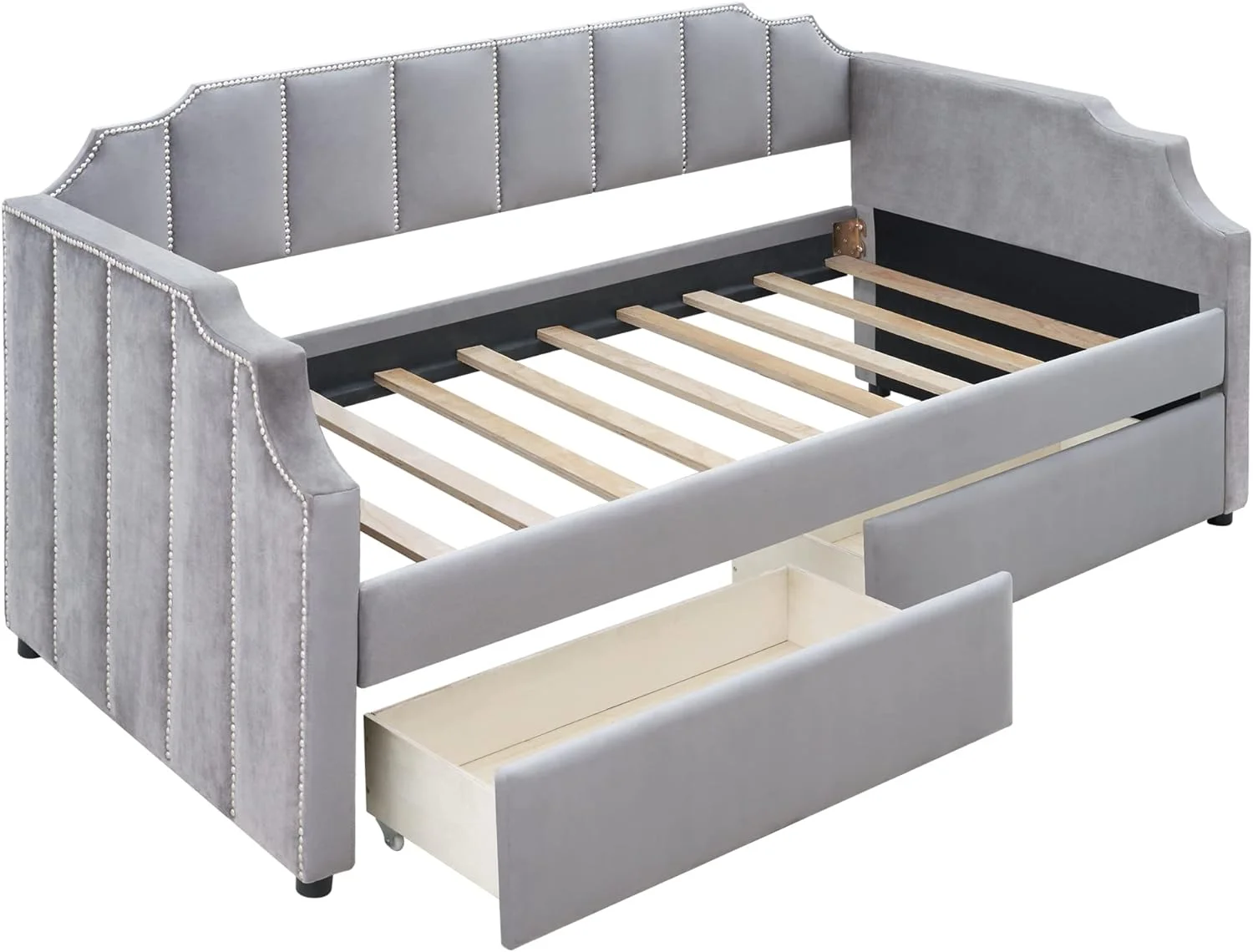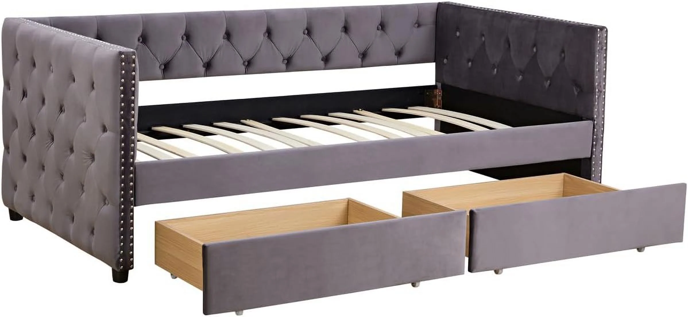 Size Upholstered Daybed With Drawers, Upholstered Tufted Sofa Bed Daybed With Storage And Wood Frame, Easy Assemble (Gray)