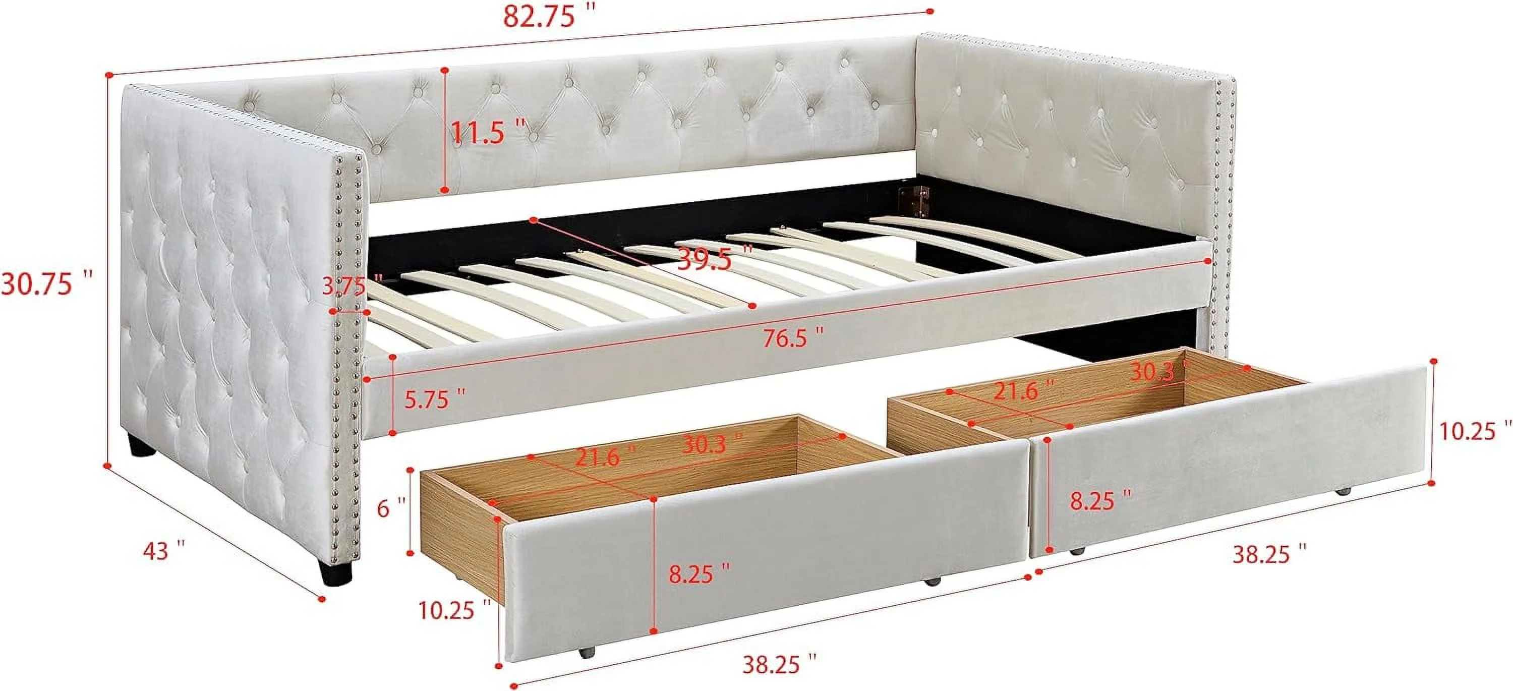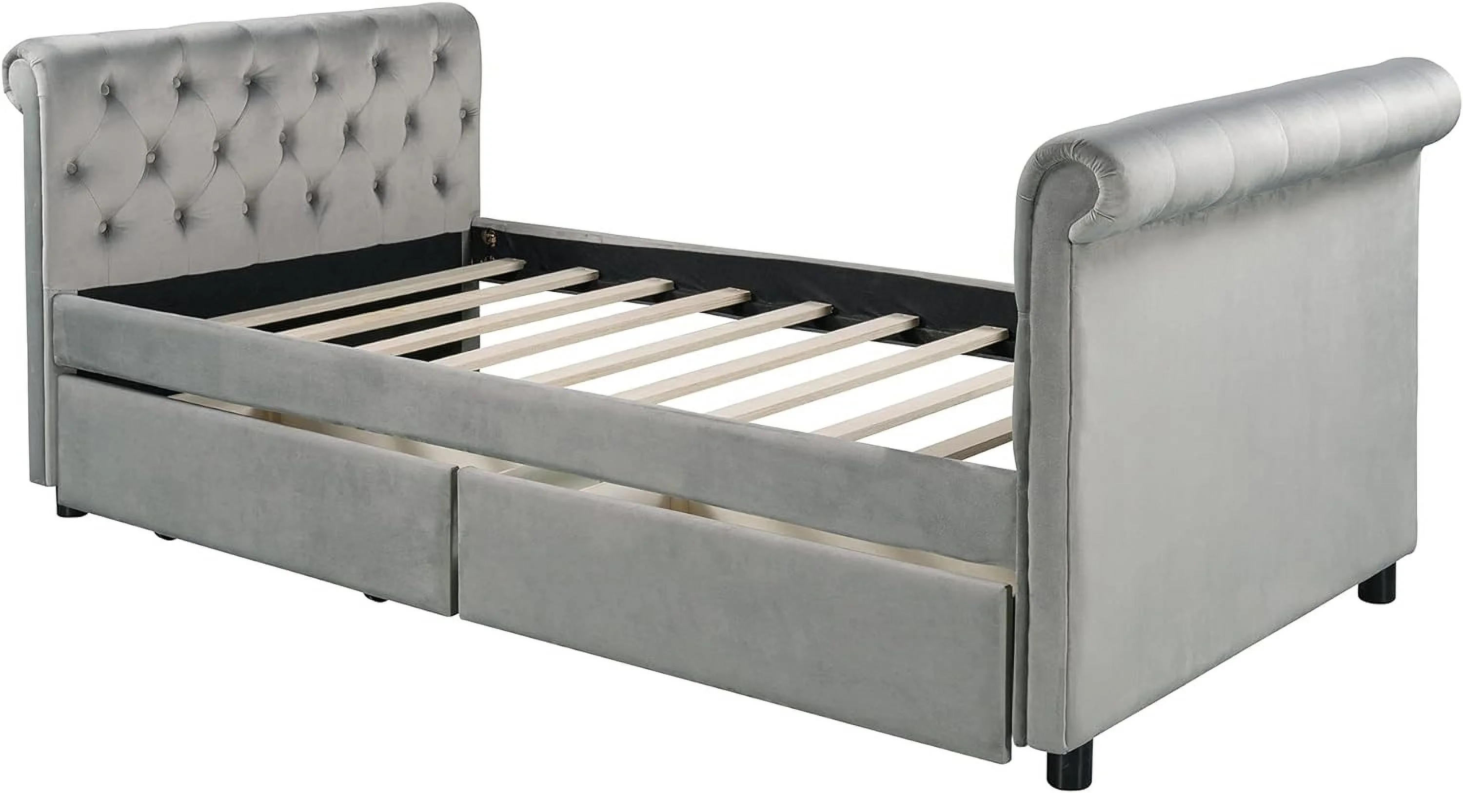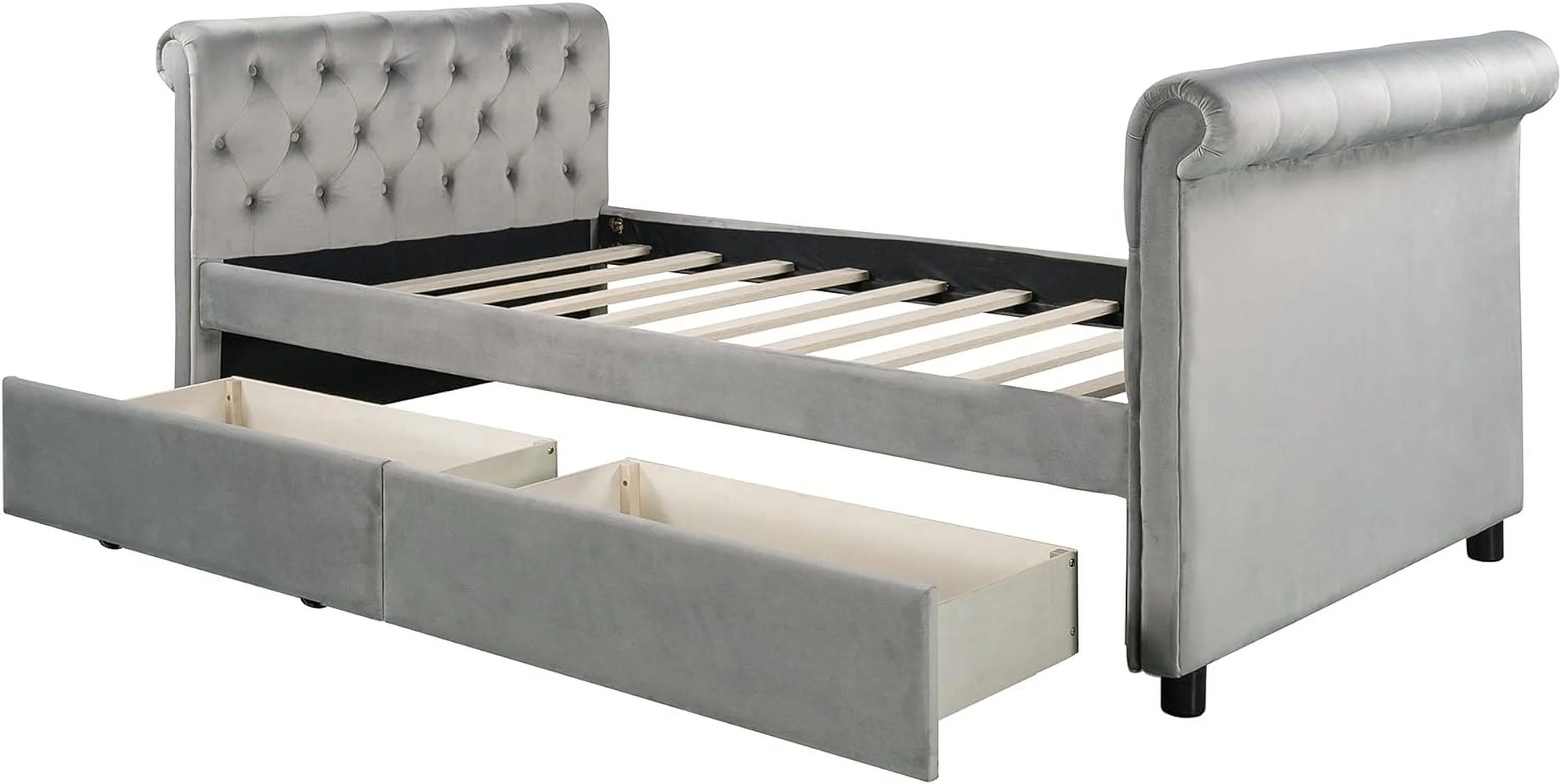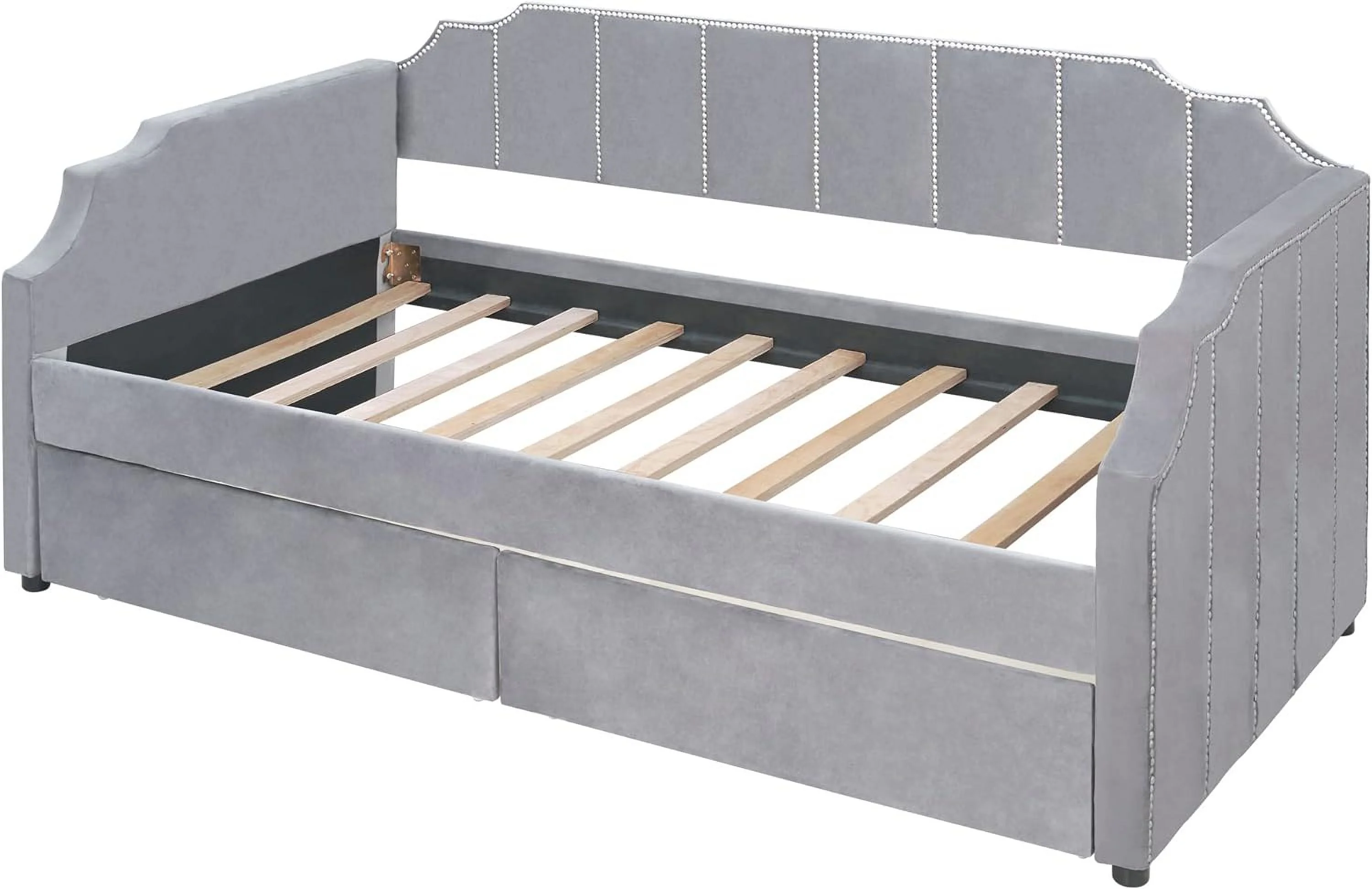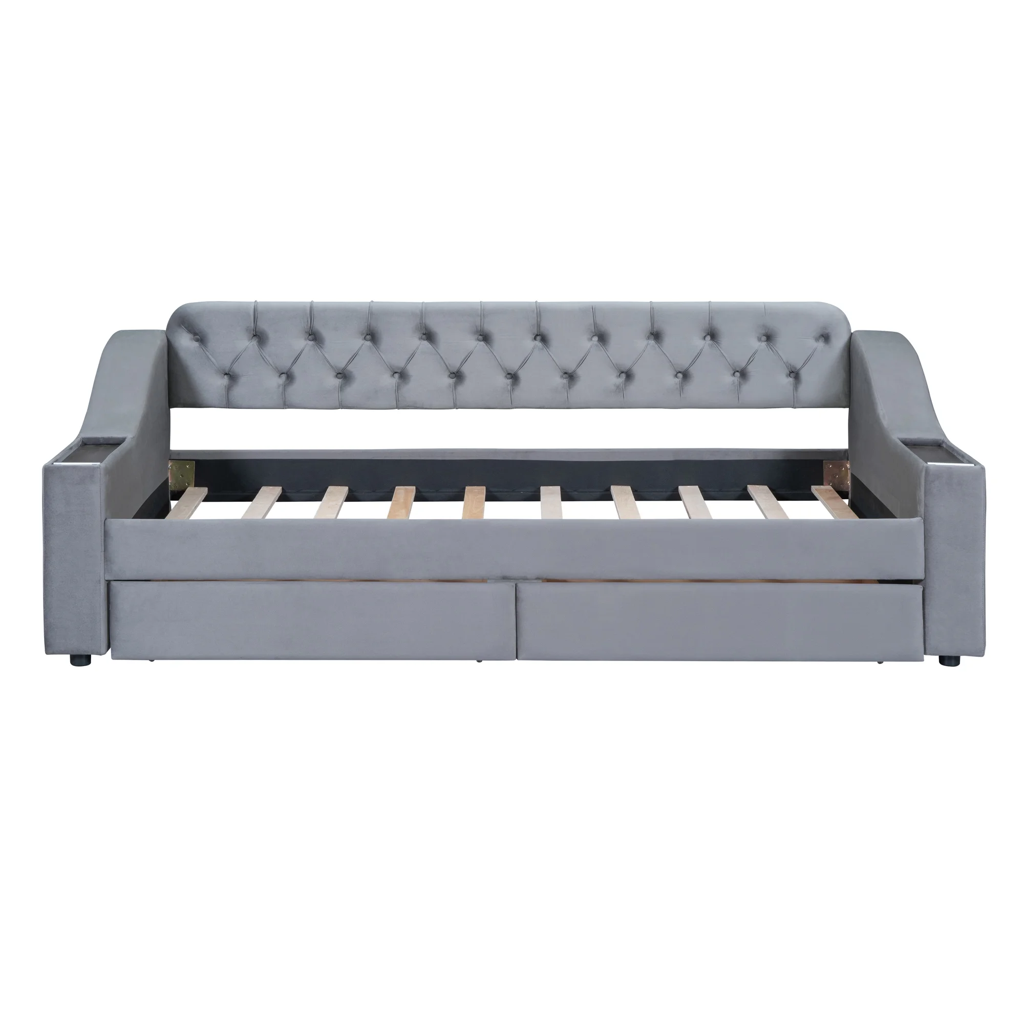 Size Upholstered Daybed With Drawers, Upholstered Tufted Sofa Bed Daybed With Storage And Wood Frame, Easy Assemble (Gray)