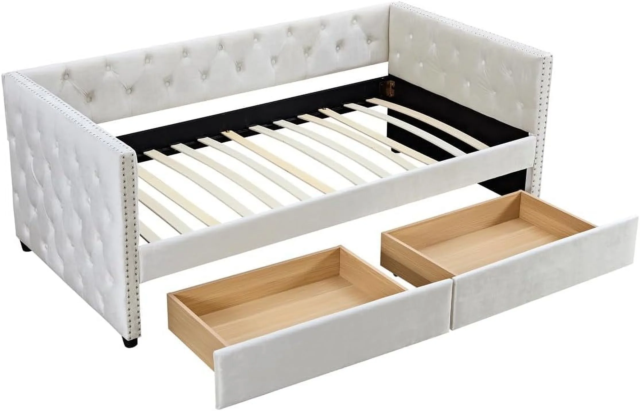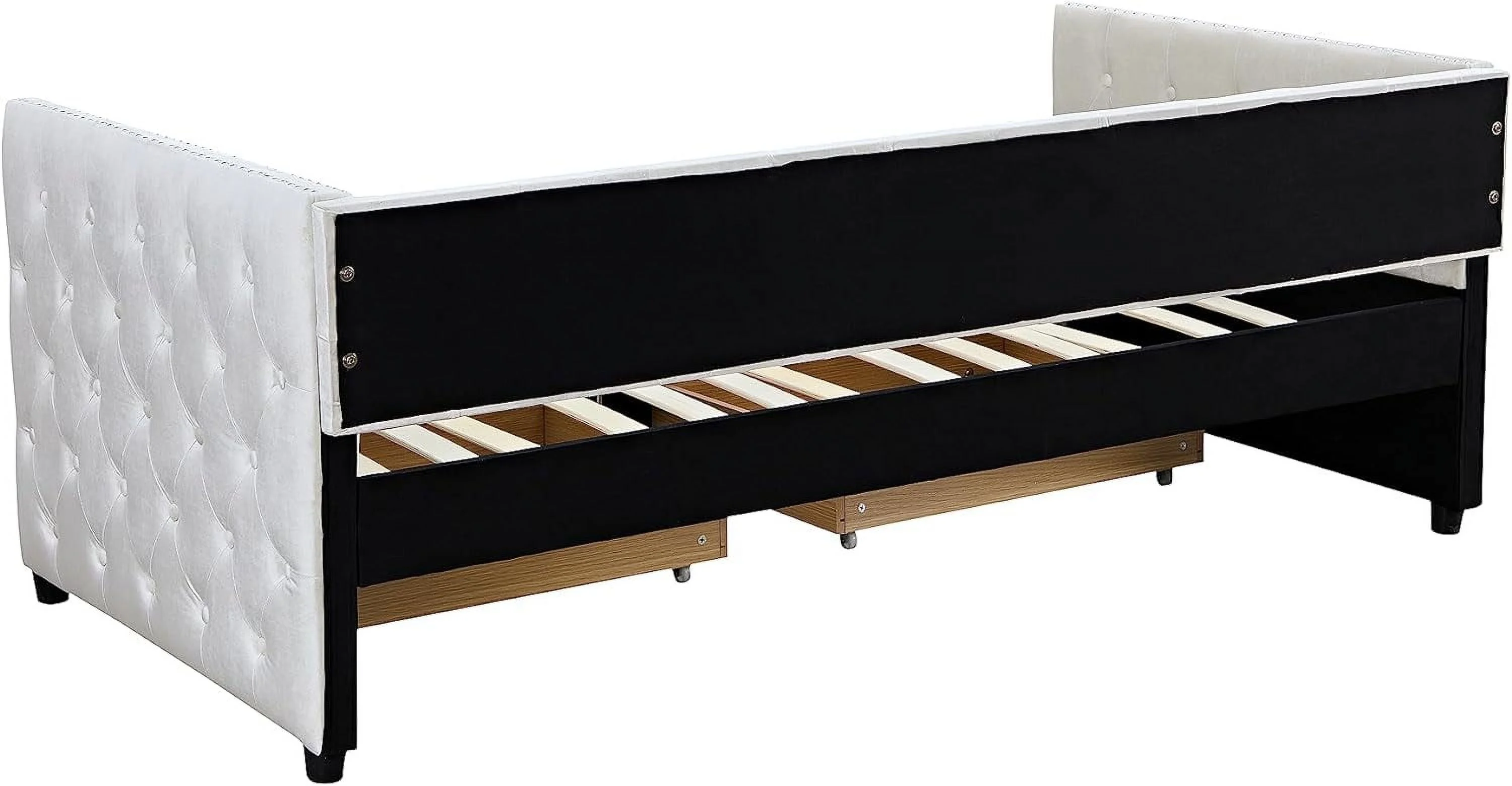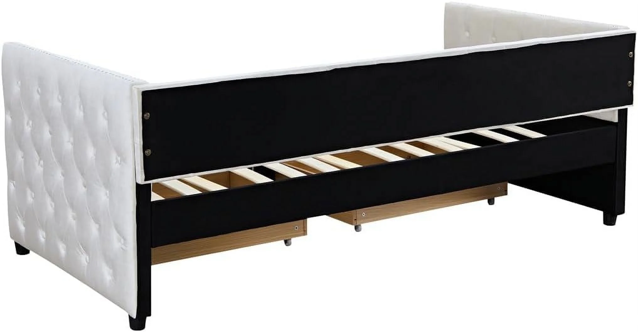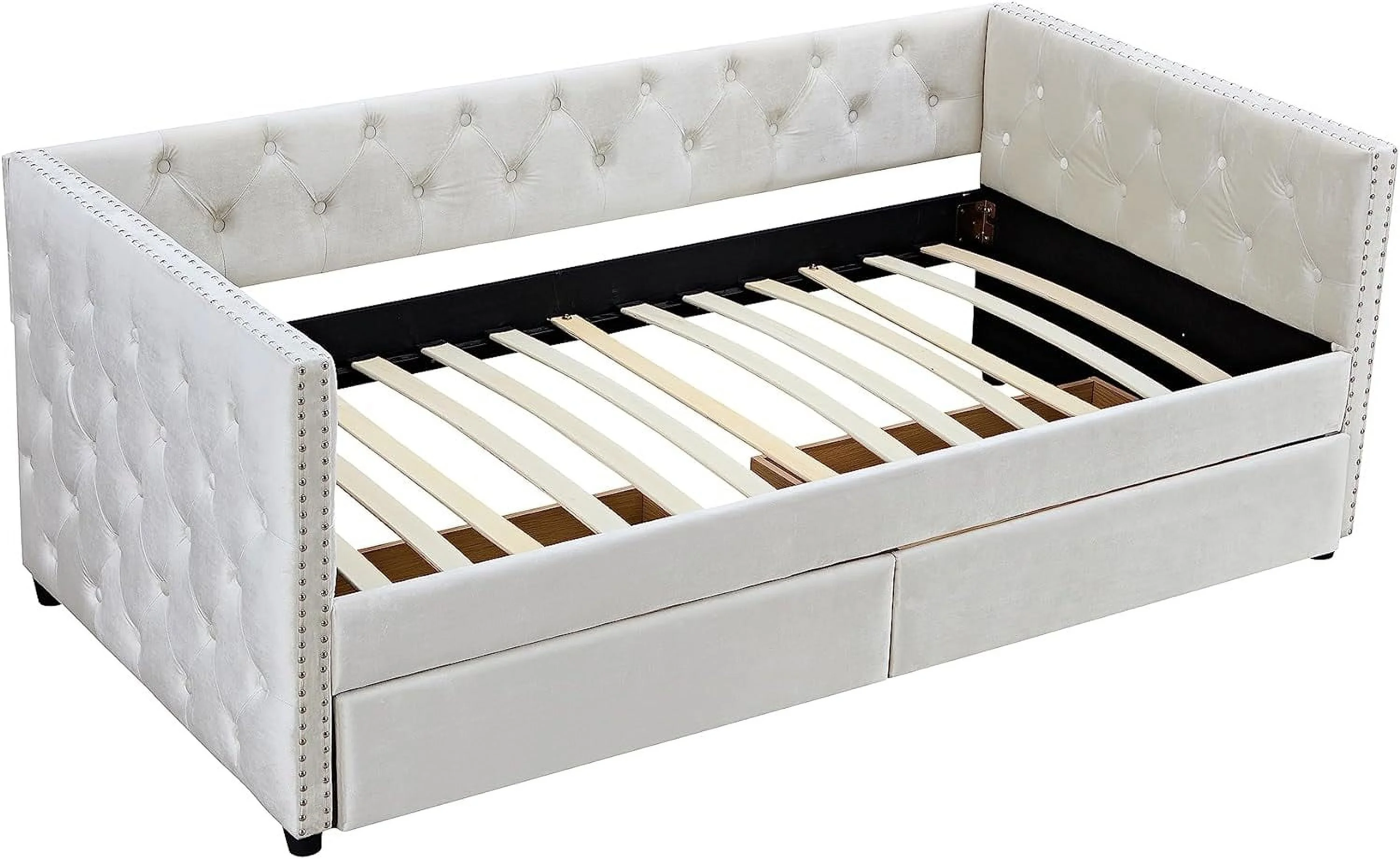 Size Upholstered Daybed With Drawers, Upholstered Tufted Sofa Bed Daybed With Storage And Wood Frame, Easy Assemble (Gray)