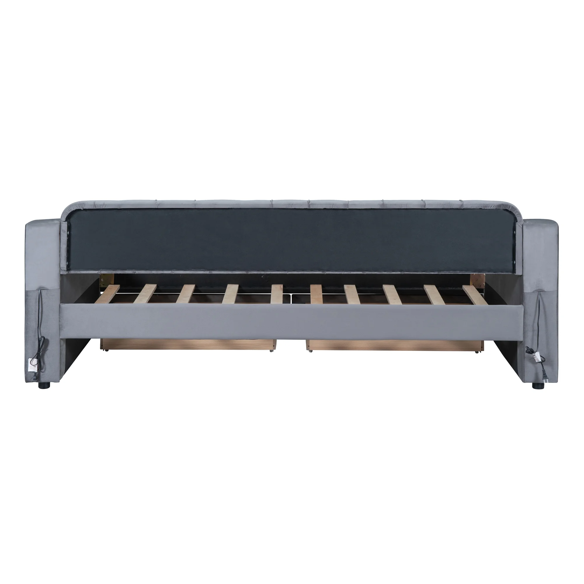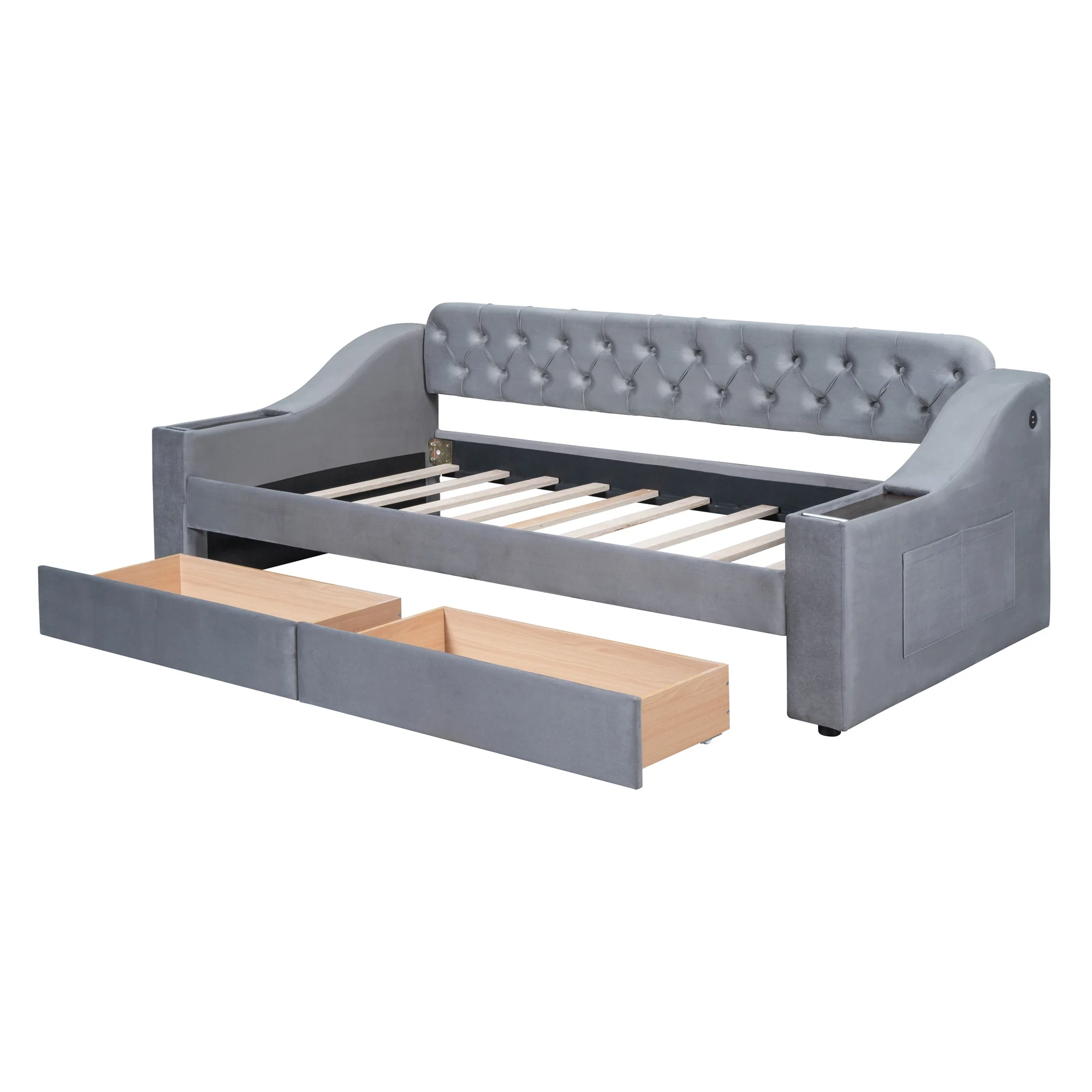 CoSoTower Twin Size Upholstered Daybed with Storage Armrests and Usb Port, Gray