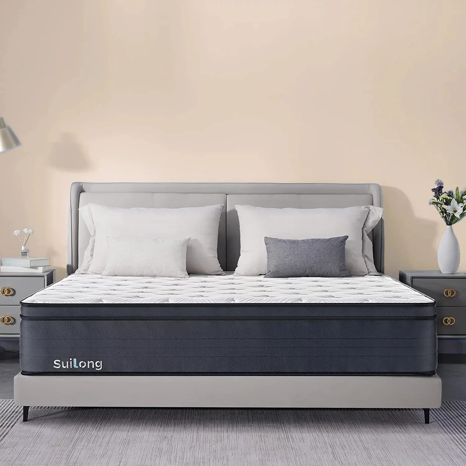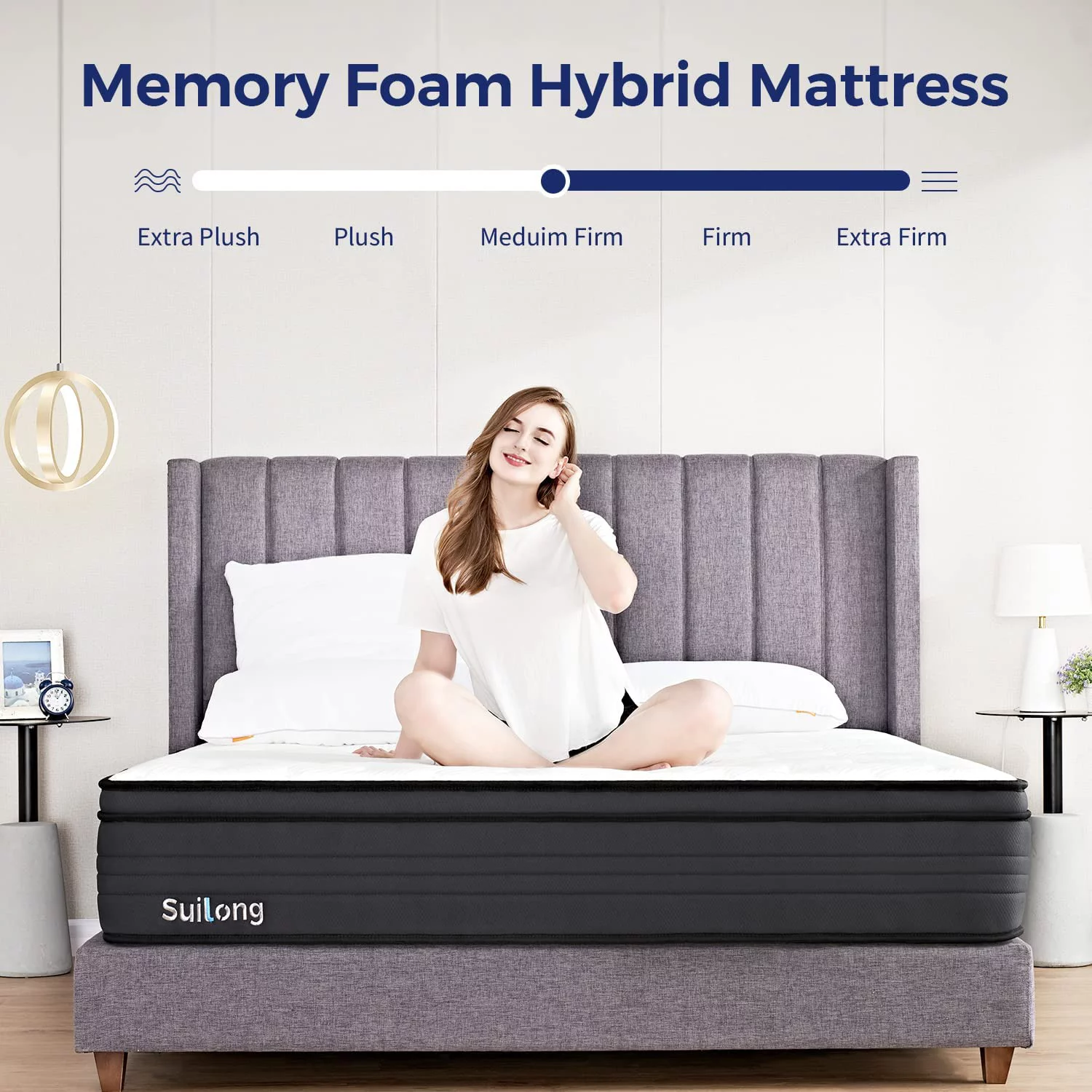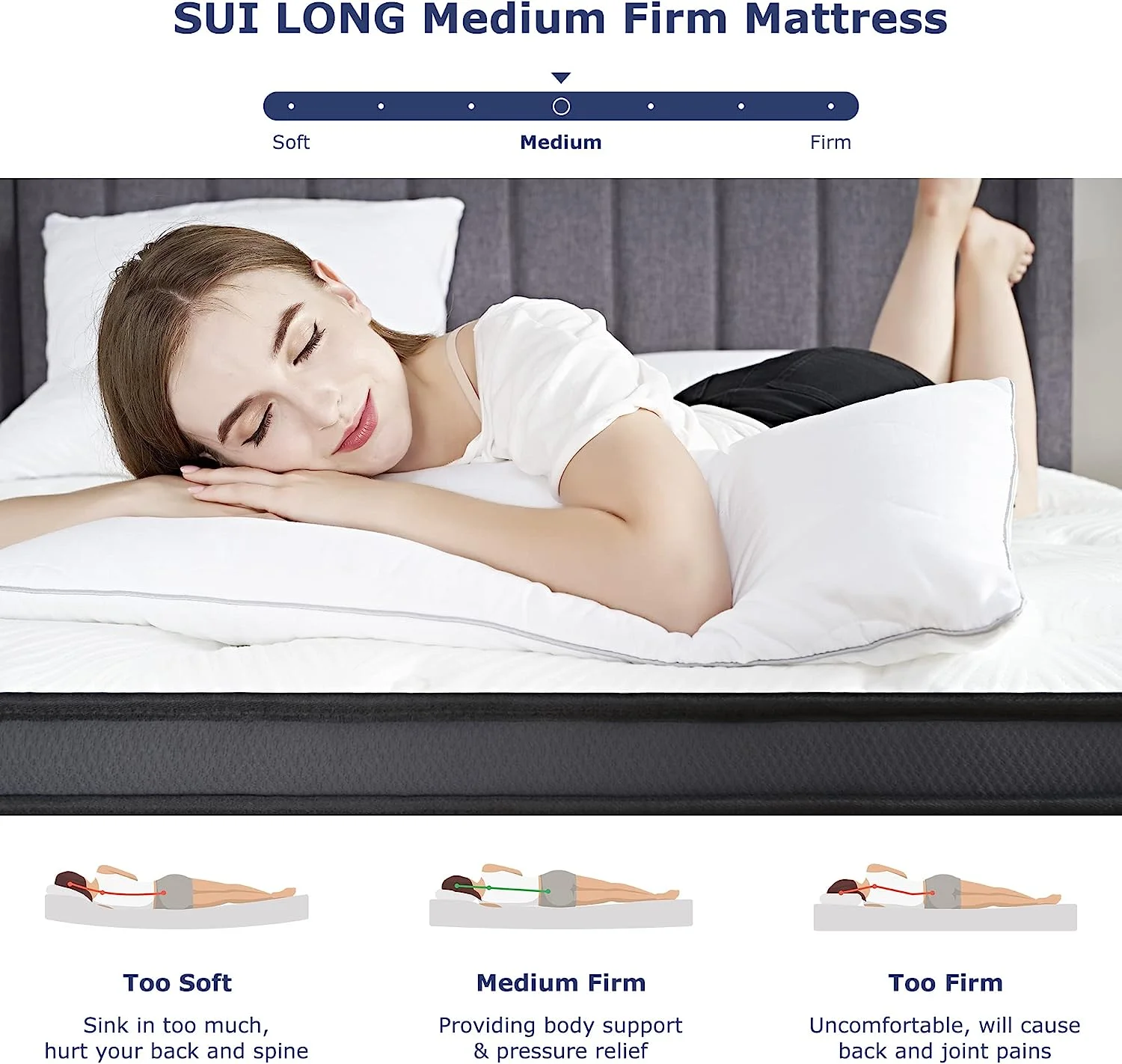 SUI LONG 12" Full Size Mattress, Hybrid Mattress in a Box, Cooling-Gel Memory Foam and Innerspring, Medium Firm