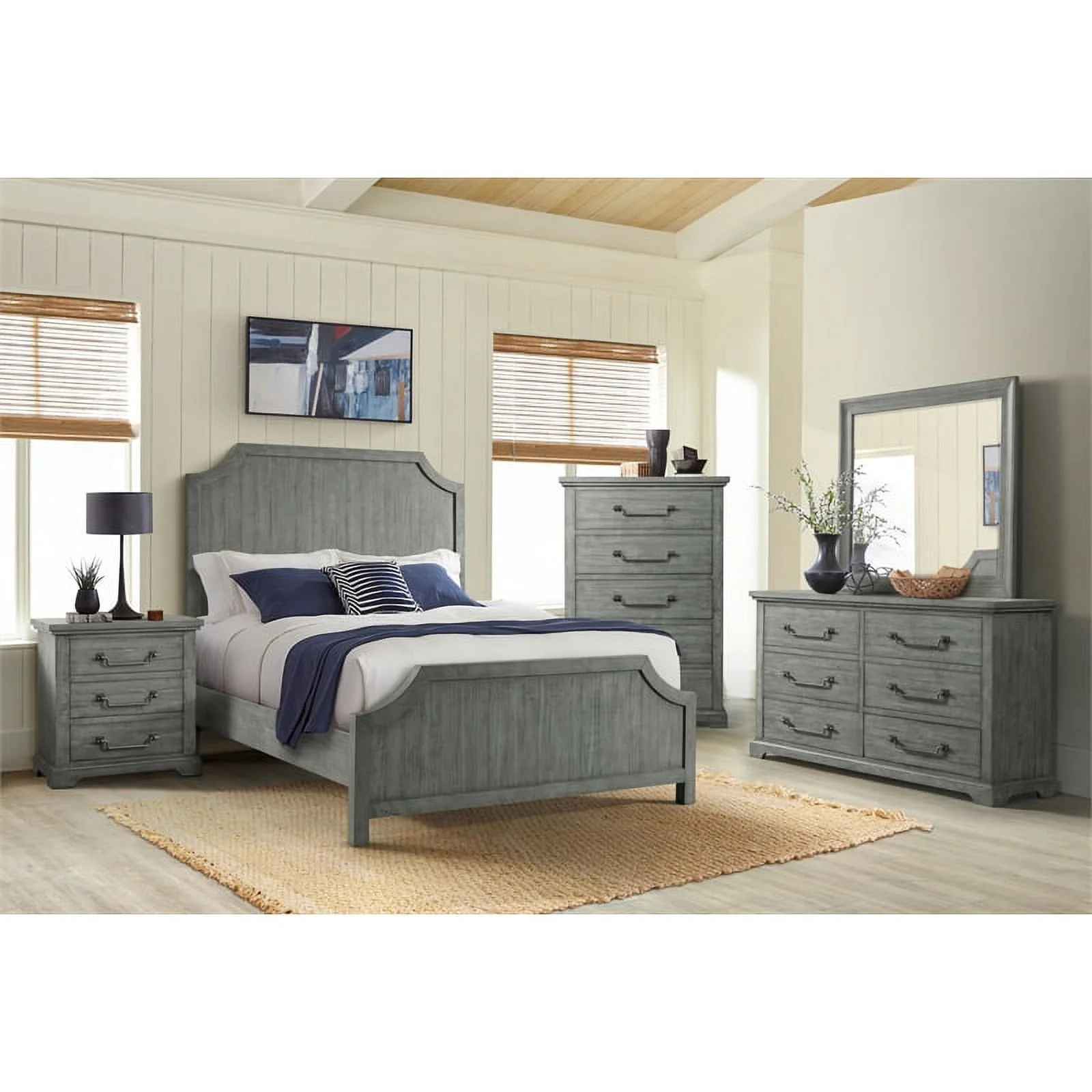 Sunset Trading Solstice Coastal Wood Queen Bed in Weathered Gray and Brown