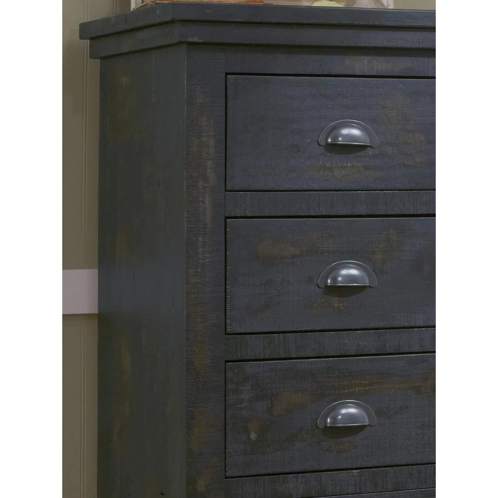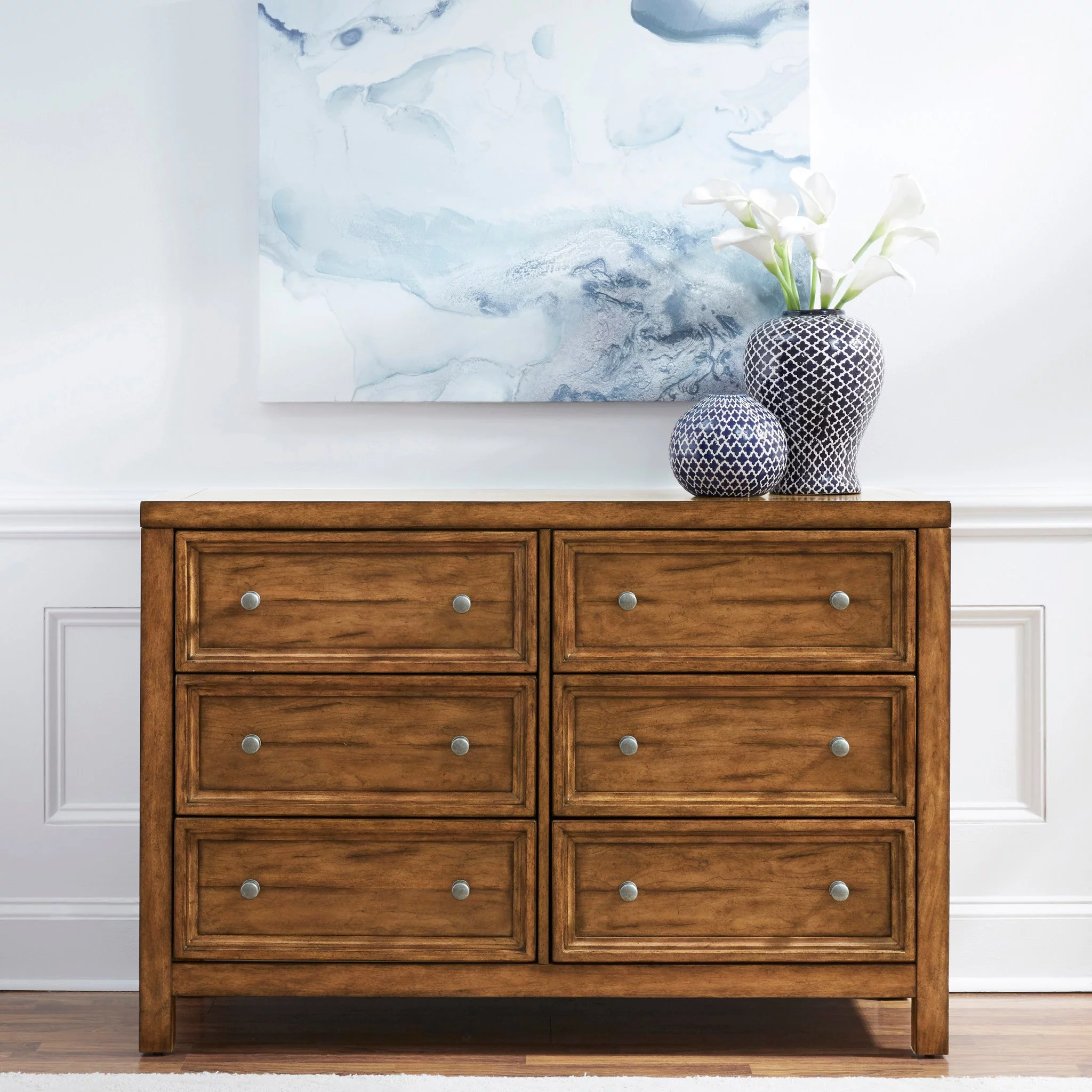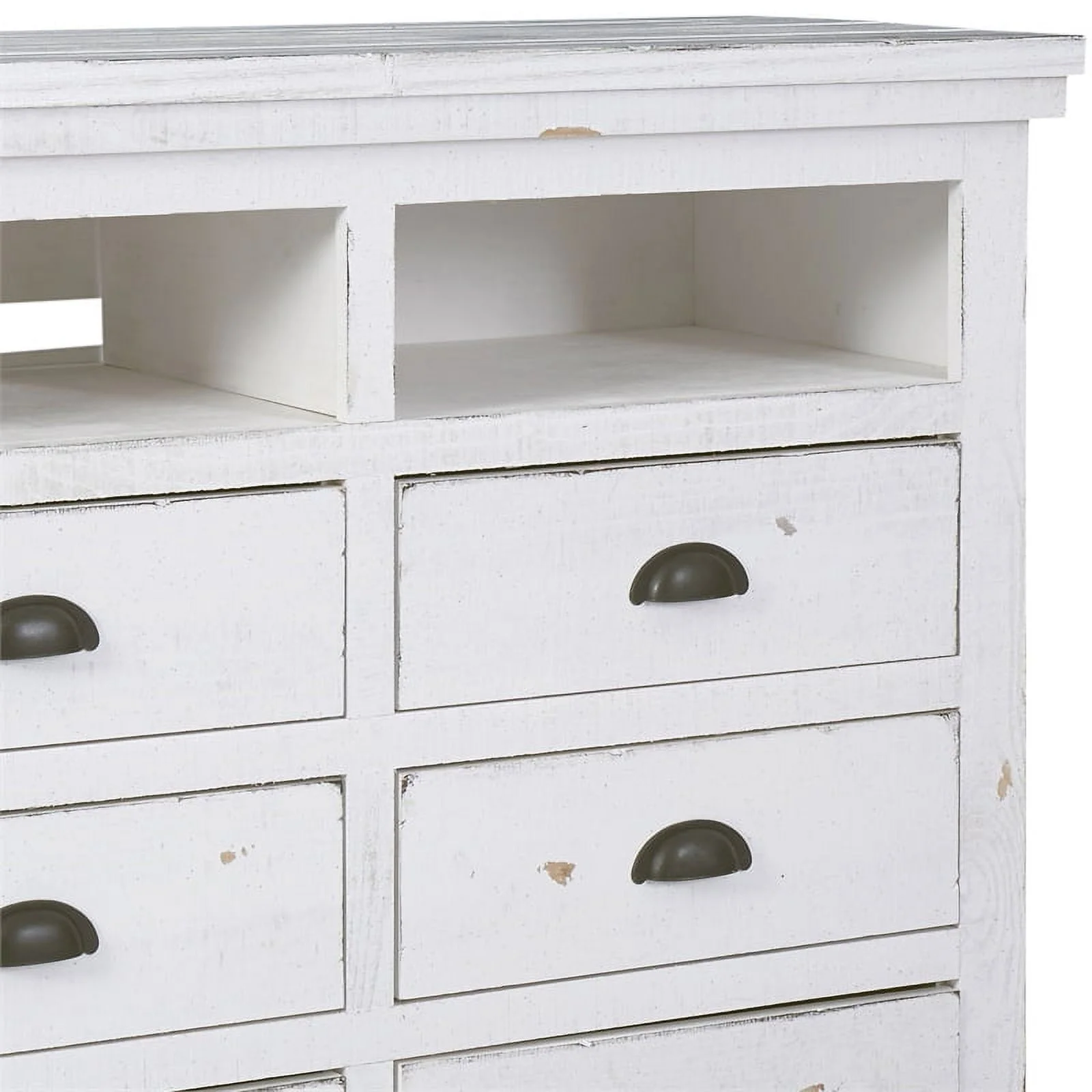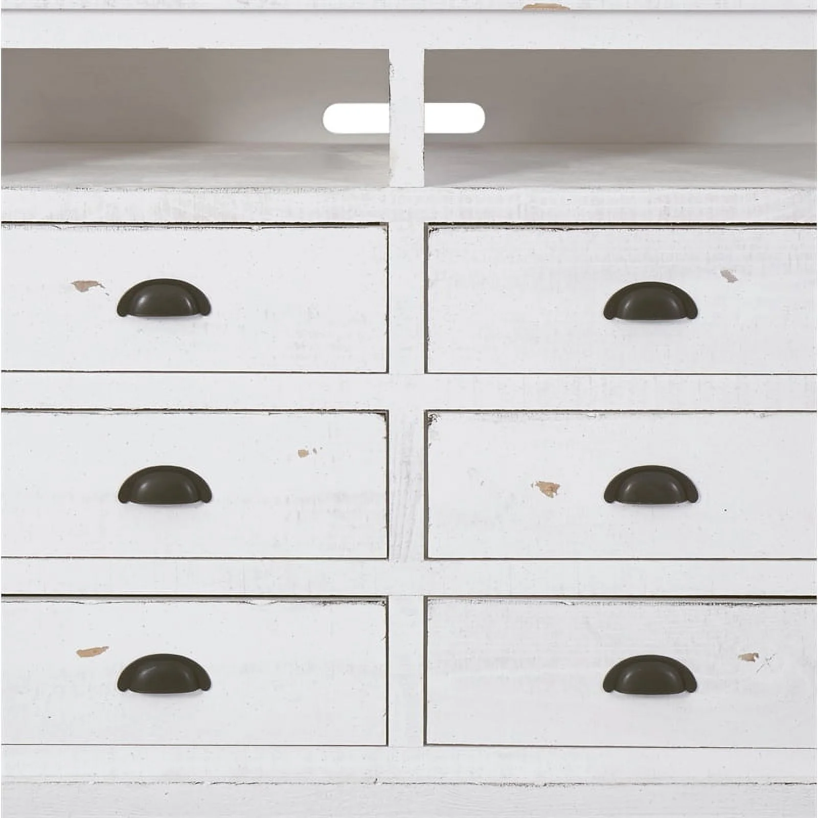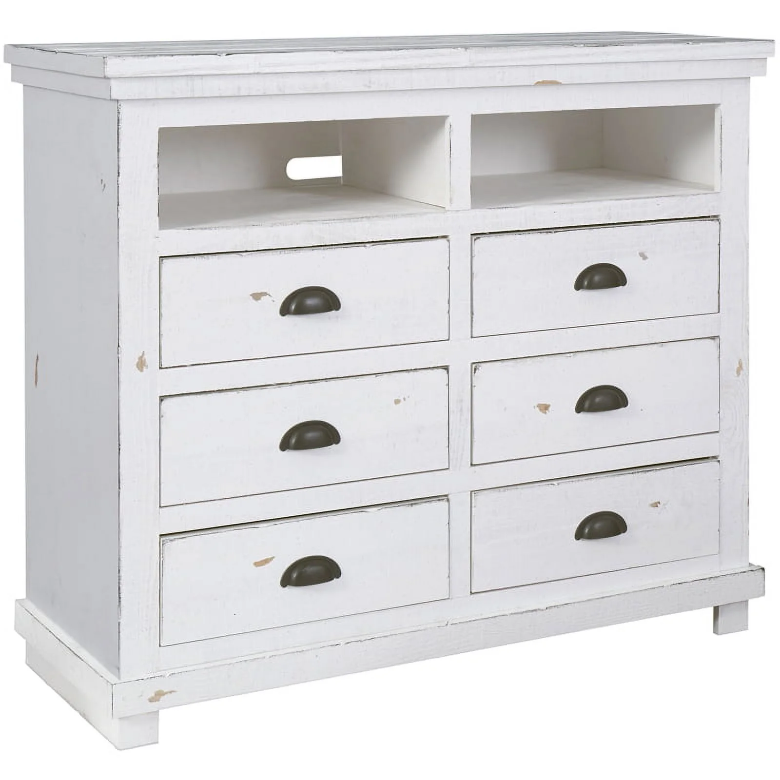 Bowery Hill Transitional Wooden 6 Drawer Media Chest in Distressed White Finish