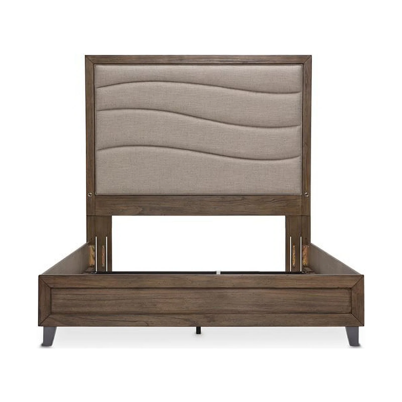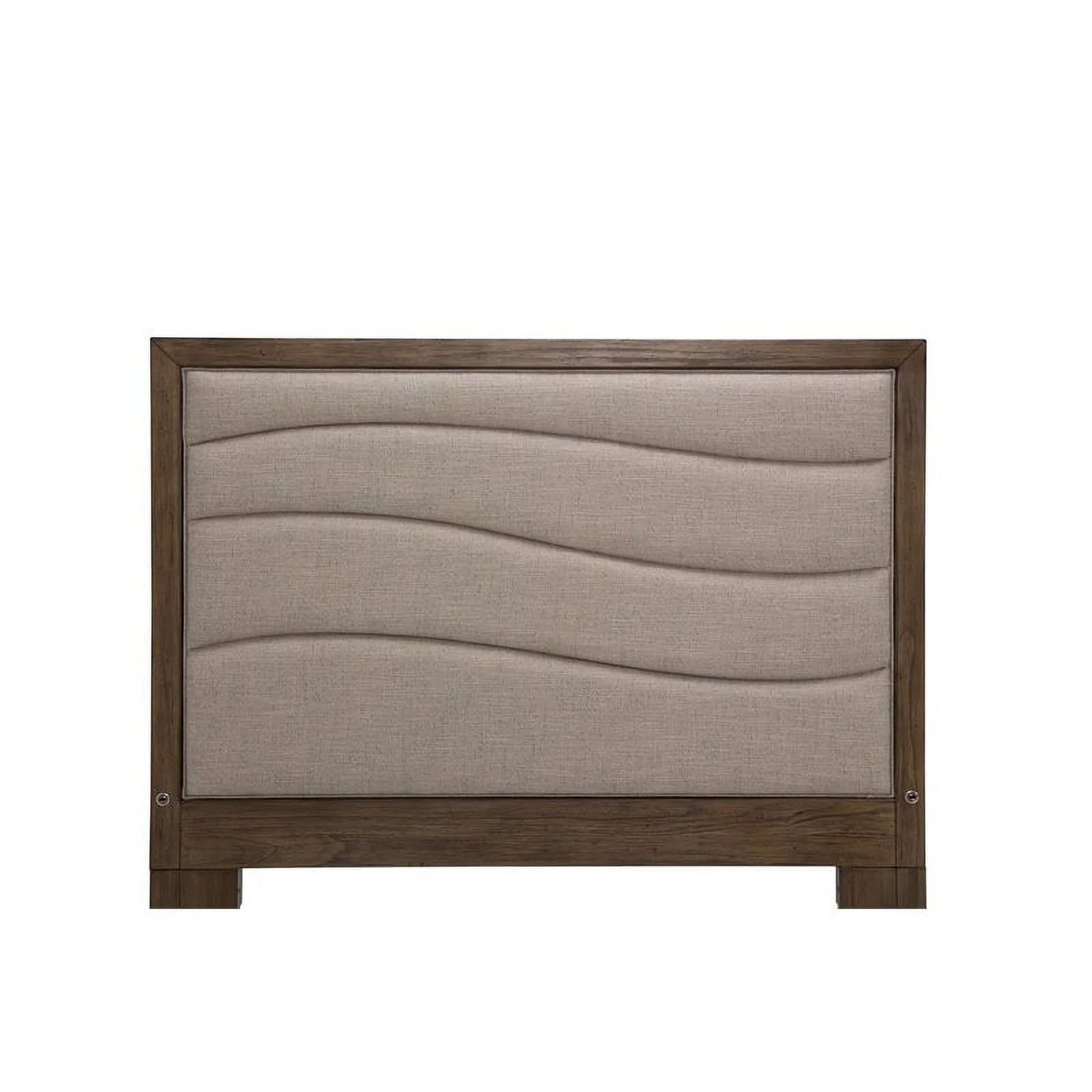 Cato Upholstered Queen Size Bed Chevron Tufted Gray Headboard Cream- Saltoro Sherpi