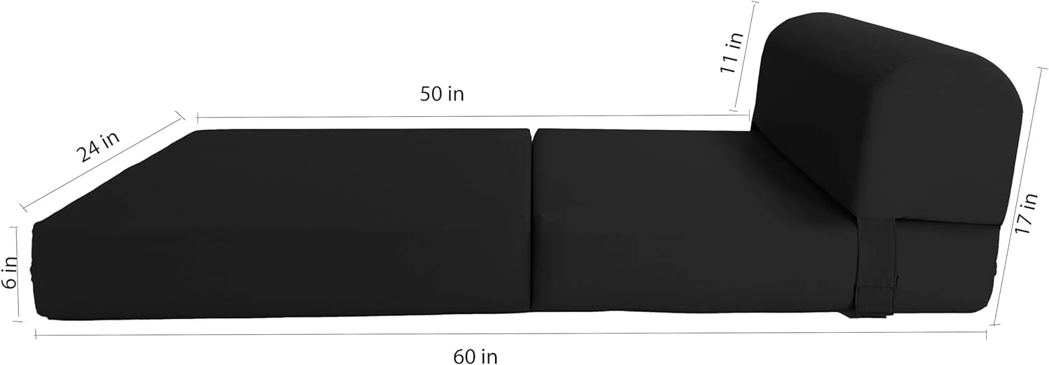 Sleeper Chair Folding Bed, Studio Sofa Guest Folded Mattress, High Density Foam (70 x 24 x 6, Black)