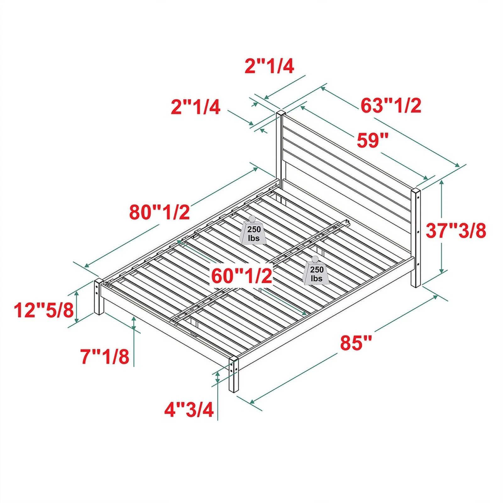 Pemberly Row Solid Wood Minimalist Boho Queen Bed with Simple Headboard - Black