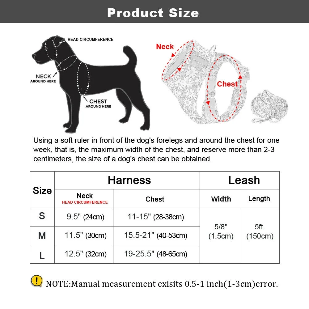 Floral Small Dog Harness and Leash Set Reflective Pet Cat Walking Vest Harnesses