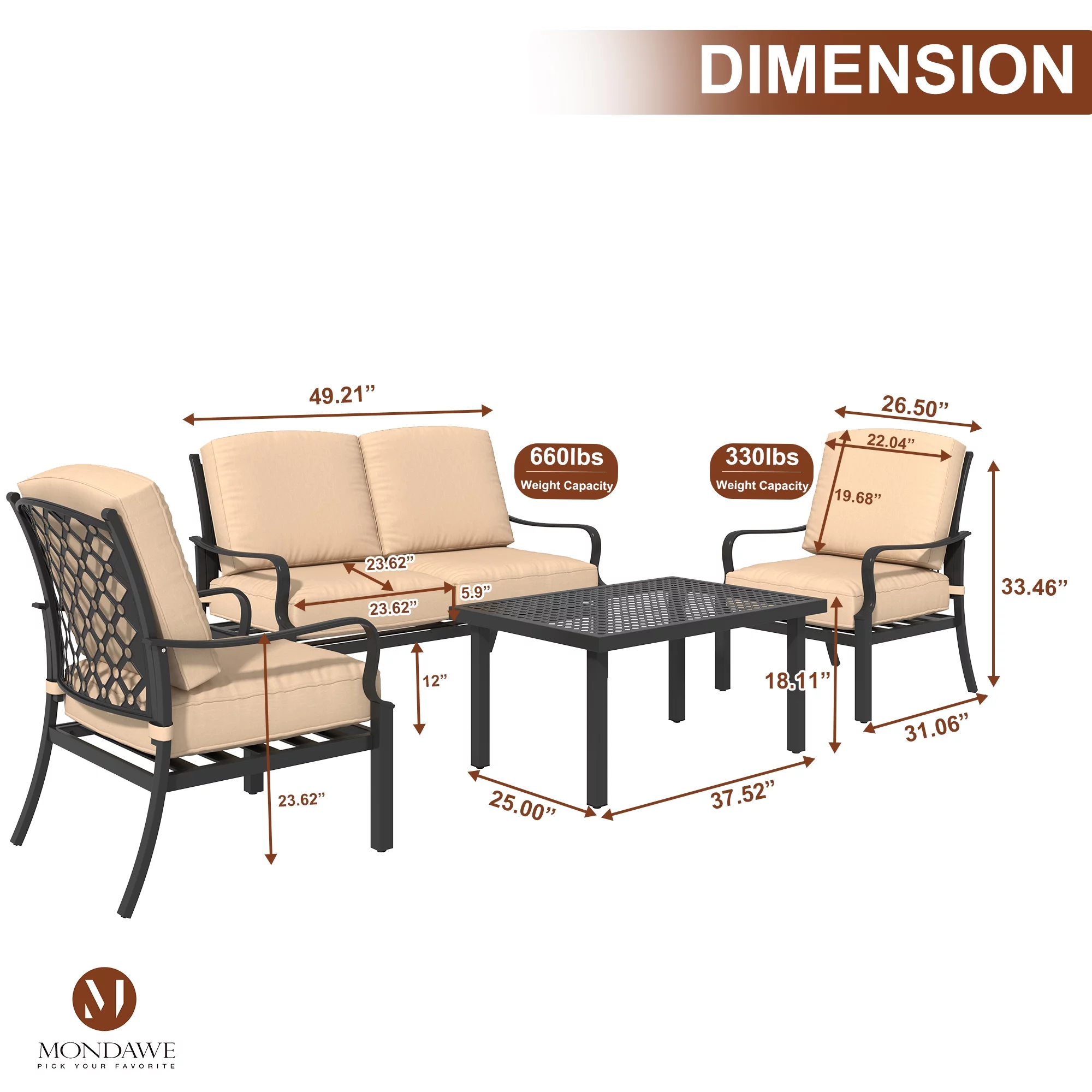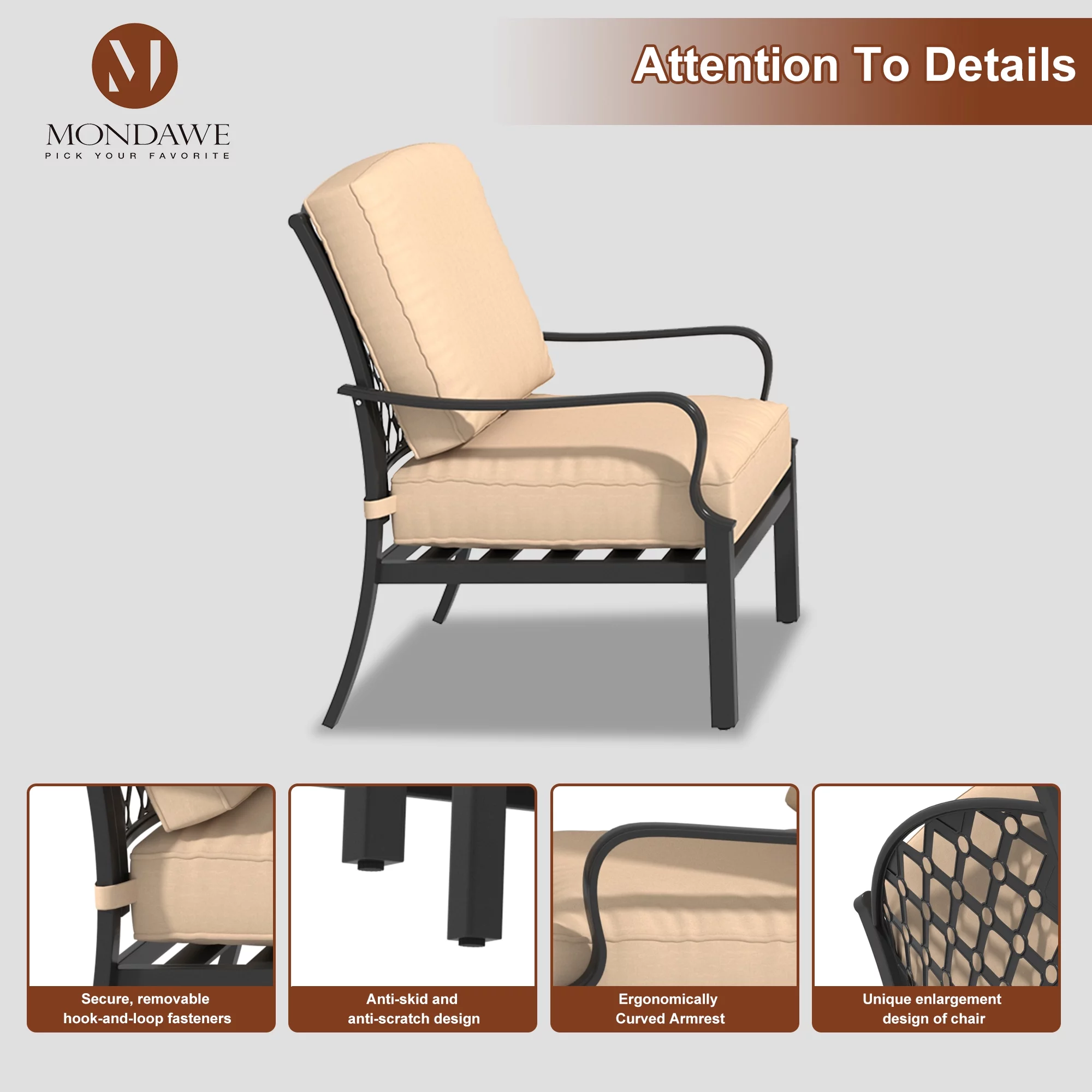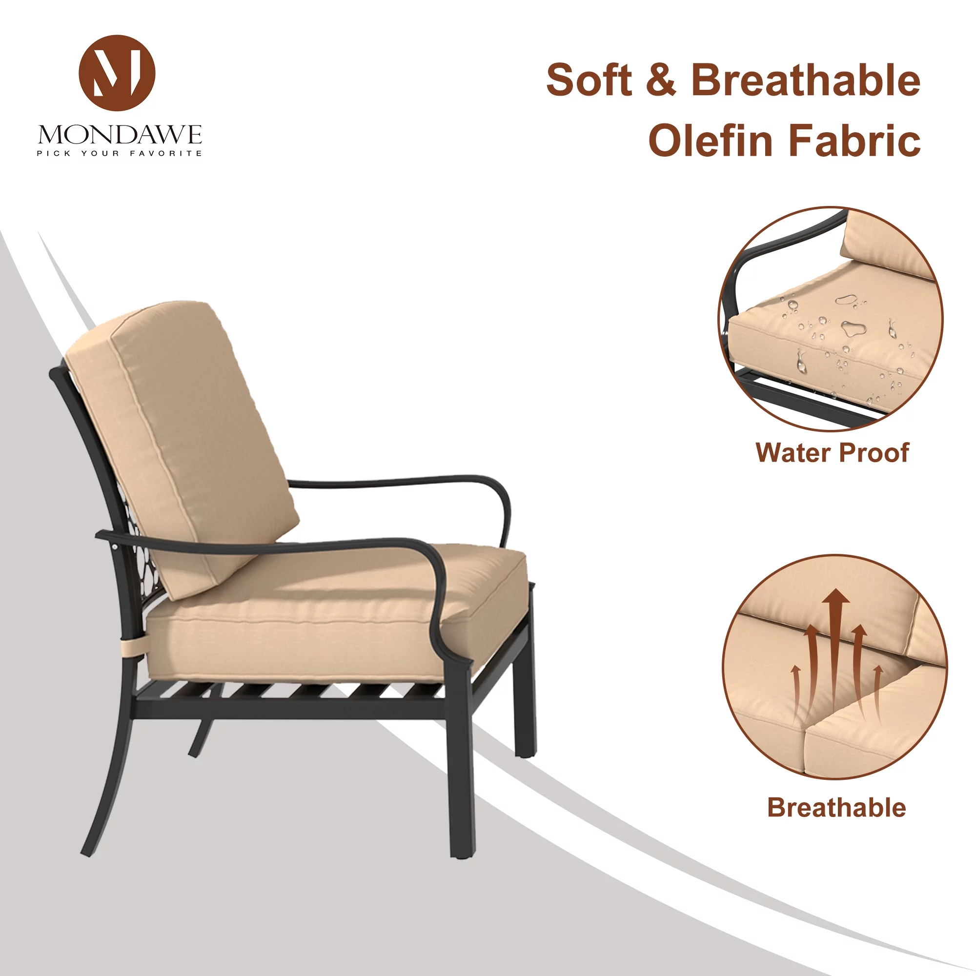 Mondawe 5 Pieces Steel Outdoor Patio Conversation Deep Seating Set, Sofa and Lounge Chairs with Cushions and 1 Coffee Table