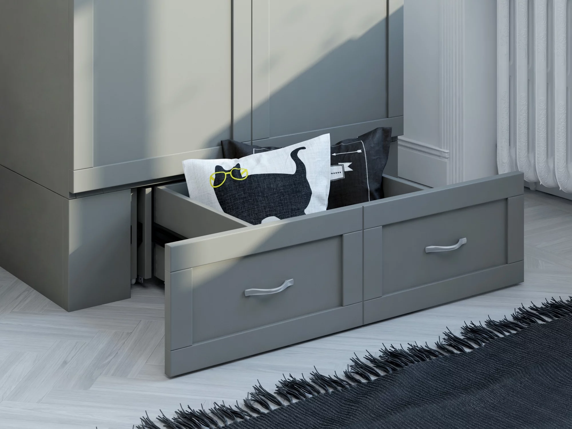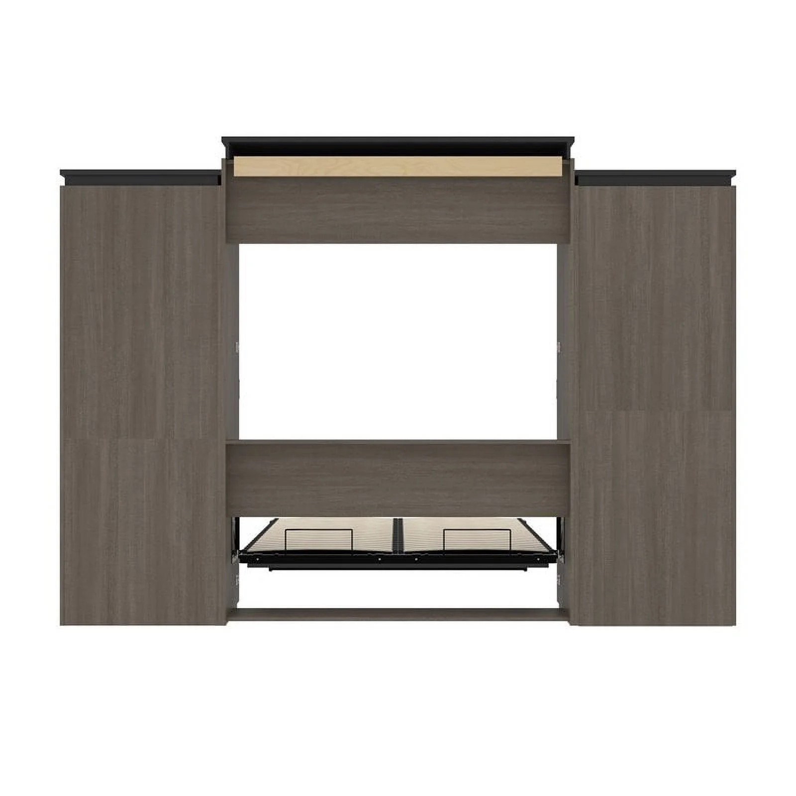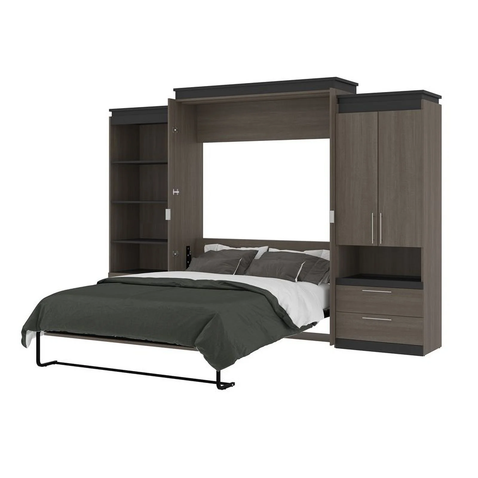 Bestar Orion 124" Queen Murphy Bed and Storage with Drawers in Bark Gray