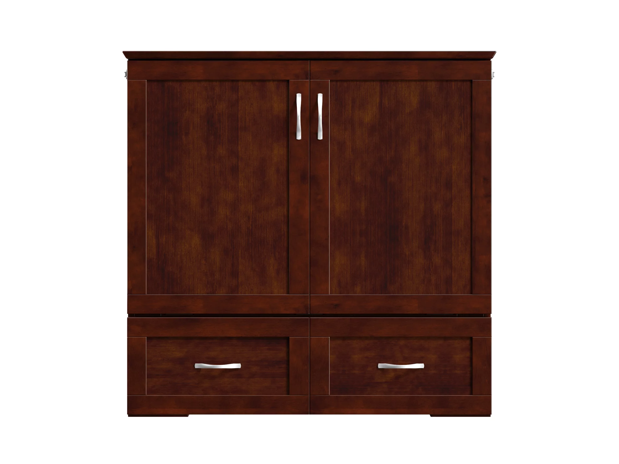 AFI Hamilton Twin XL Solid Wood Murphy Bed Chest with Mattress, Drawer and Charger, Walnut